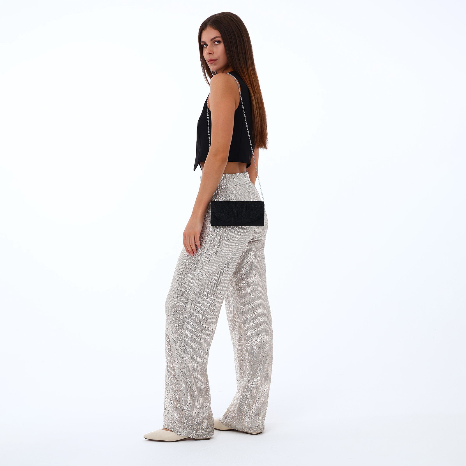 Практичность Несмотря на компактные размеры (20x9x5 см), в сумку помещается всё необходимое: телефон, ключи, помада и карточки. Текстильный материал с блестящей отделкой сочетается с вечерними нарядами и коктейльными платьями. Сумка работает в любое время года её стиль не зависит от сезона. | ||