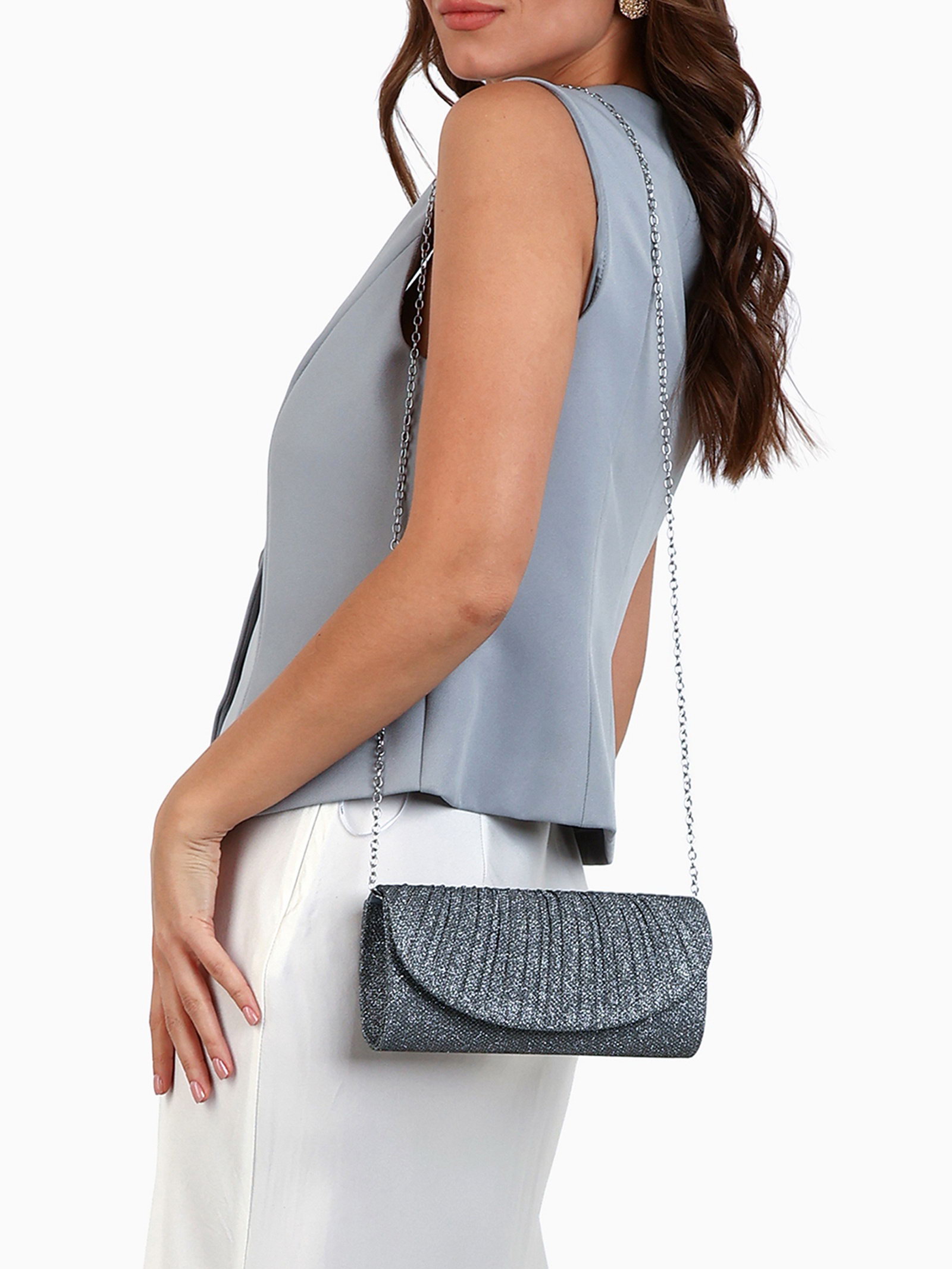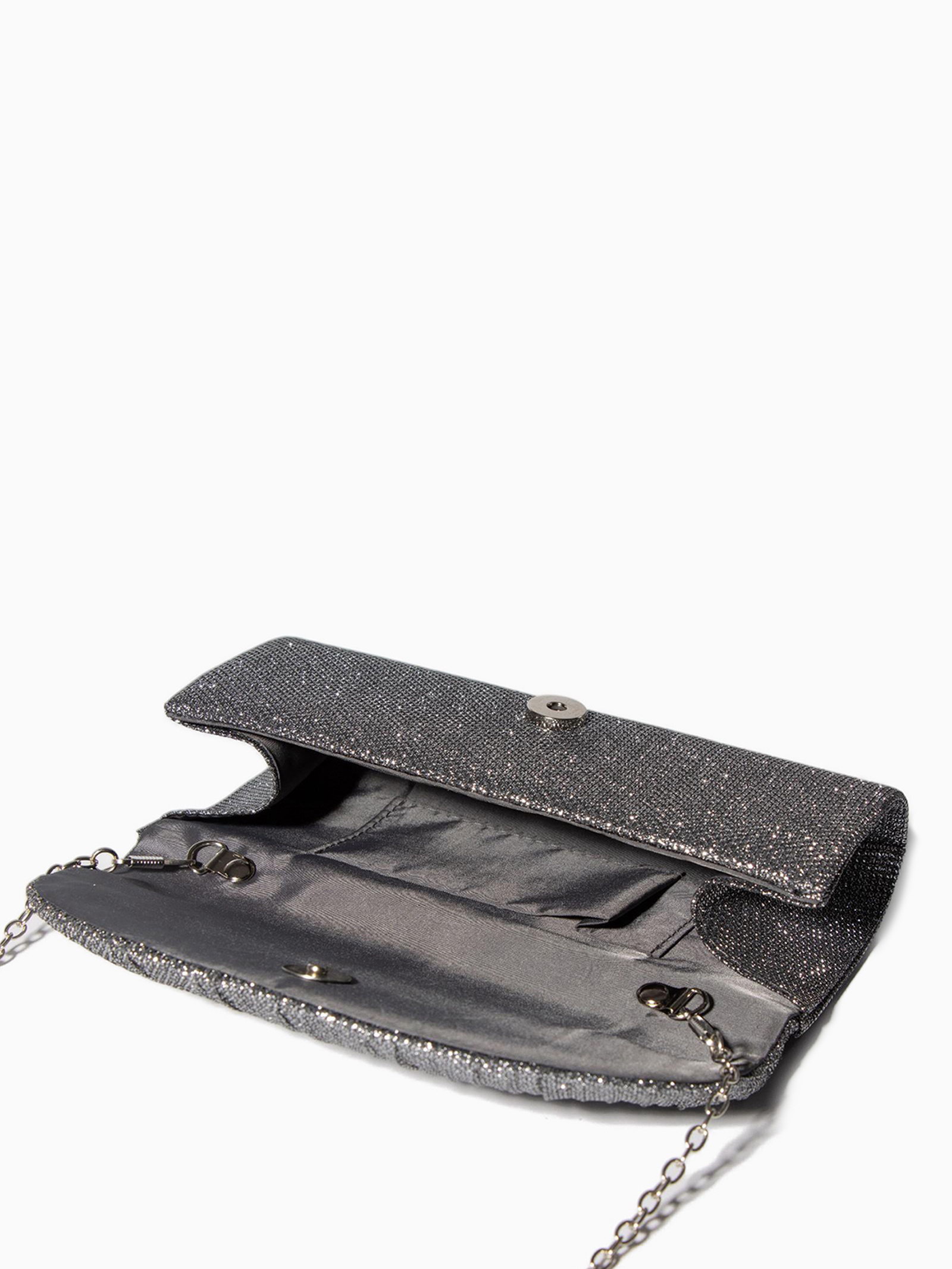 Сумка-клатч вечерняя на магните, на серебристой цепочке, блестящая, серебристая, 5x20x9 см., Китай