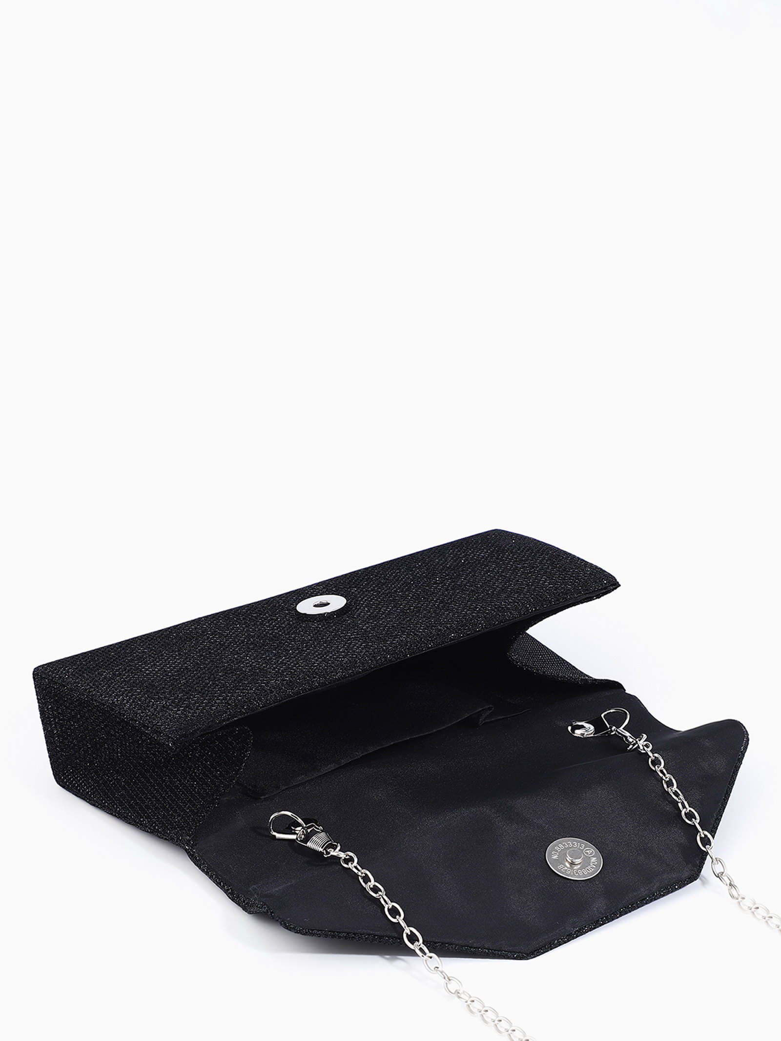 Сумка-клатч женская вечерняя на магните, на длинной цепочке, мерцающая, чёрная, 5x20x9 см., Китай