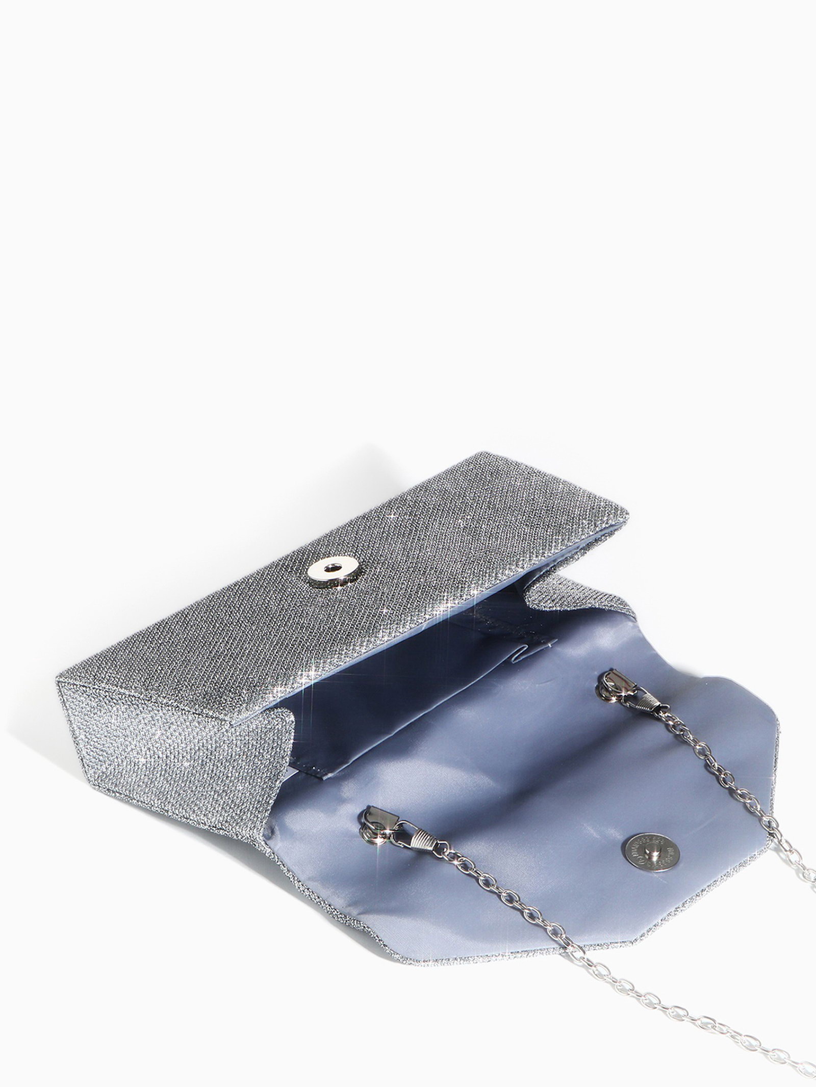 Сумка-клатч на магните, длинная цепь, цвет серебристый, 5x20x9 см., Китай