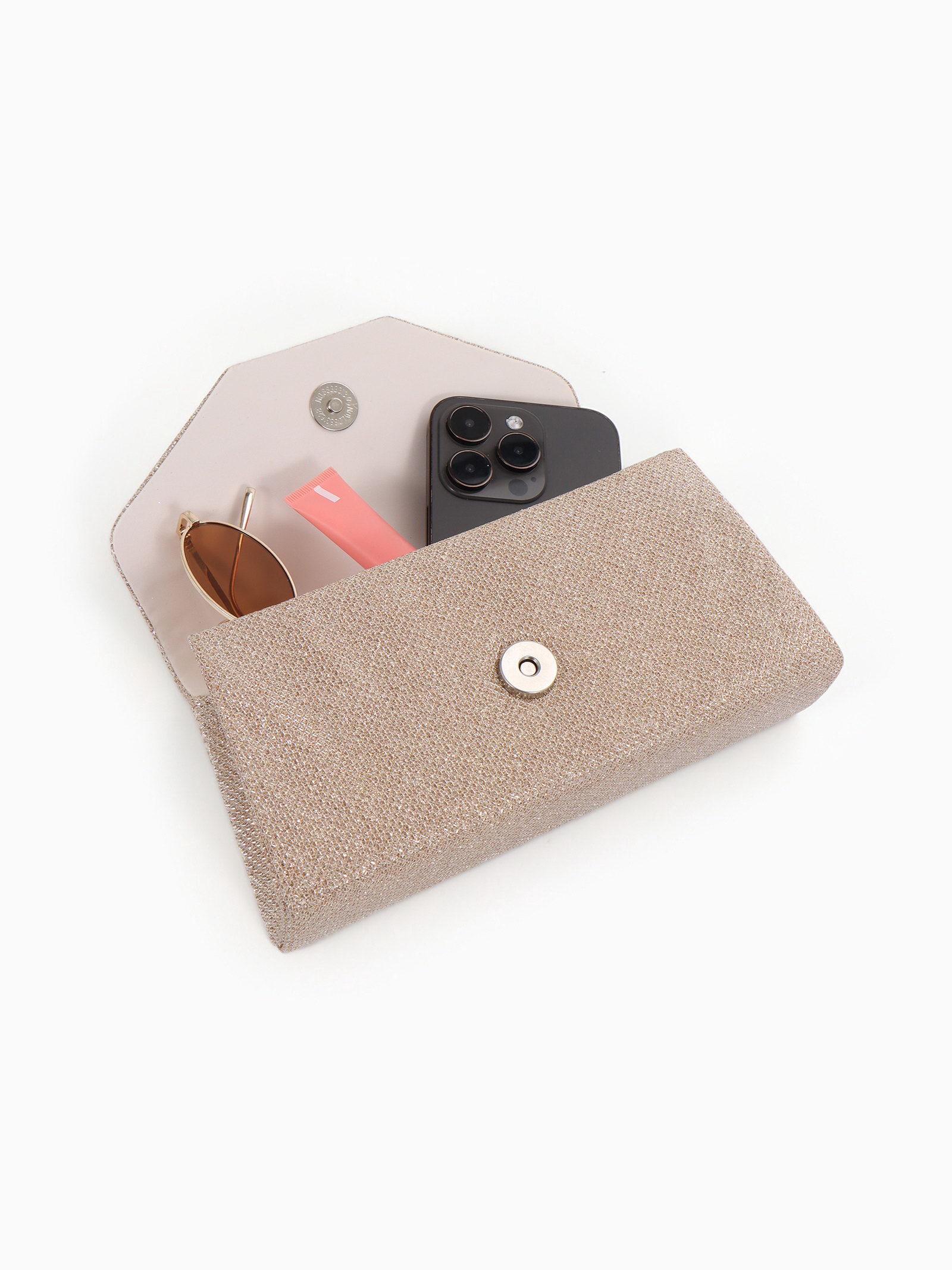 Сумка-клатч женская вечерняя на магните, на длинной цепочке, мерцающая, золотистая, 5x20x9 см., Китай