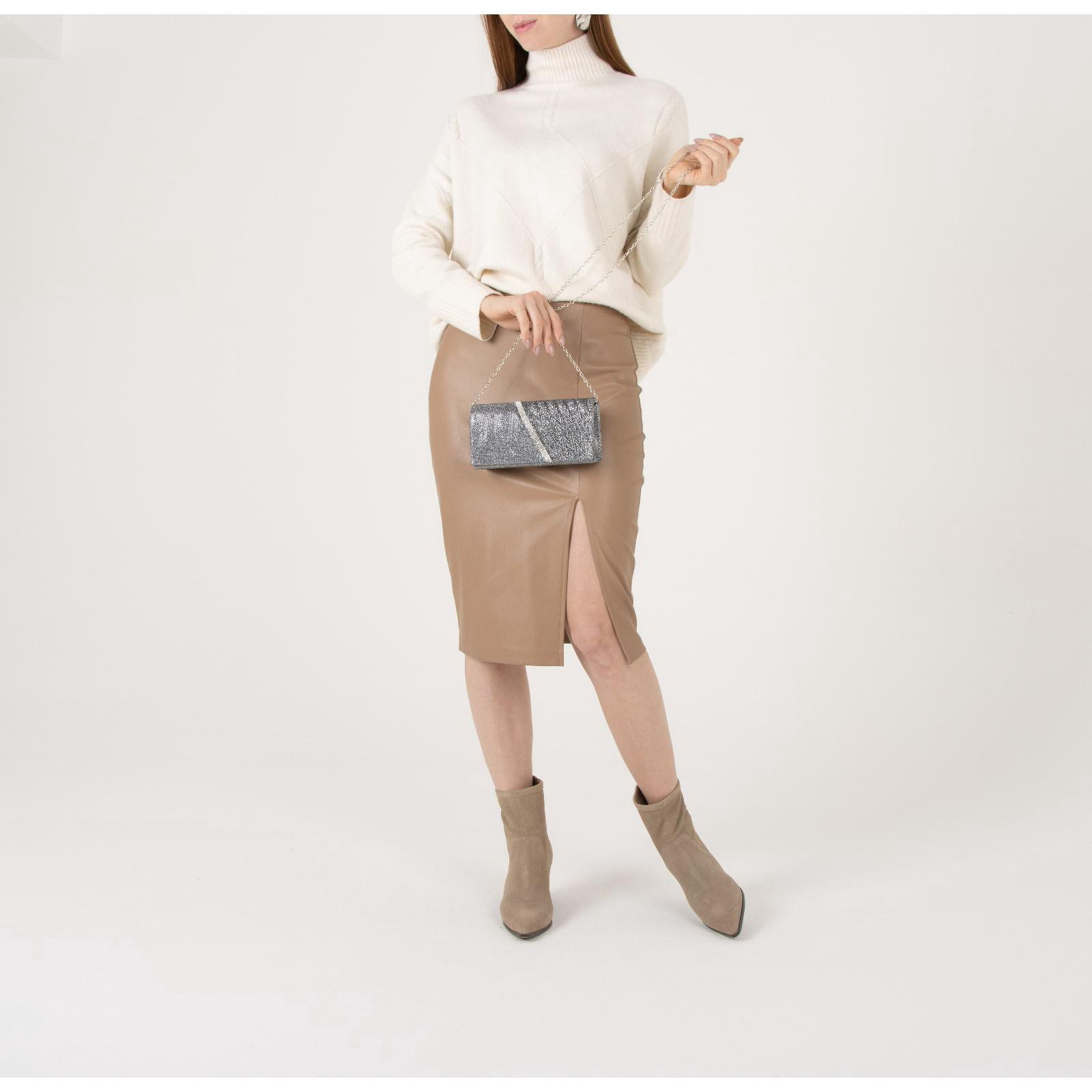Сумка-клатч женская вечерняя на магните, на длинной цепочке, со стразами, серебристая, 5x20x9 см., Китай