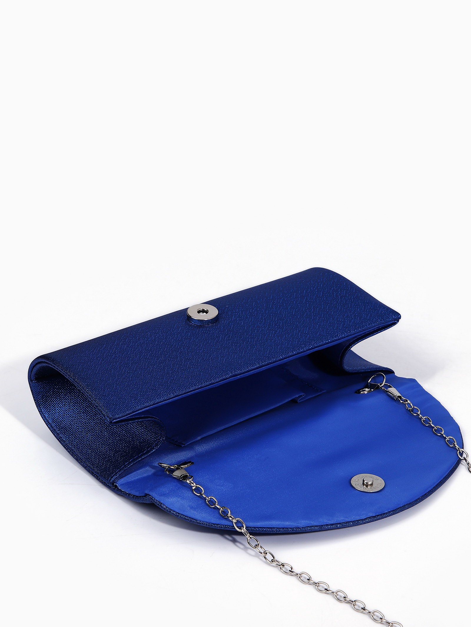 Сумка-клатч вечерняя на магните, на серебристой цепочке, синяя, 6x21x11 см., Китай