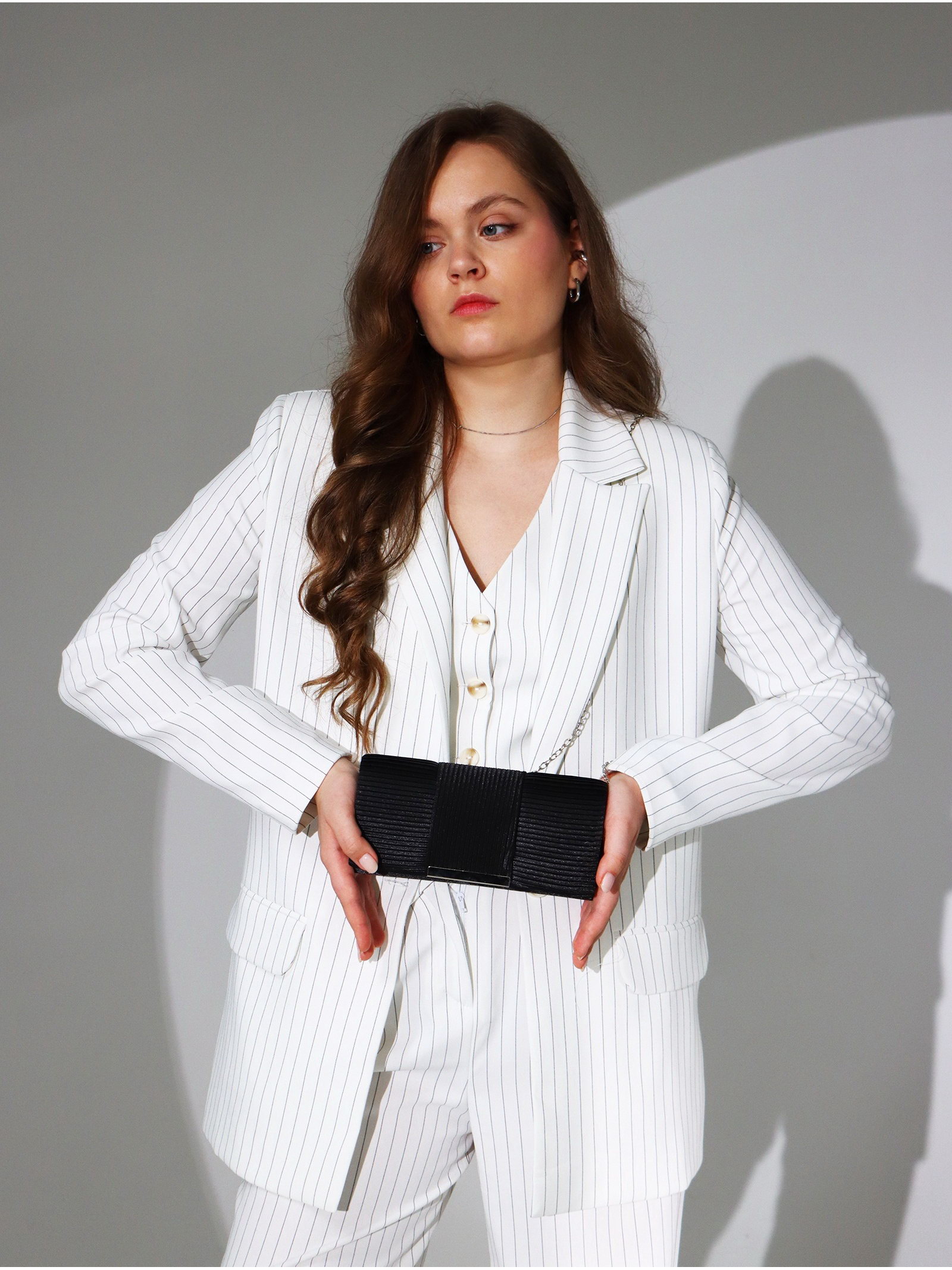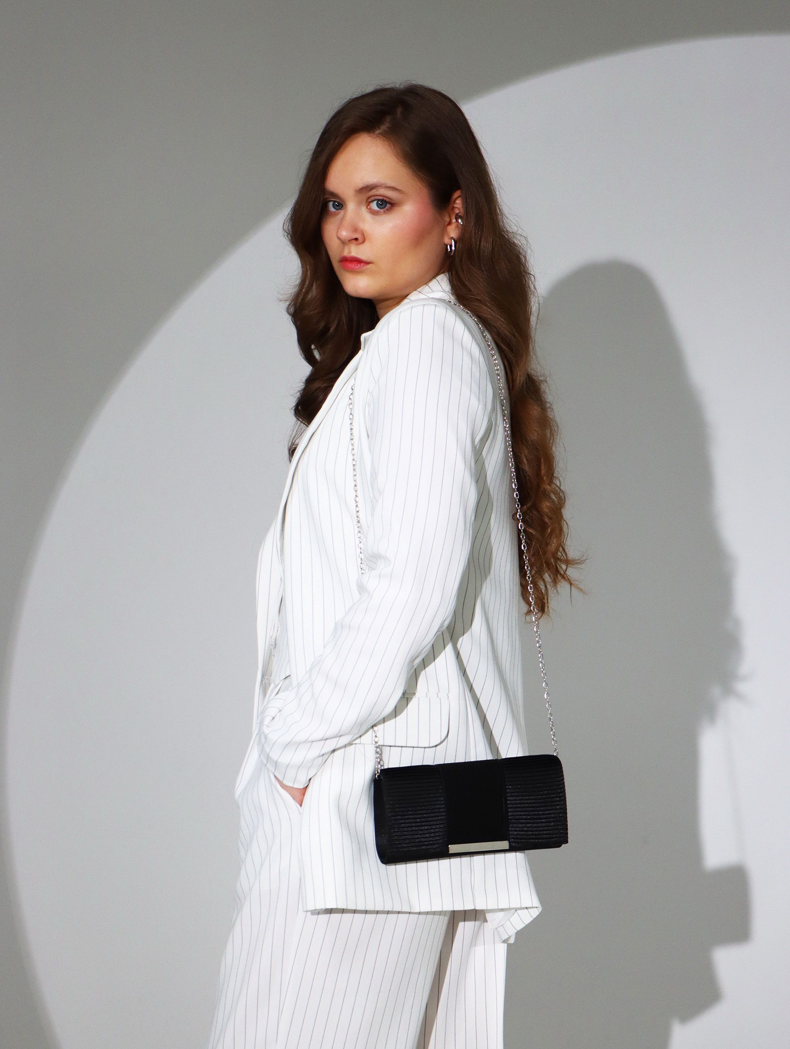 Сумка-клатч женская на магните, на длинной цепочке, чёрная, 6x21x10 см., Китай
