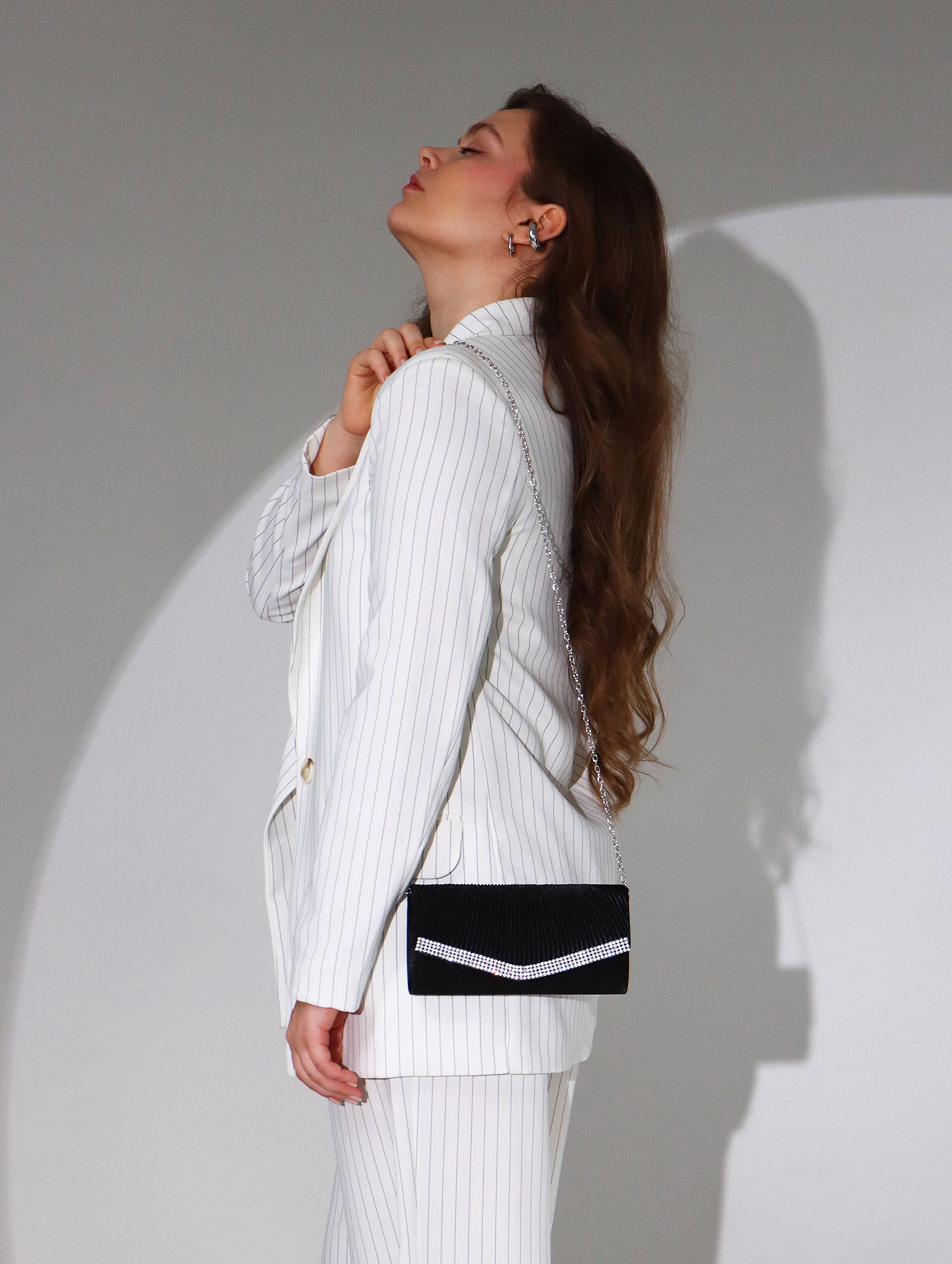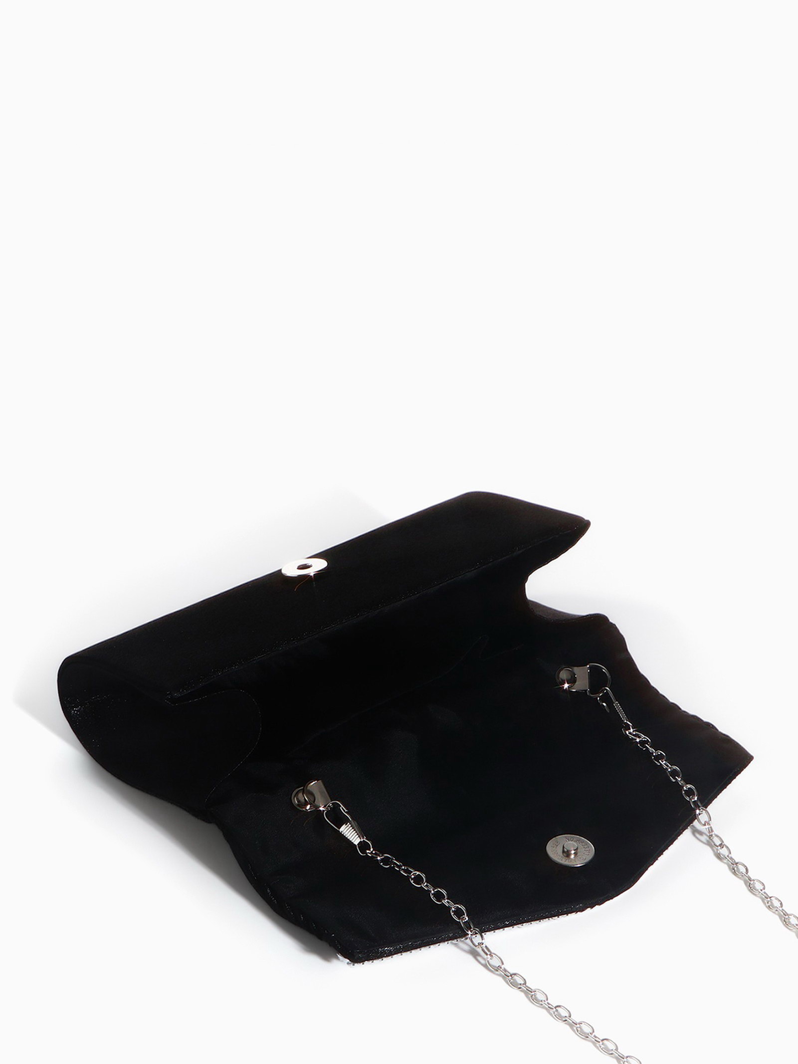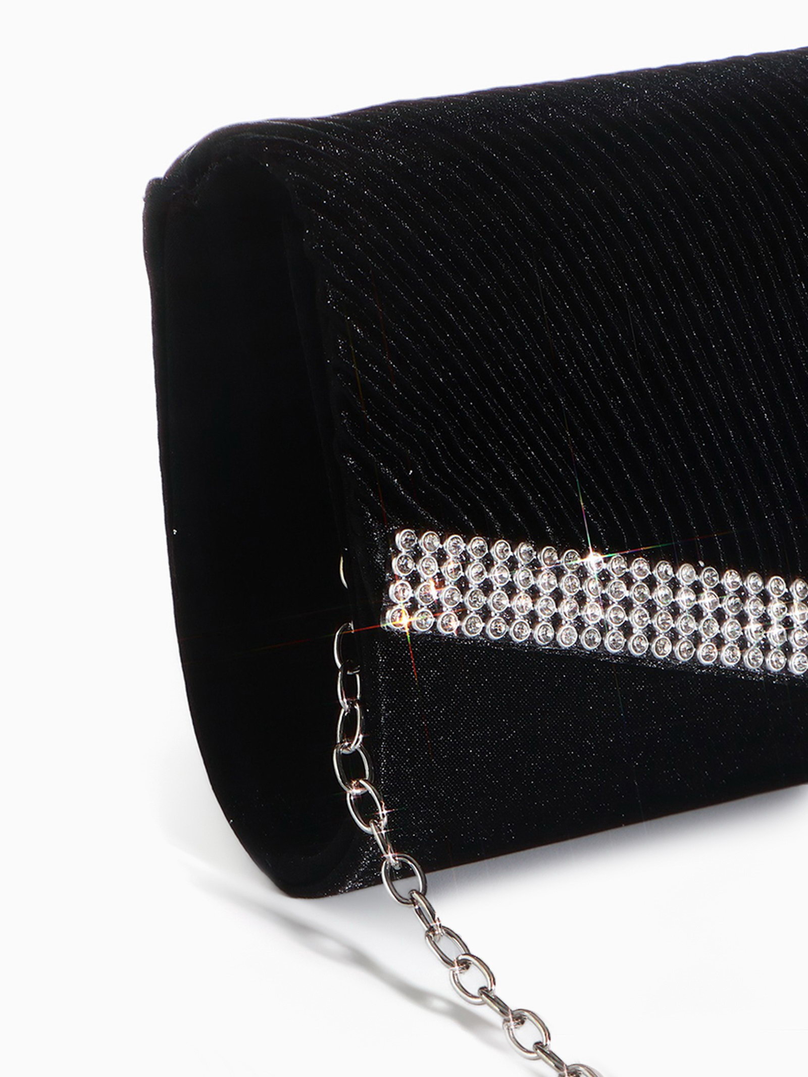 Сумка-клатч женская вечерняя на магните, на цепочке, со стразами, чёрная, 6x21x10 см., Китай