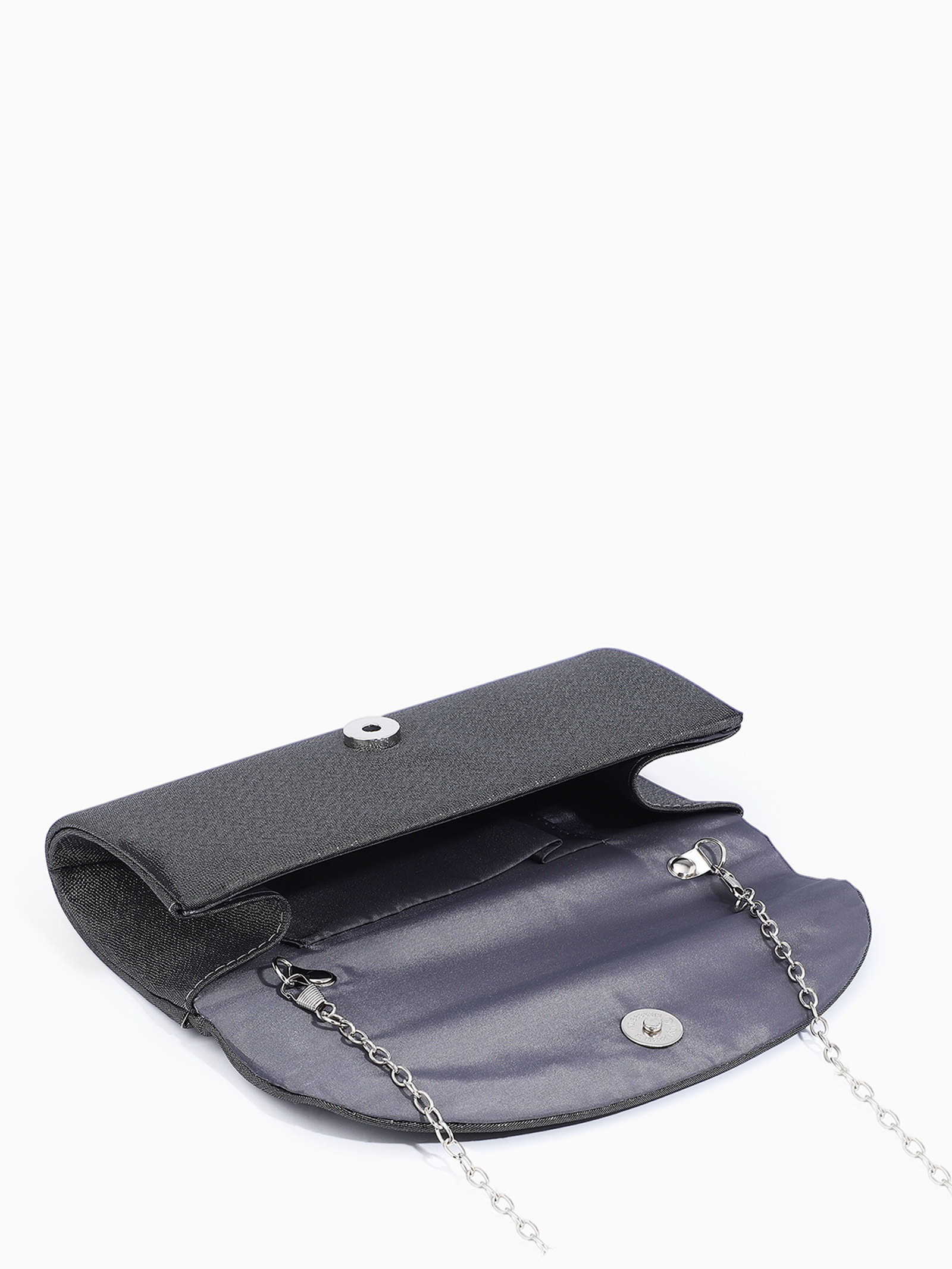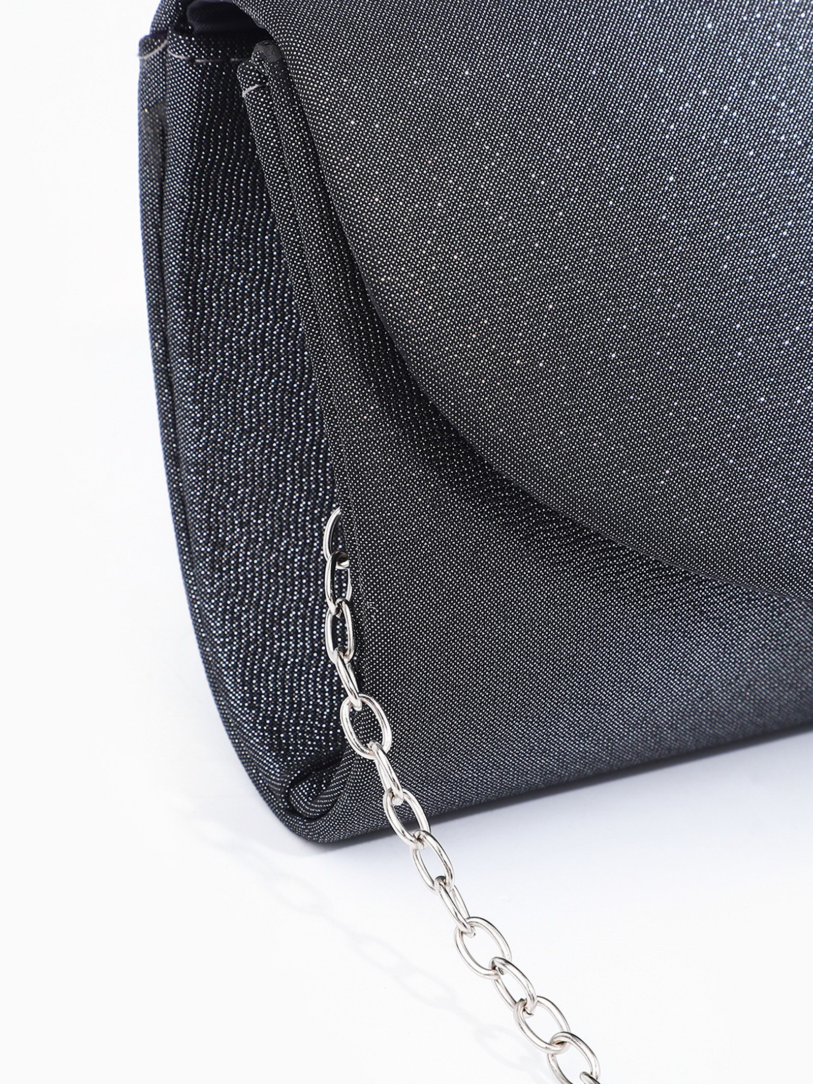 Сумка-клатч вечерняя на магните, на серебристой цепочке, серая, 6x21x11 см., Китай