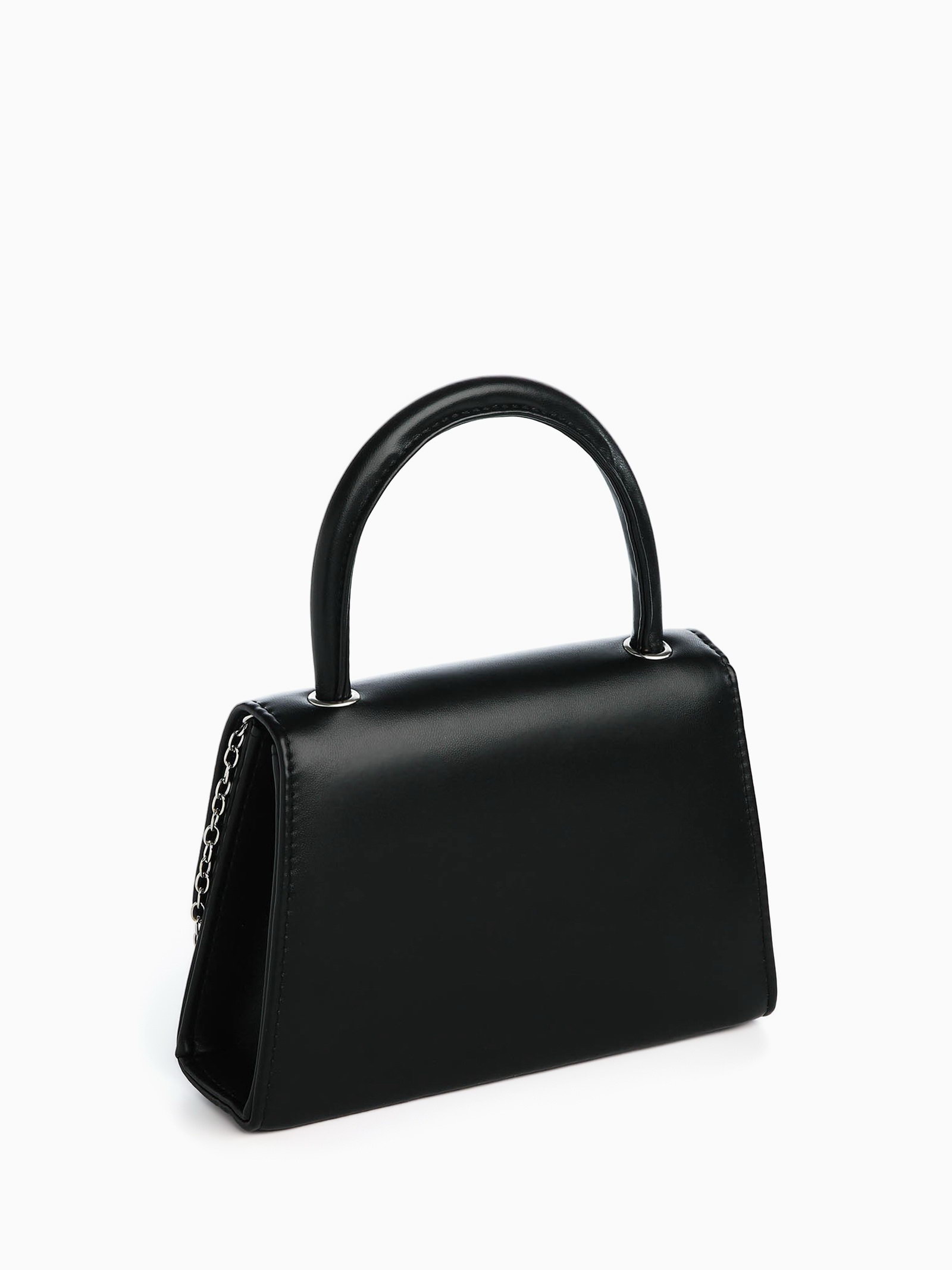 Сумка-клатч женская вечерняя на магните с ручкой, однотонная, чёрная, 5.5x20x14.5 см., Китай