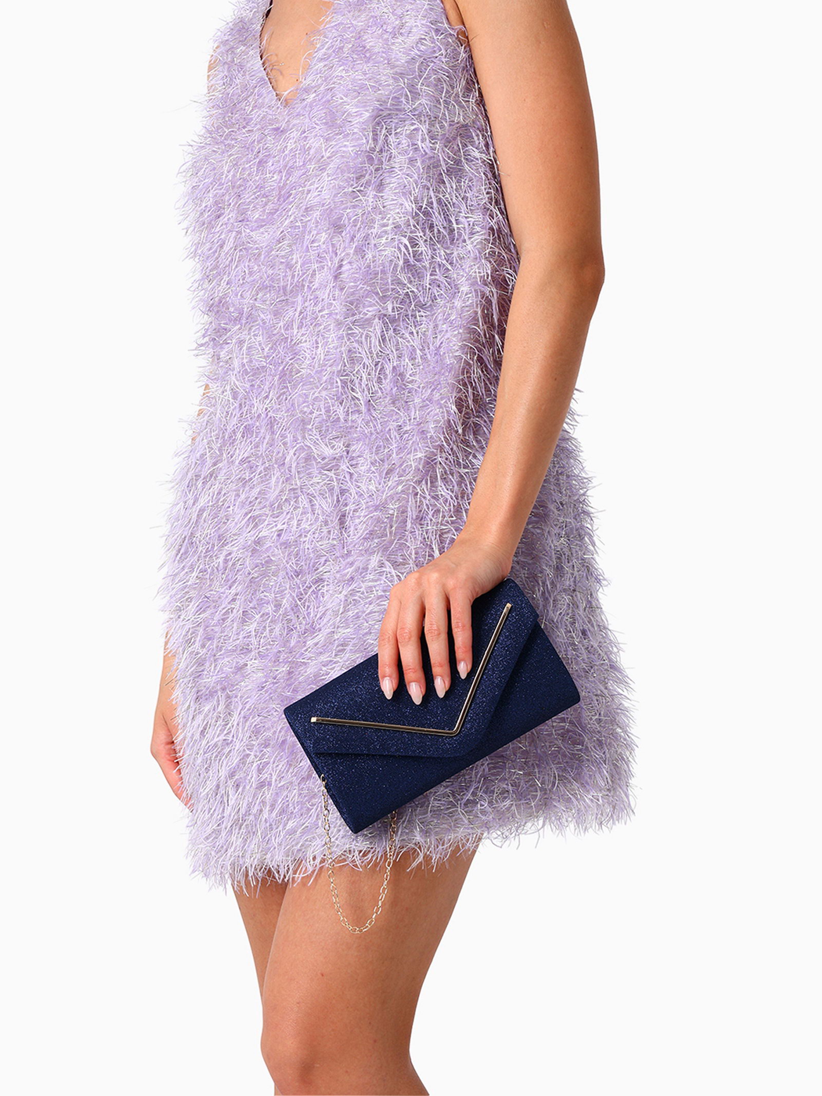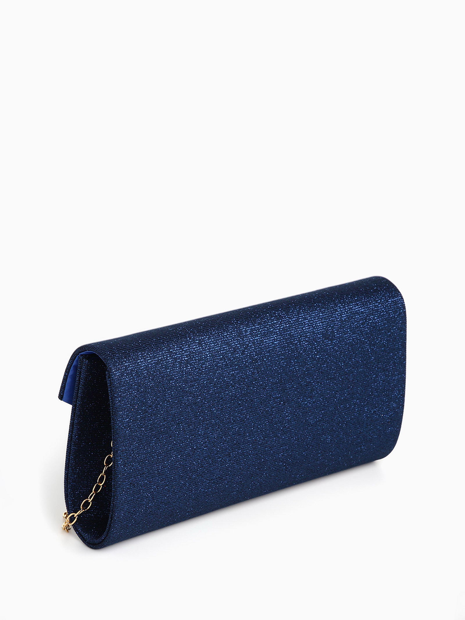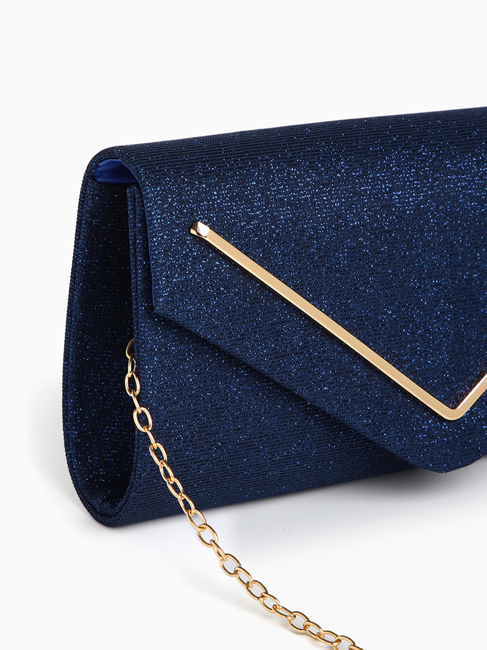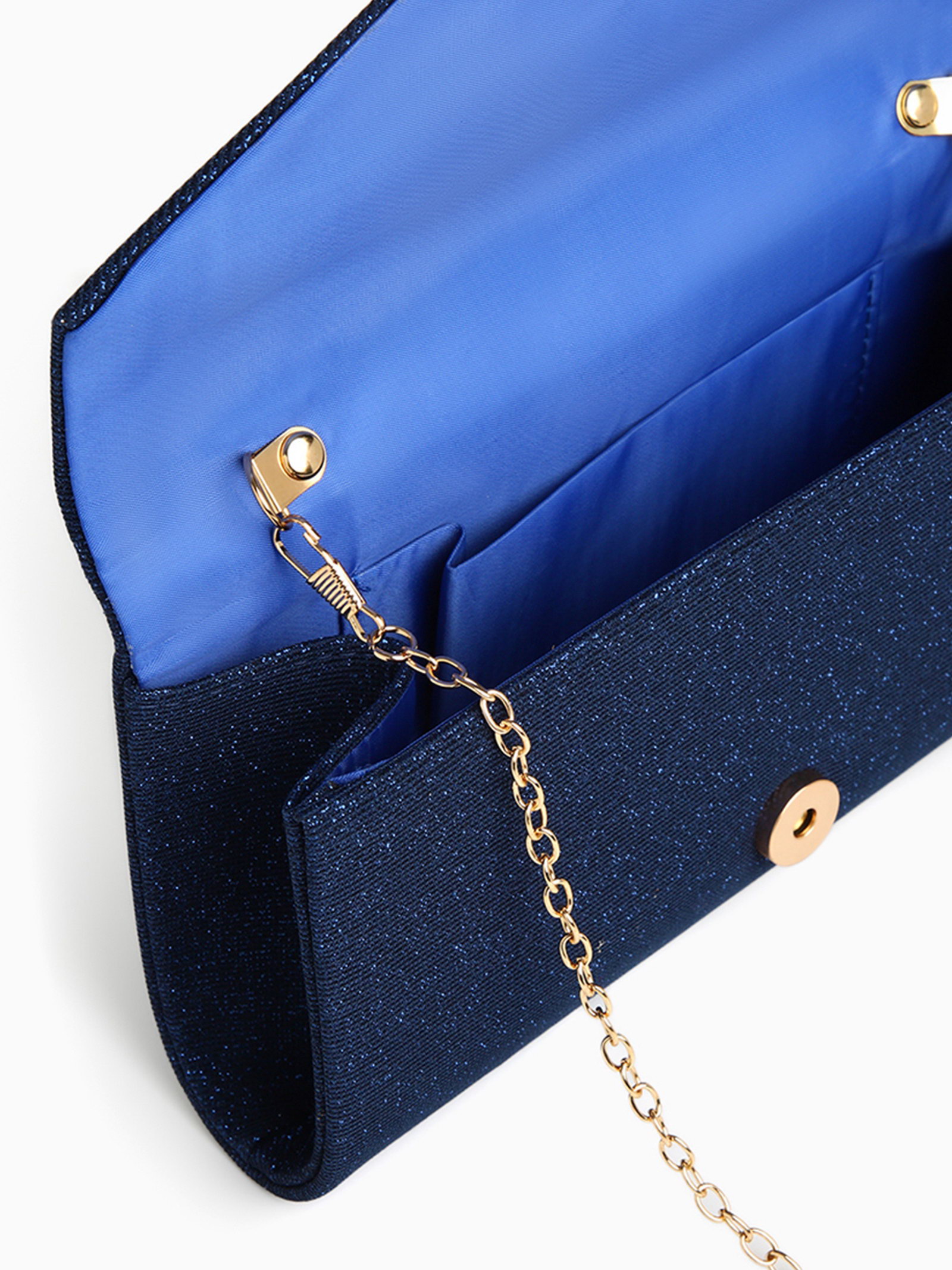 Сумка-клатч женская вечерняя на магните, на золотистой цепочке, тёмно-синяя, 4.5x22x12 см., Китай