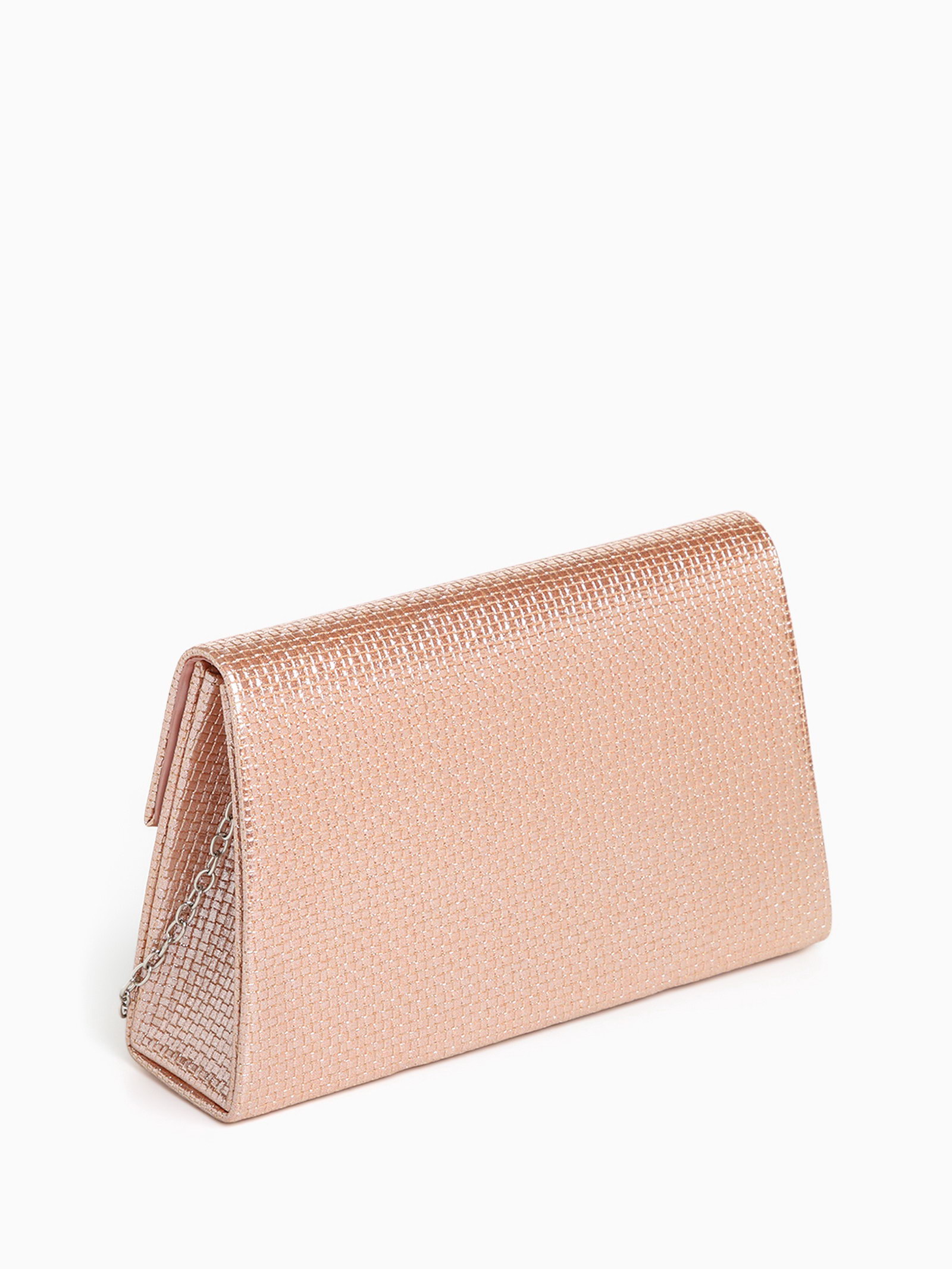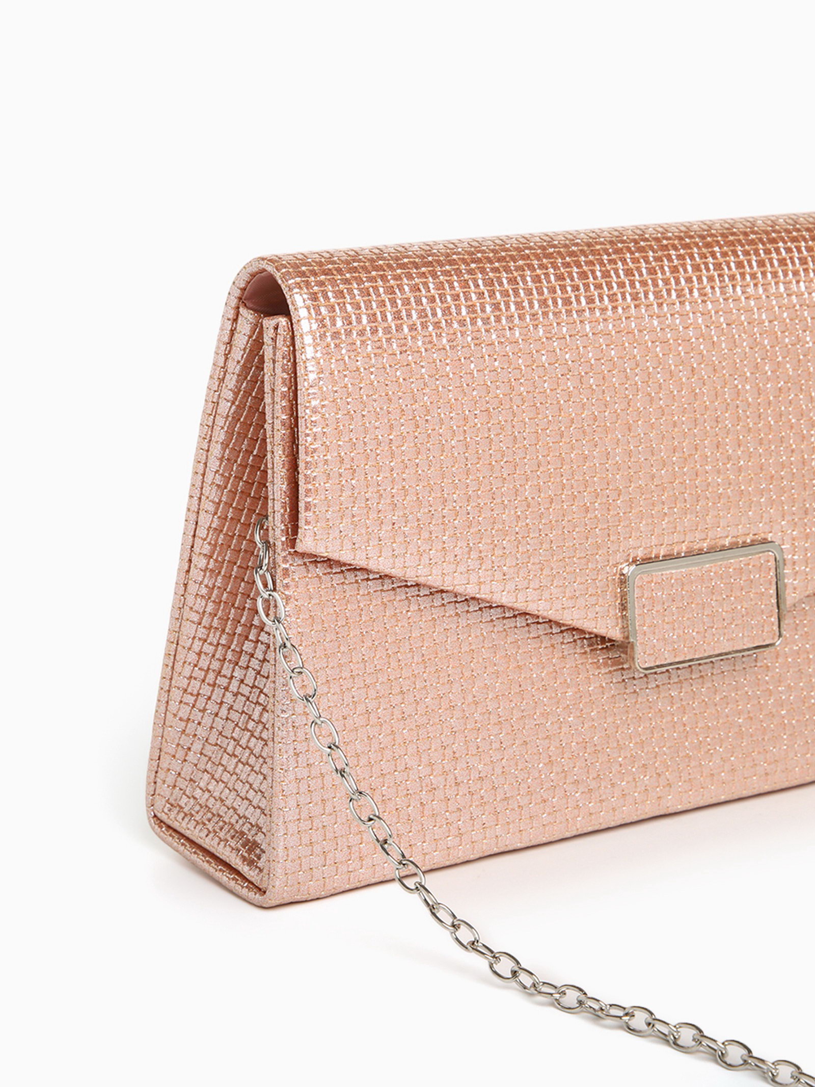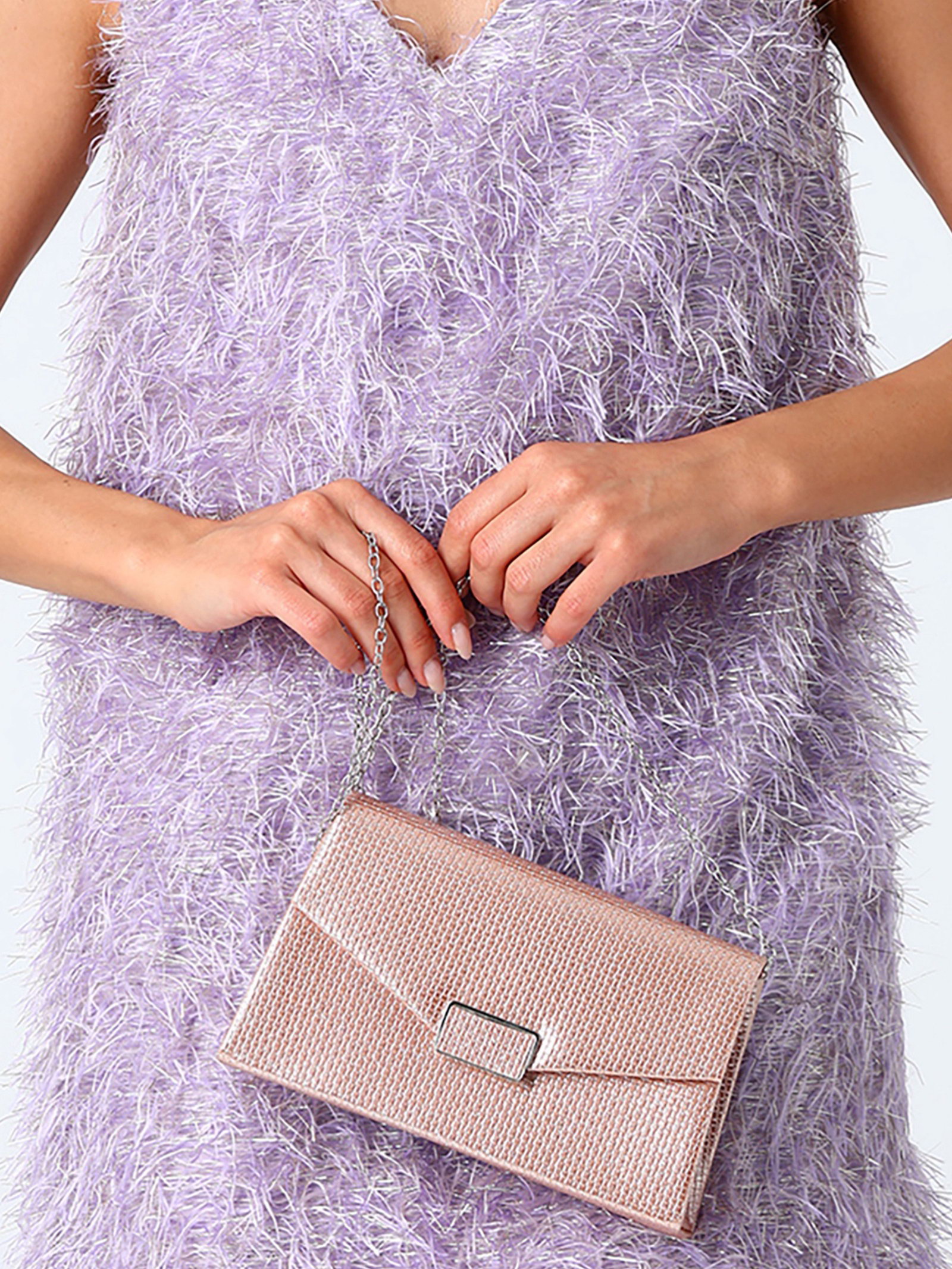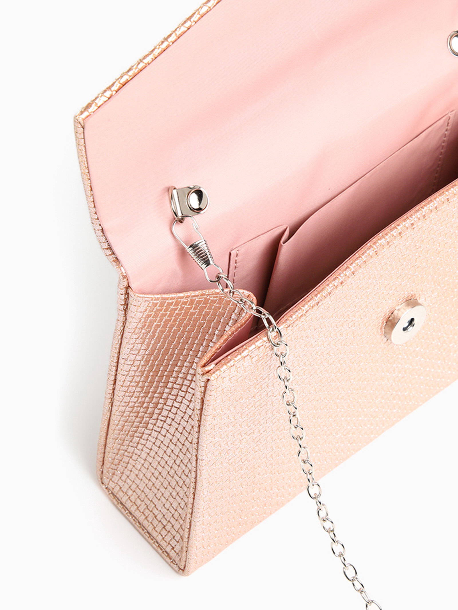 Сумка-клатч женская вечерняя на магните, на длинной серебристой цепочке, розовая, 5.5x22x12 см., Китай