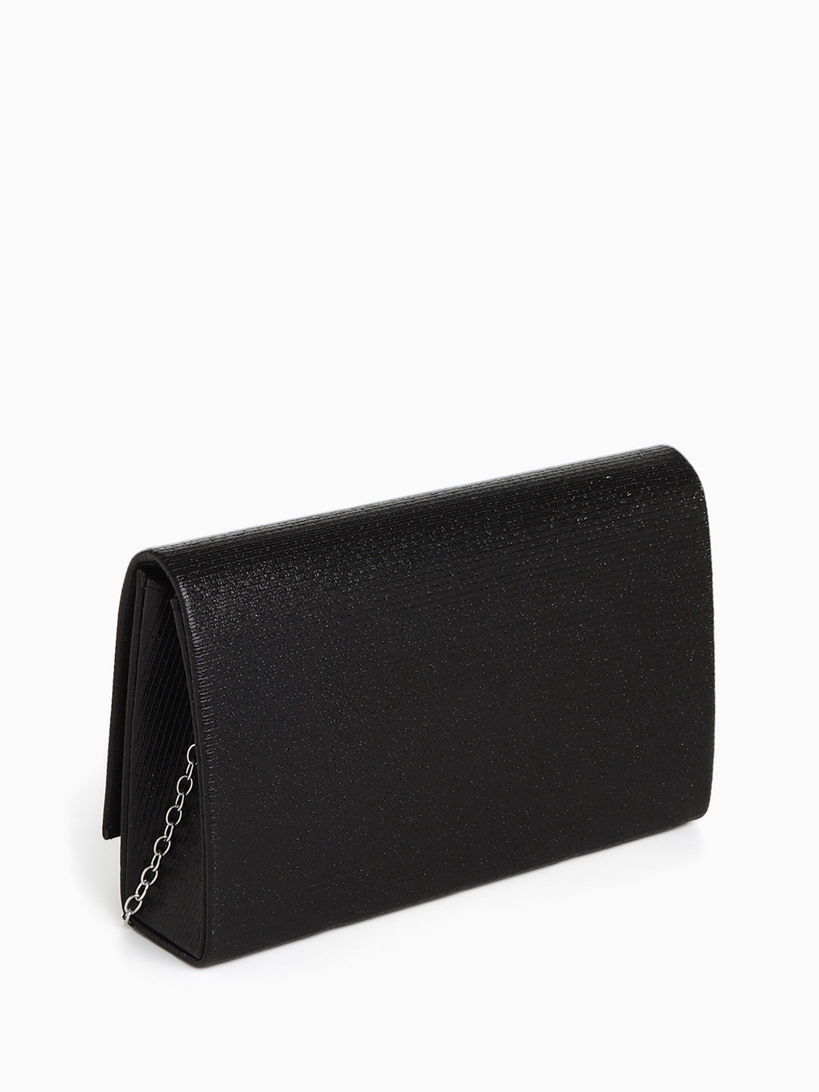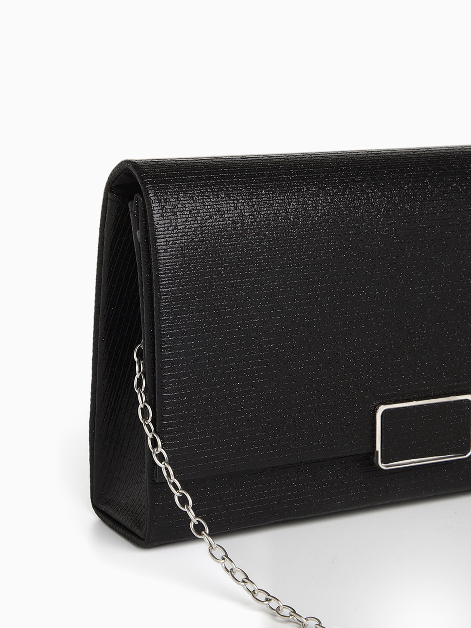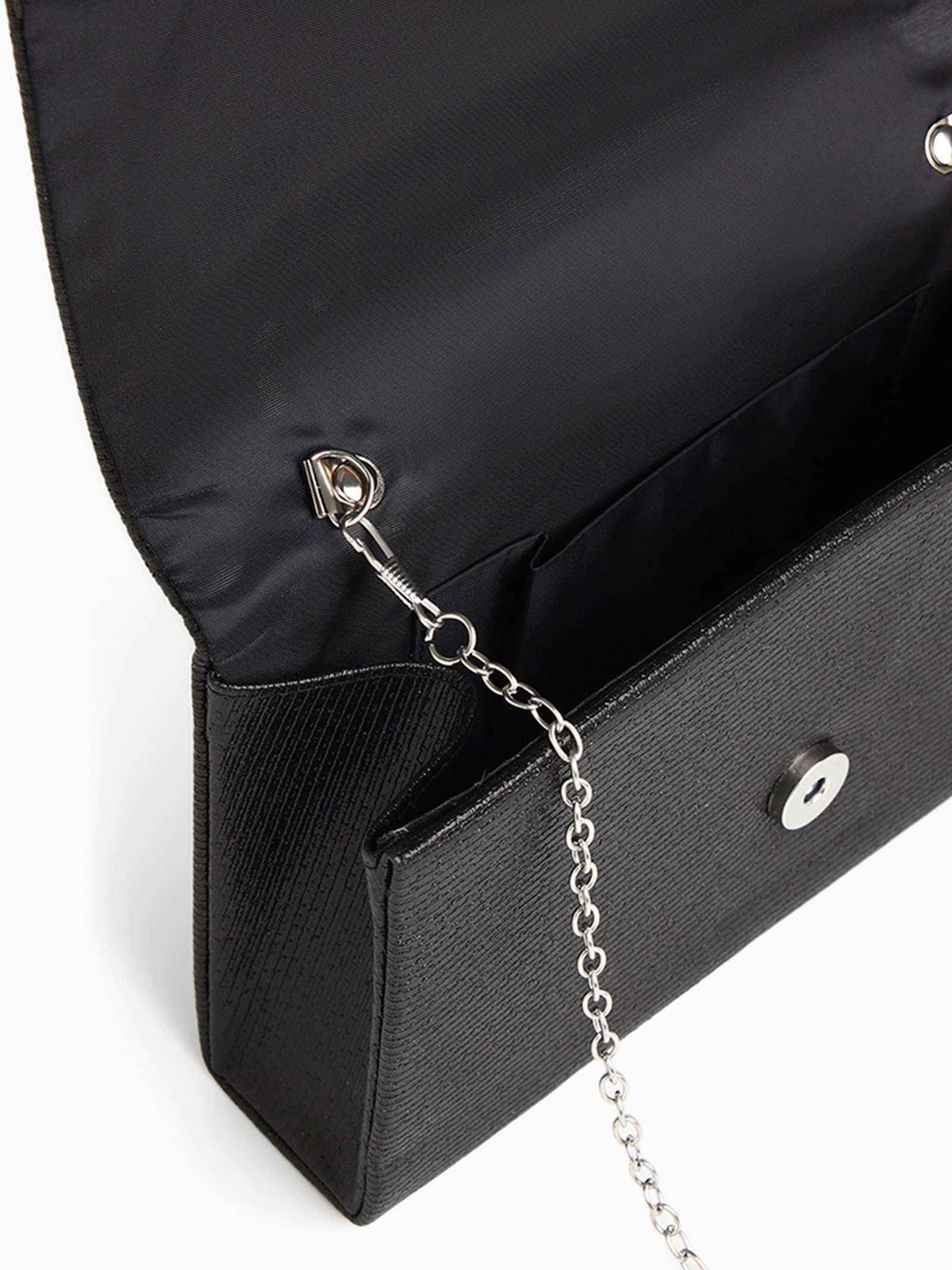 Сумка-клатч женская вечерняя на магните, на серебристой цепочке, однотонная, чёрная, 5x22x12 см., Китай