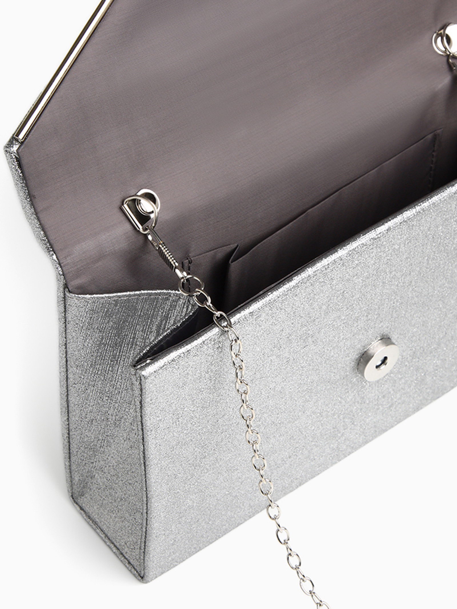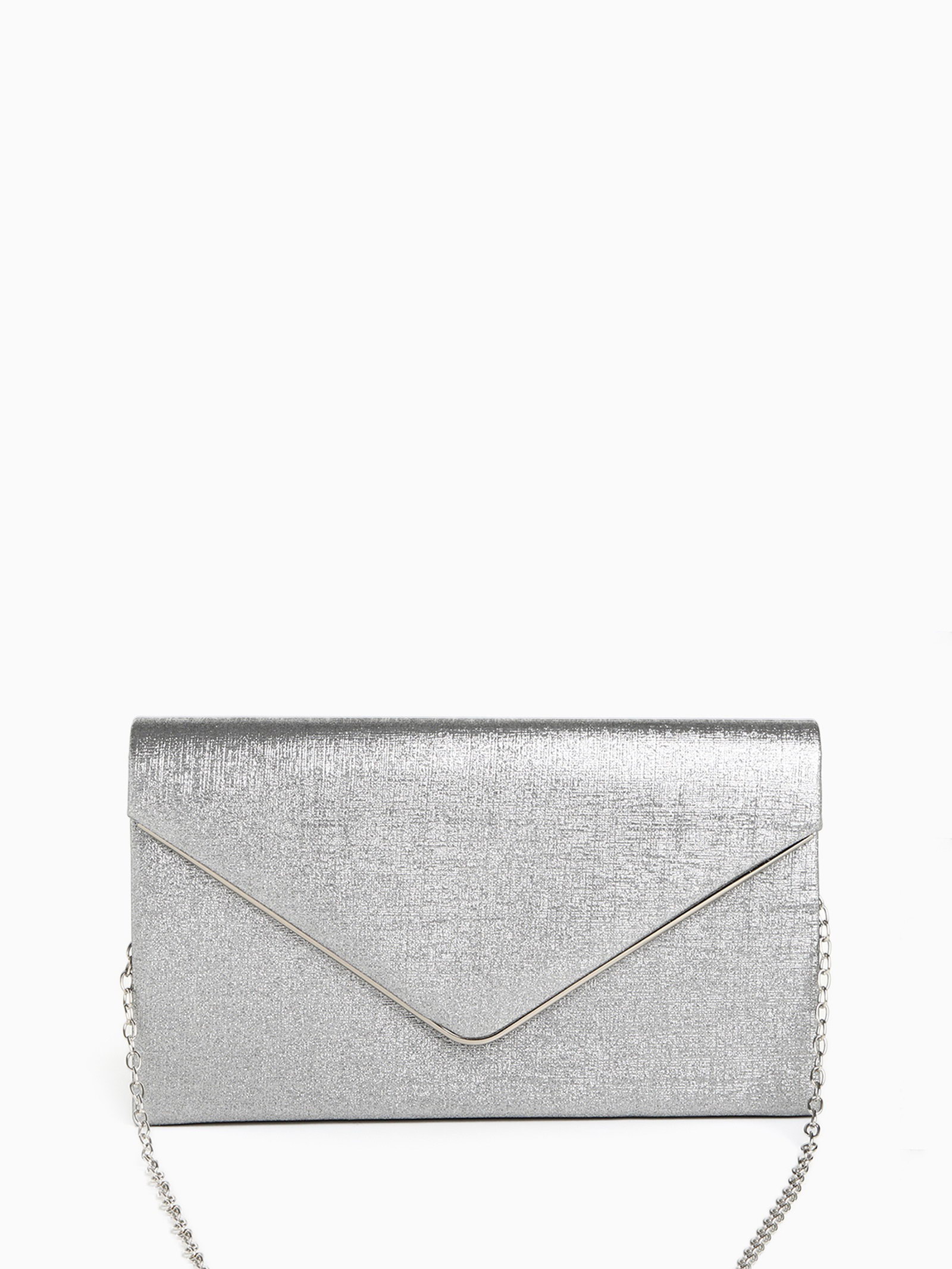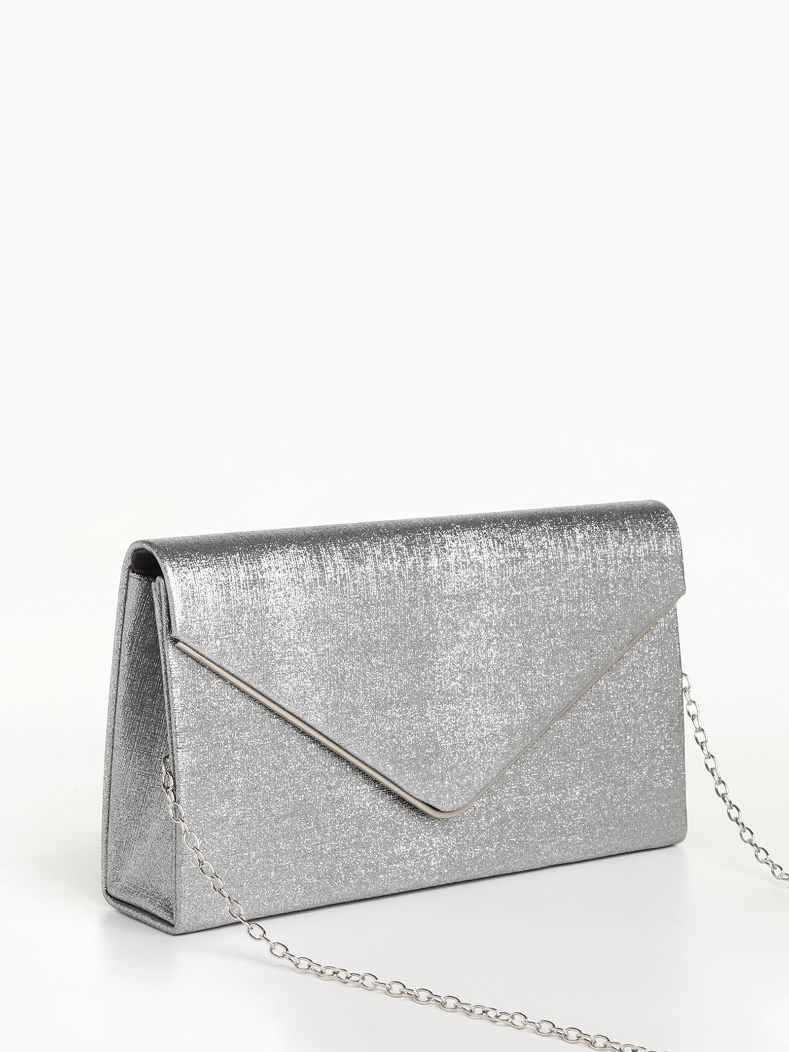 Сумка-клатч женская вечерняя на магните, на золотистой цепочке, мерцающая, серебристая, 5x23x13 см., Китай