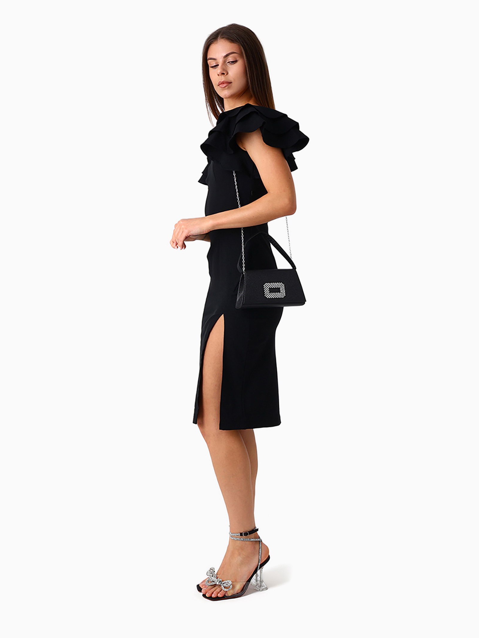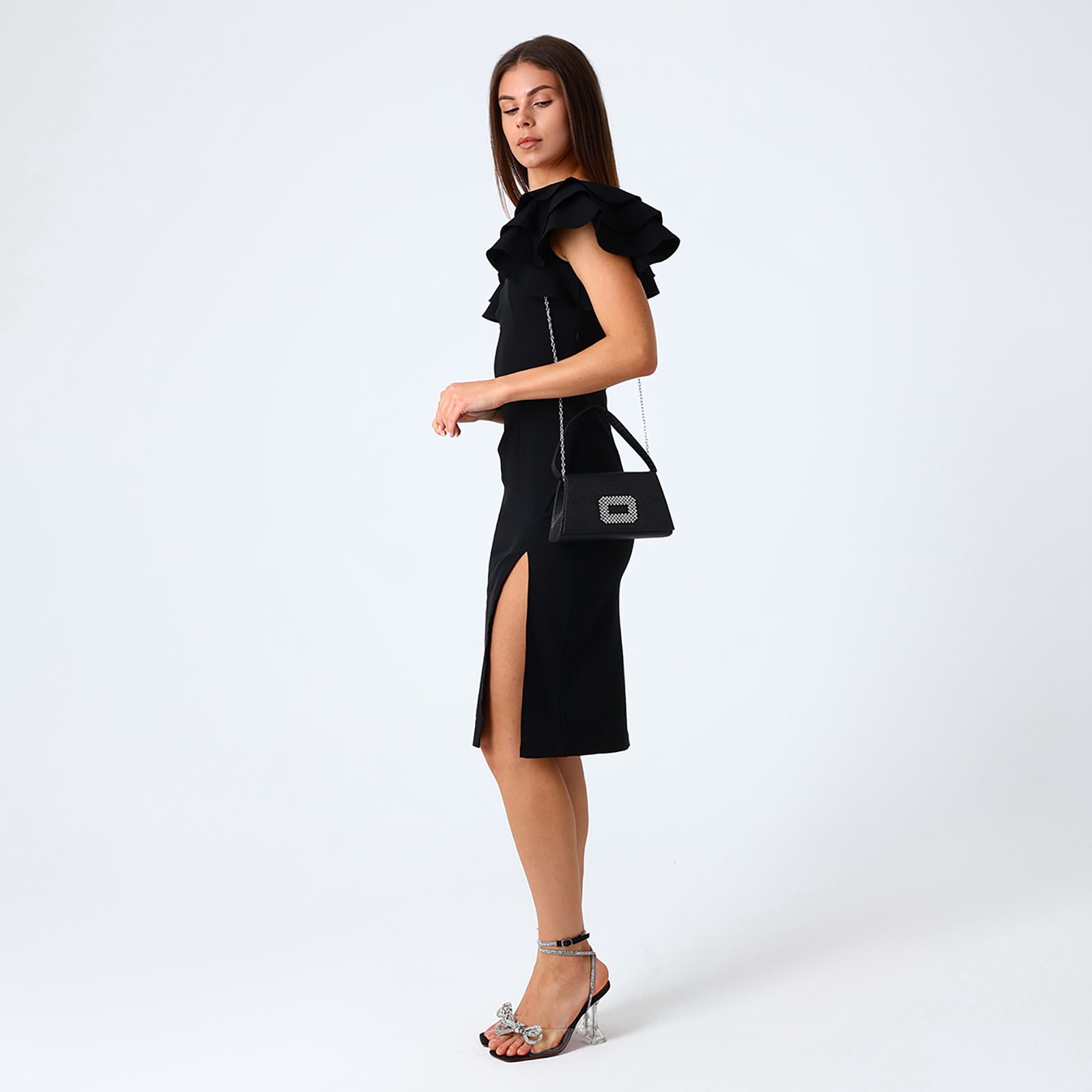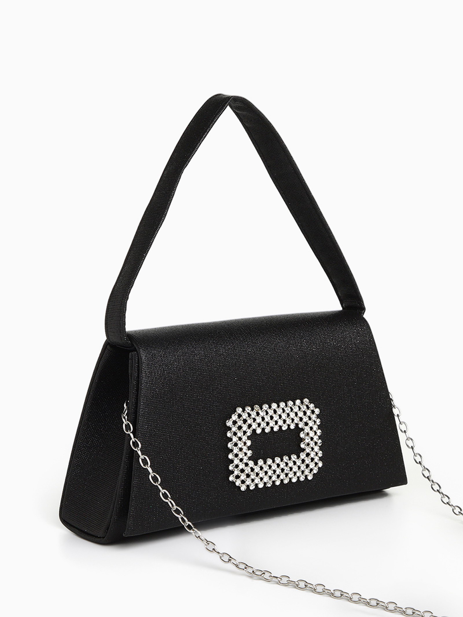 Сумка-клатч женская вечерняя на магните, чёрная, 5.5x21.5x11 см., Китай