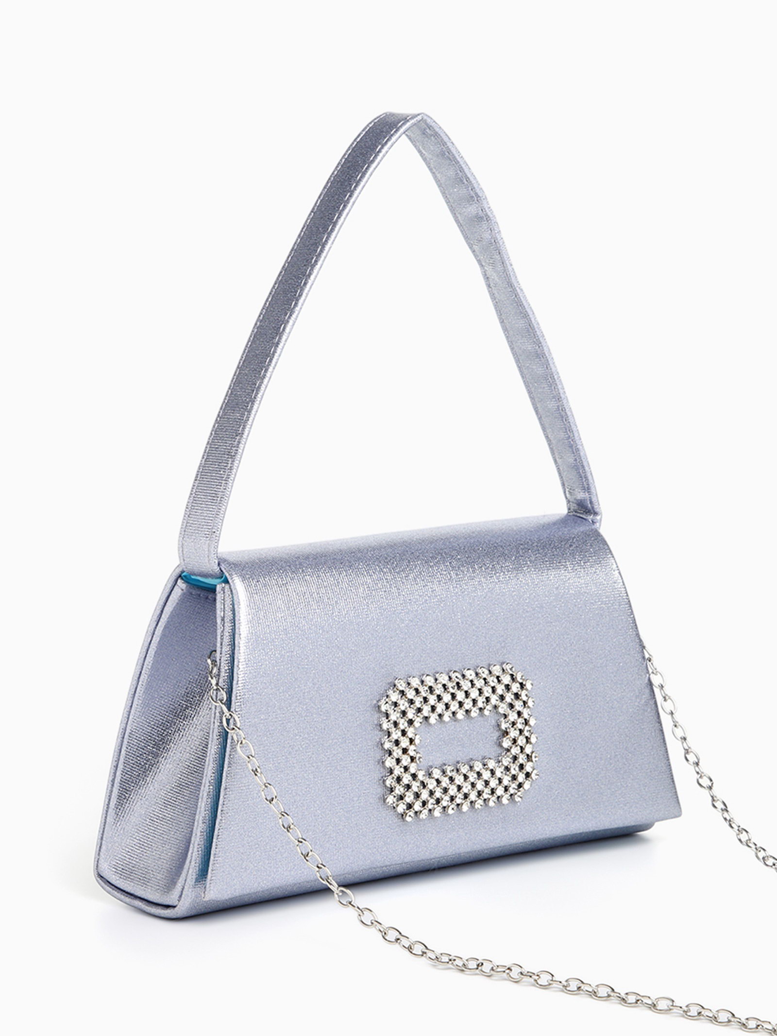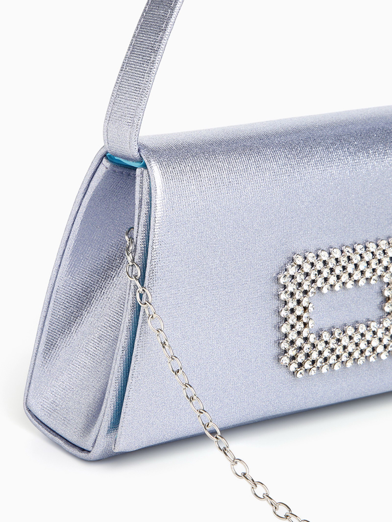 Сумка-клатч женская вечерняя на магните, серо-голубая, 5.5x21.5x11 см., Китай