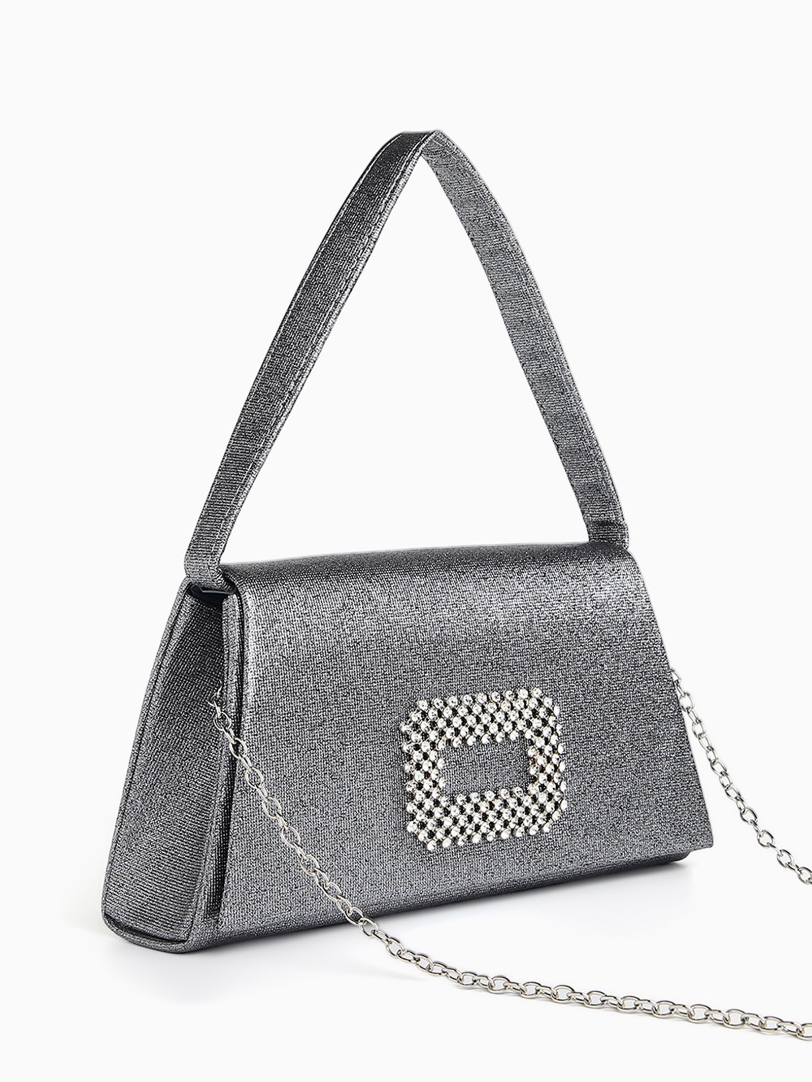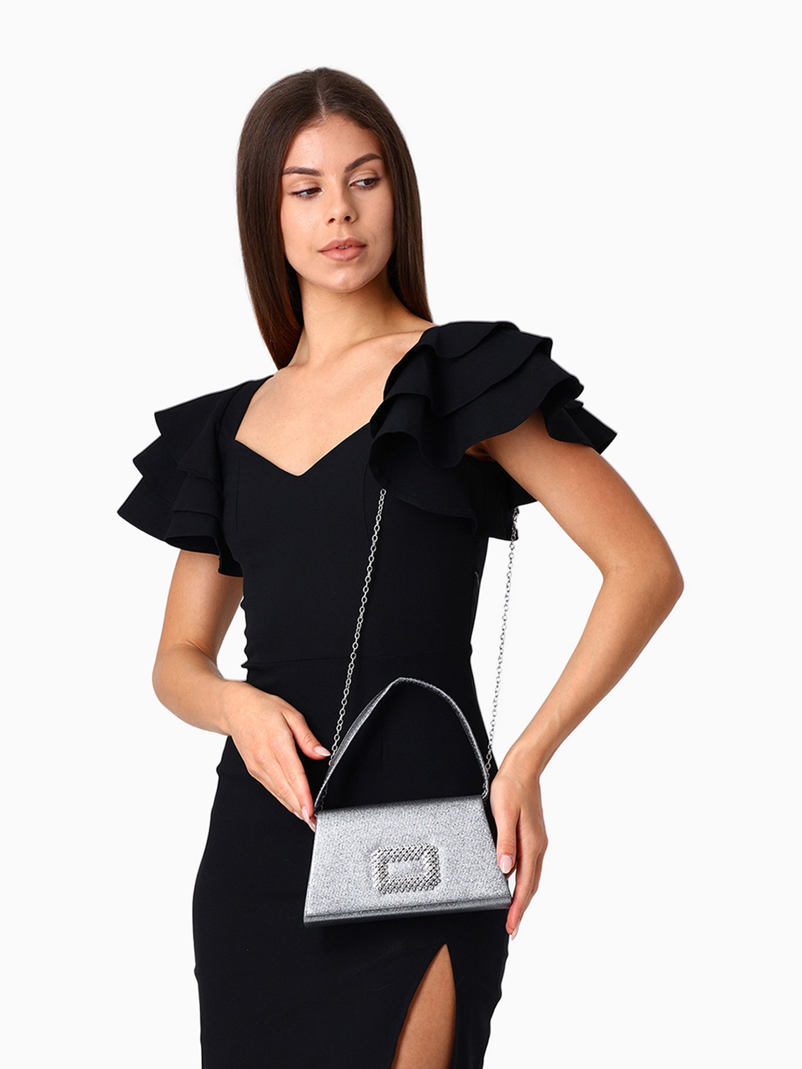 Сумка-клатч женская вечерняя на магните, серая, 5.5x21.5x11 см., Китай