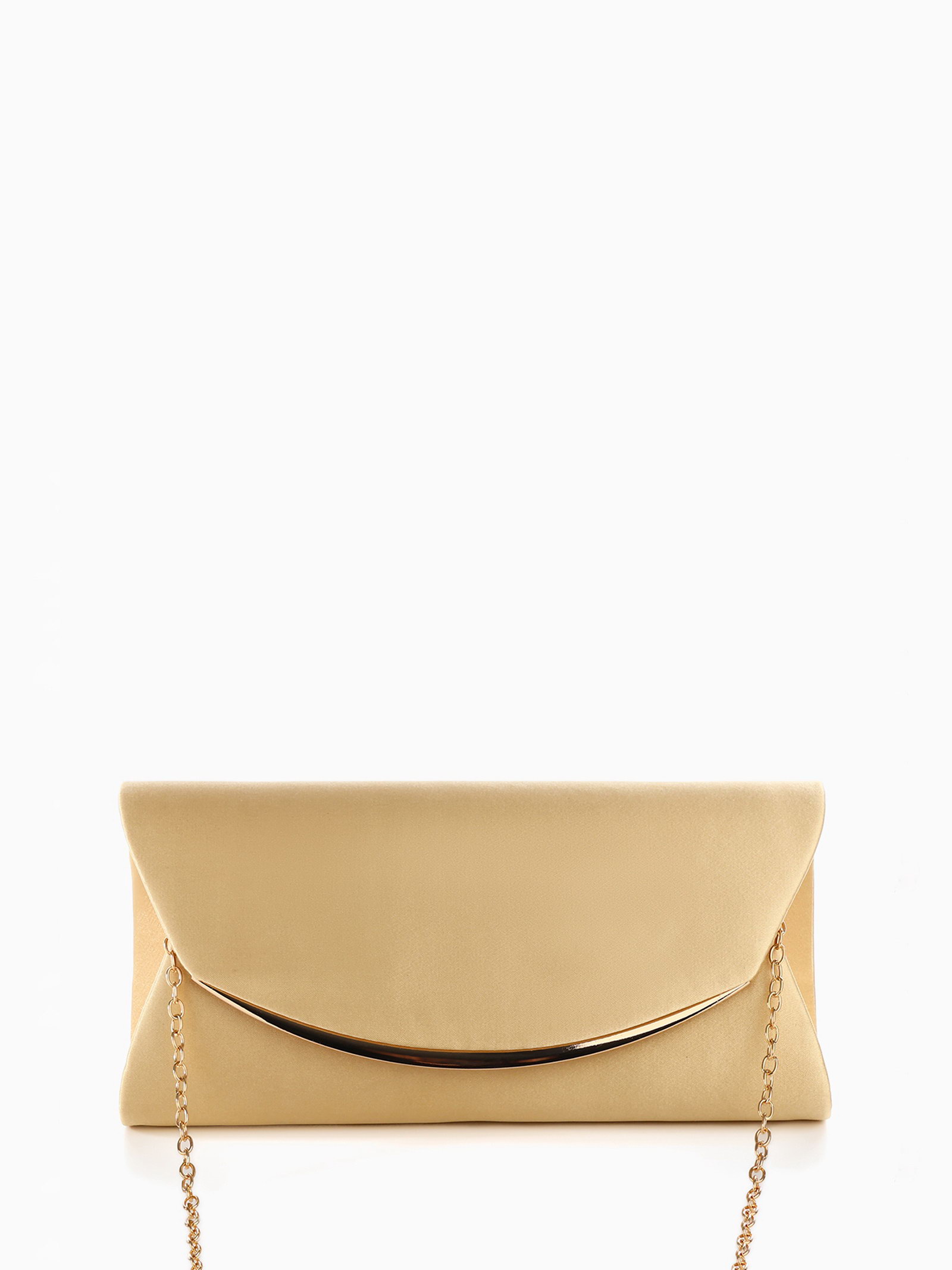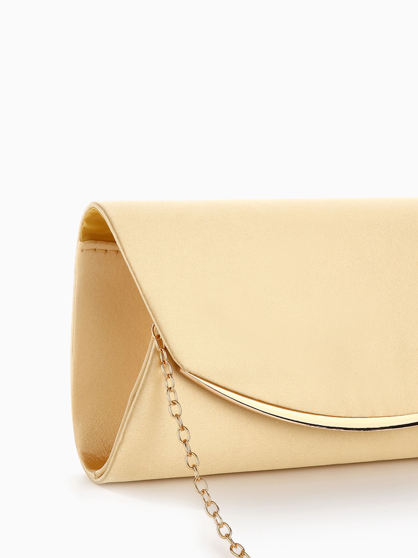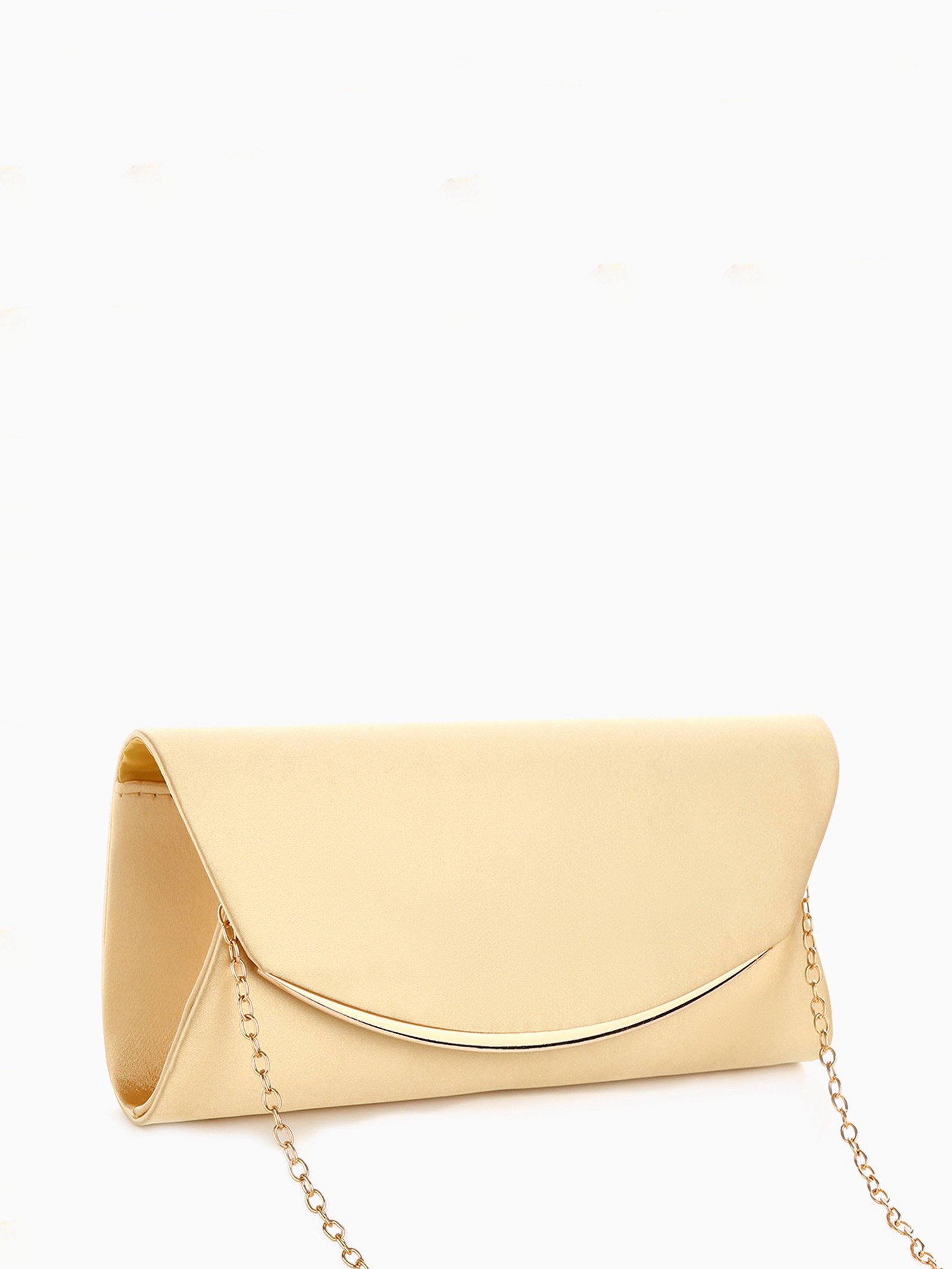 Сумка-клатч женская вечерняя на магните, на золотистой цепочке, однотонная, бежевая, 4.5x24x12 см., Китай