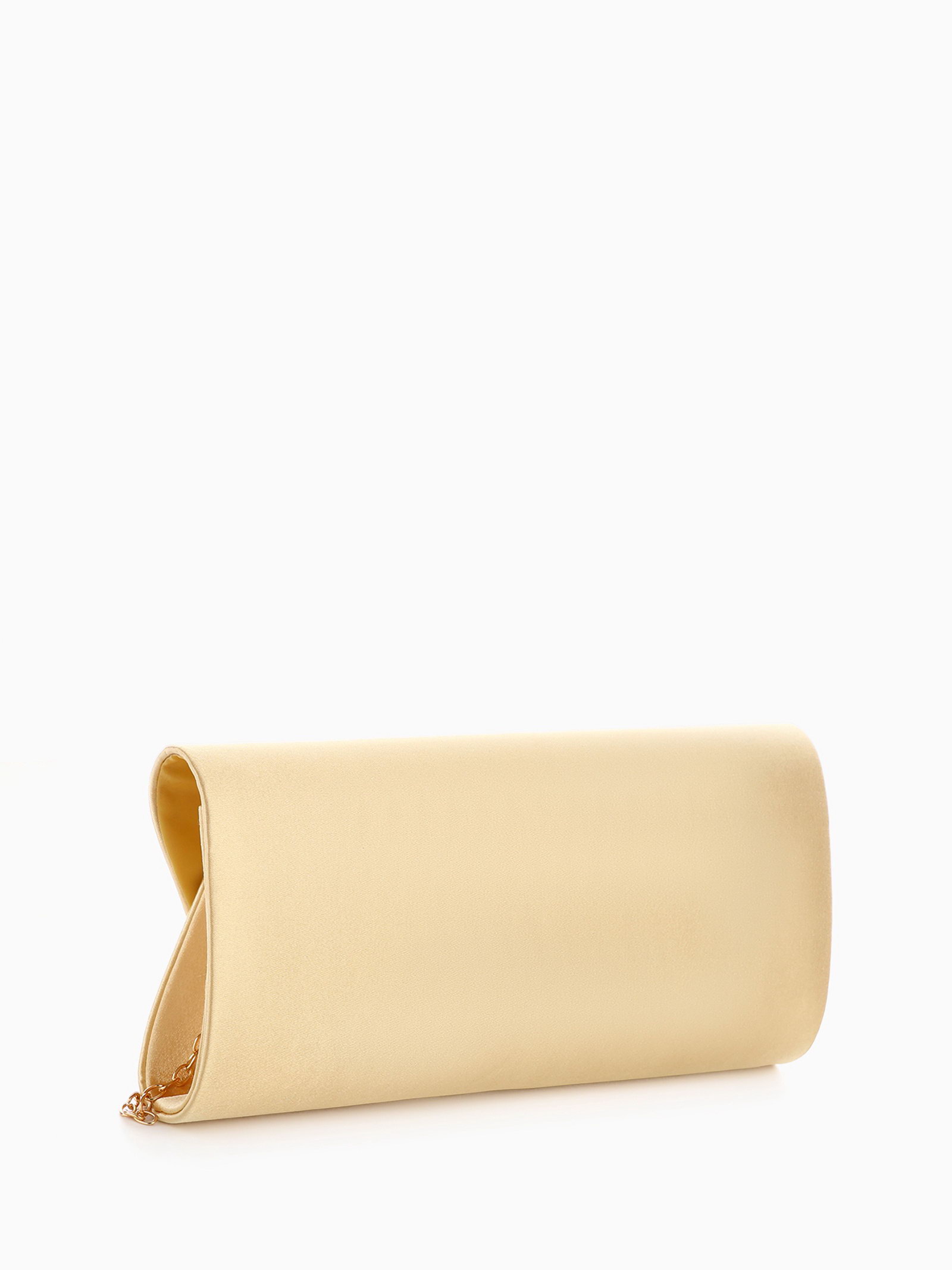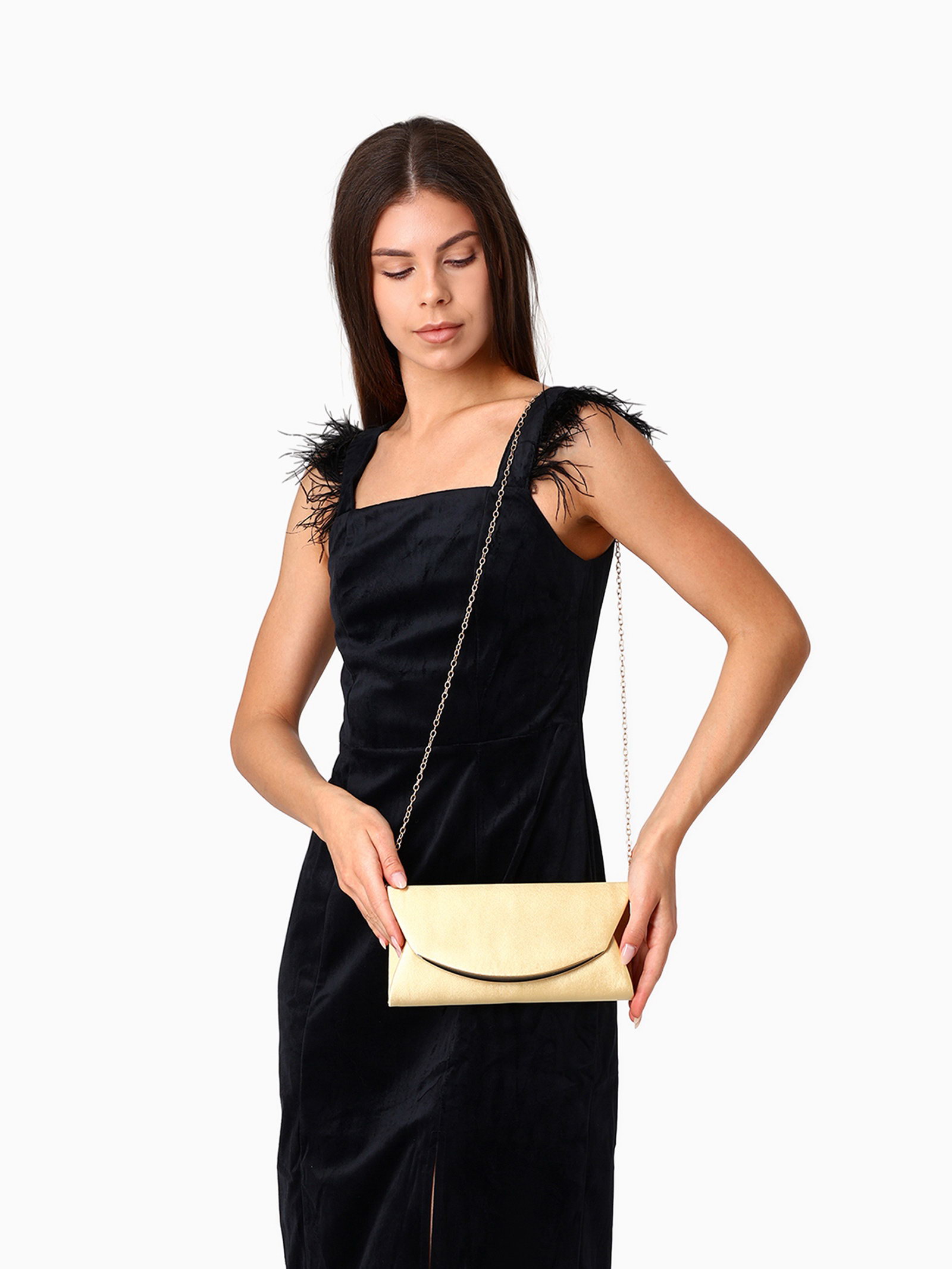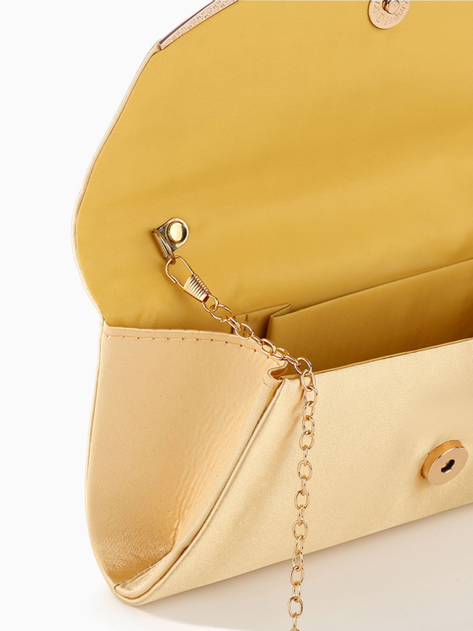 Сумка-клатч женская вечерняя на магните, на золотистой цепочке, однотонная, бежевая, 4.5x24x12 см., Китай