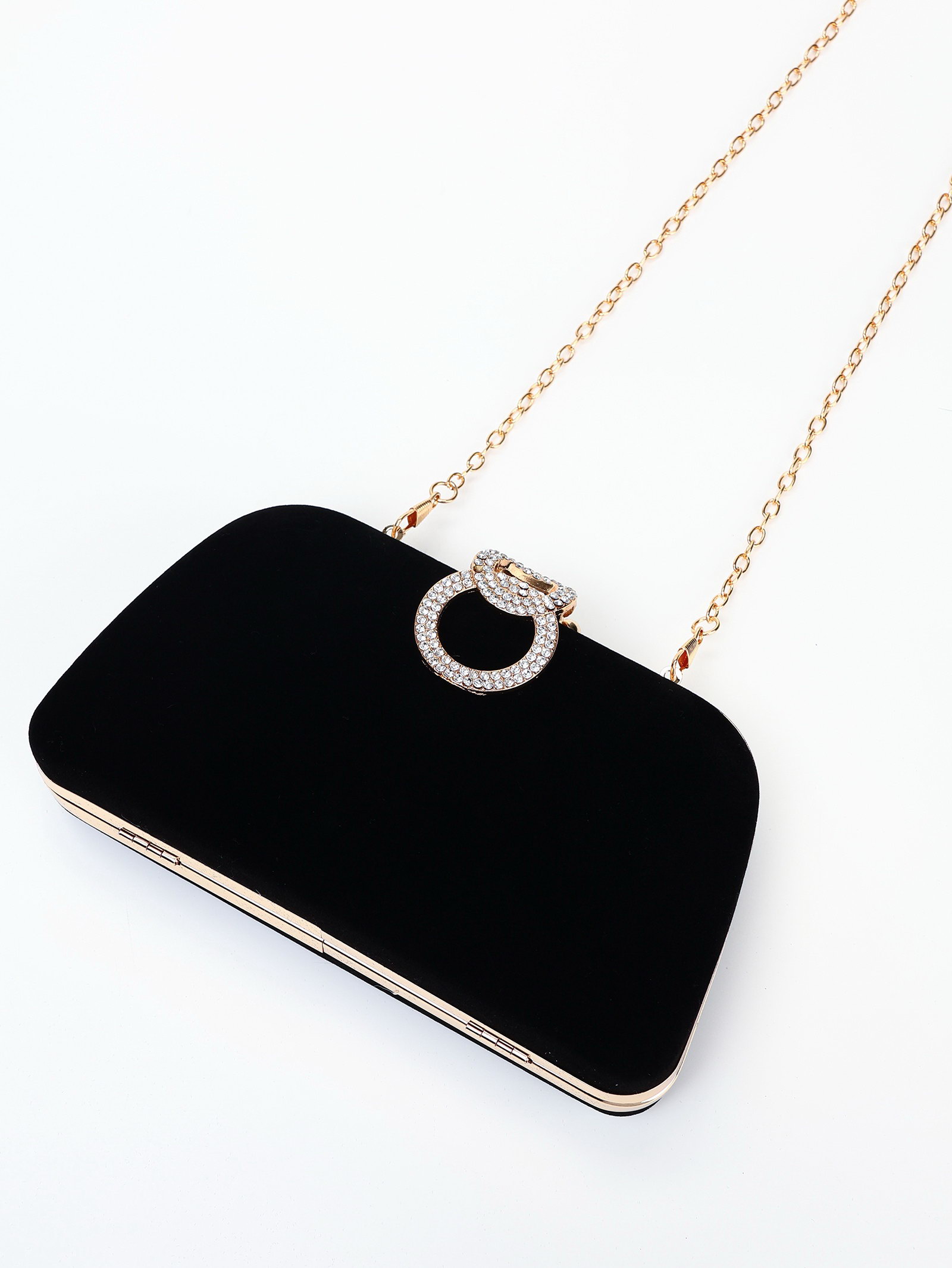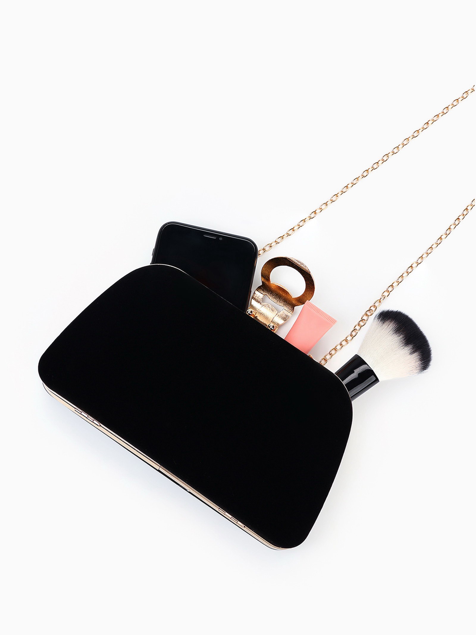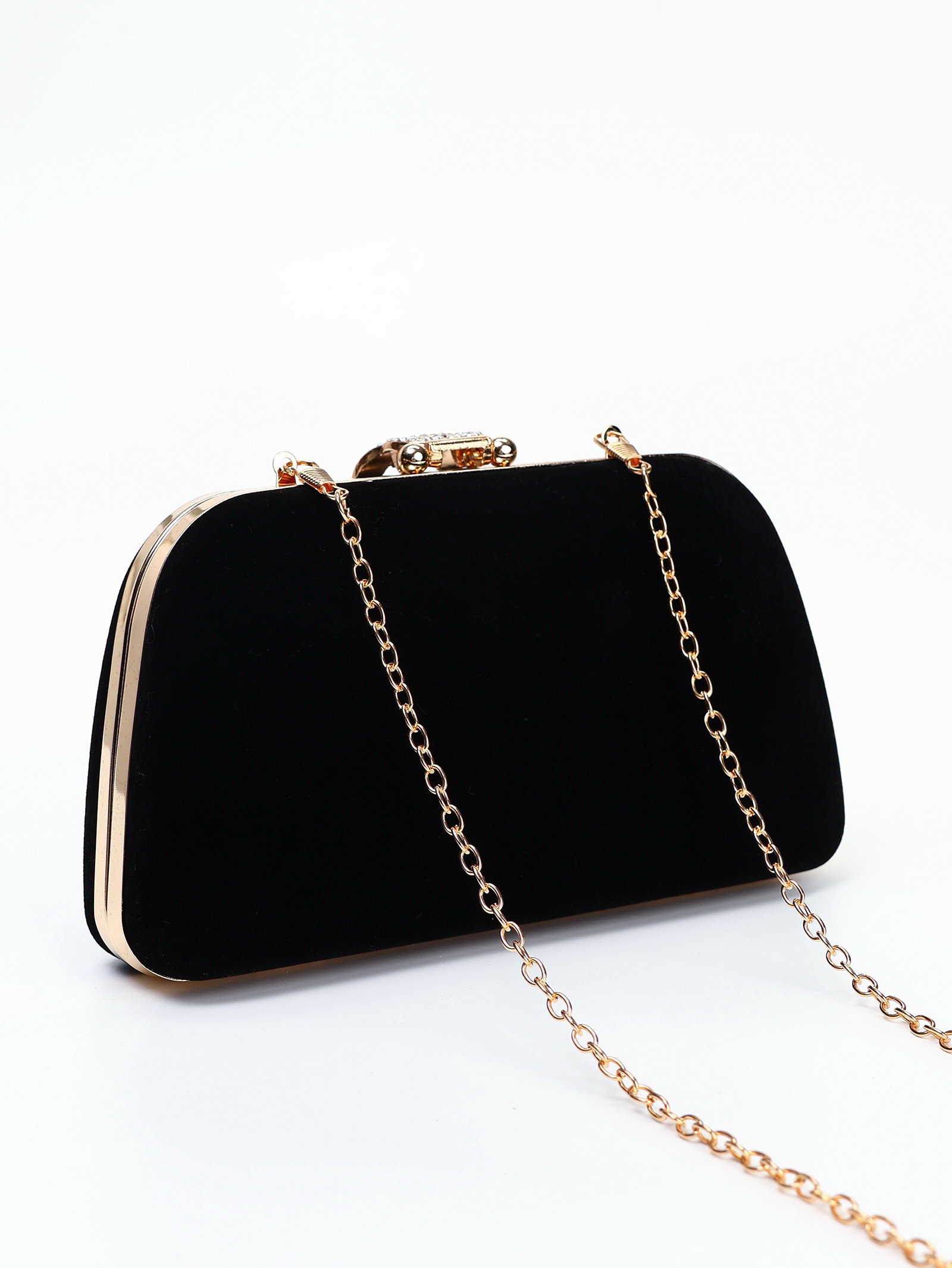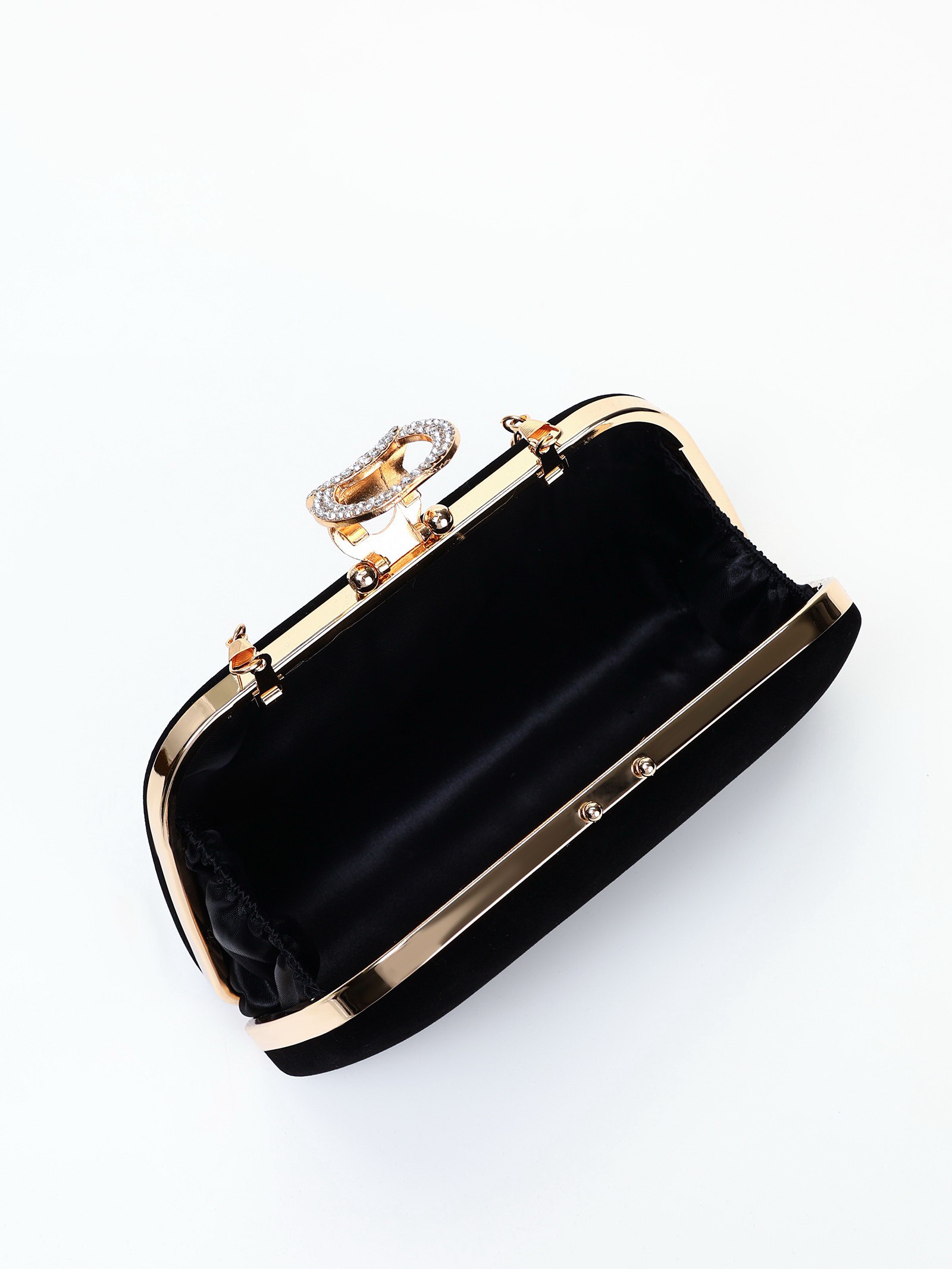 Сумка-клатч женская вечерняя на фермуаре, жёсткий корпус, с акцентной застёжкой, чёрная, 6x20x12 см., Китай