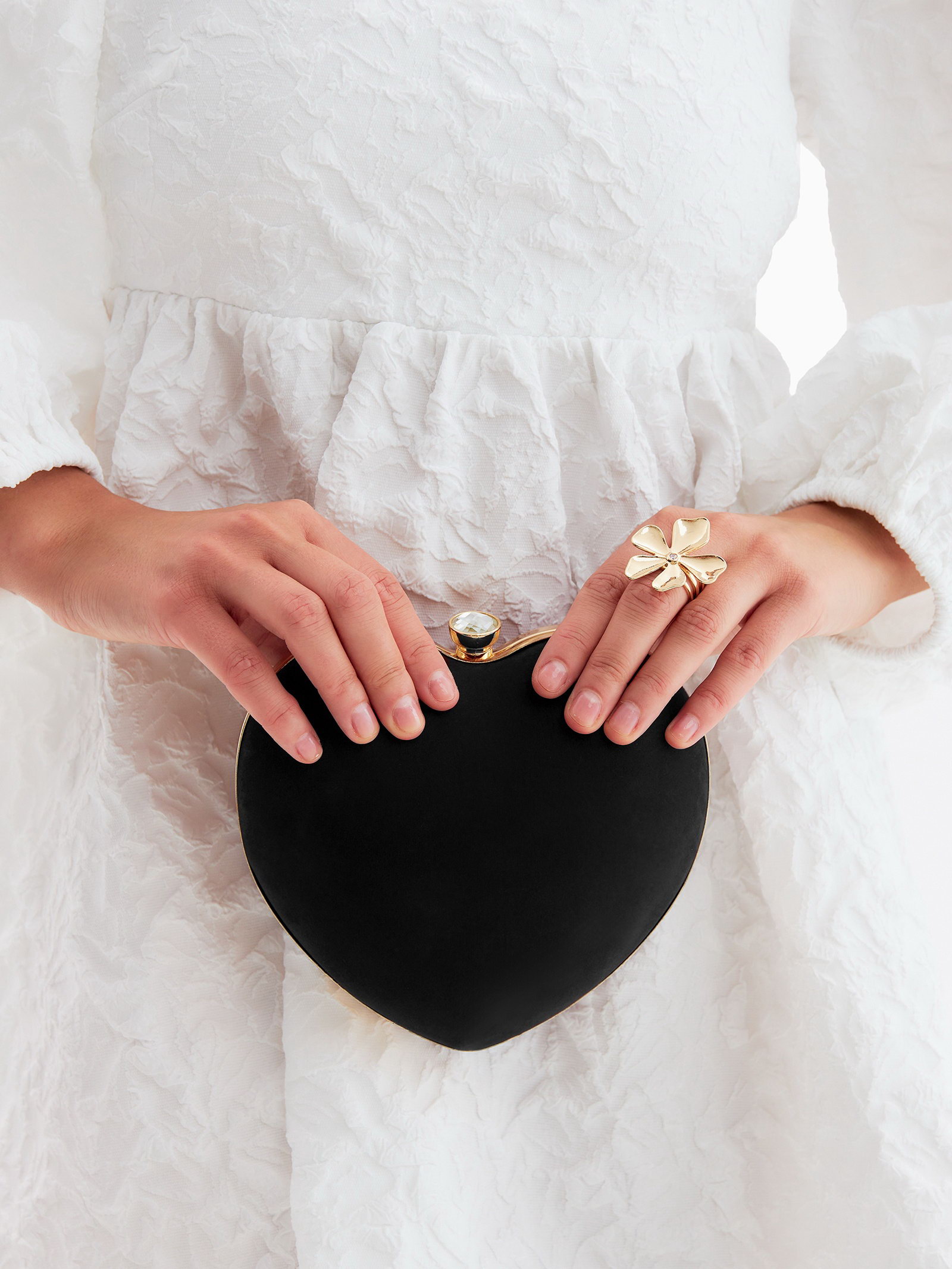 Сумка-клатч женская вечерняя на фермуаре, в форме сердца, жёсткий корпус, чёрная, 9x17x15.5 см., Китай