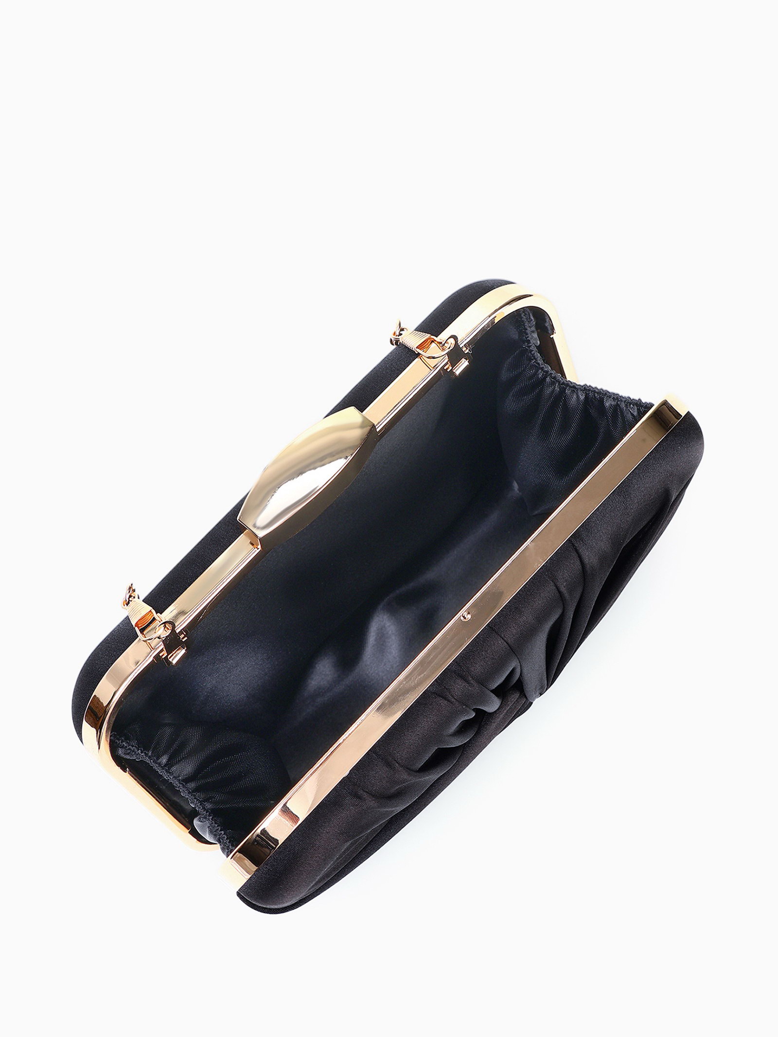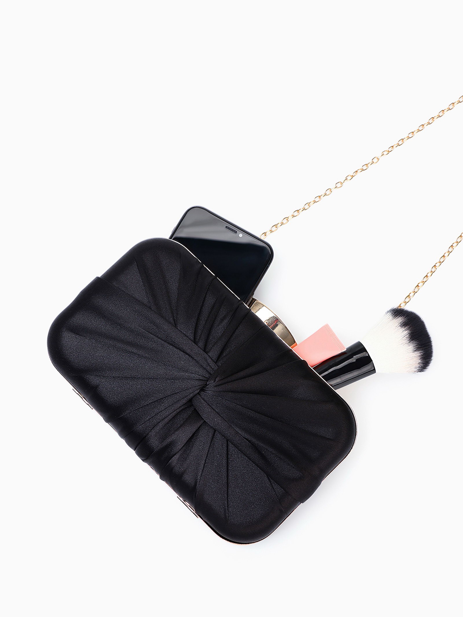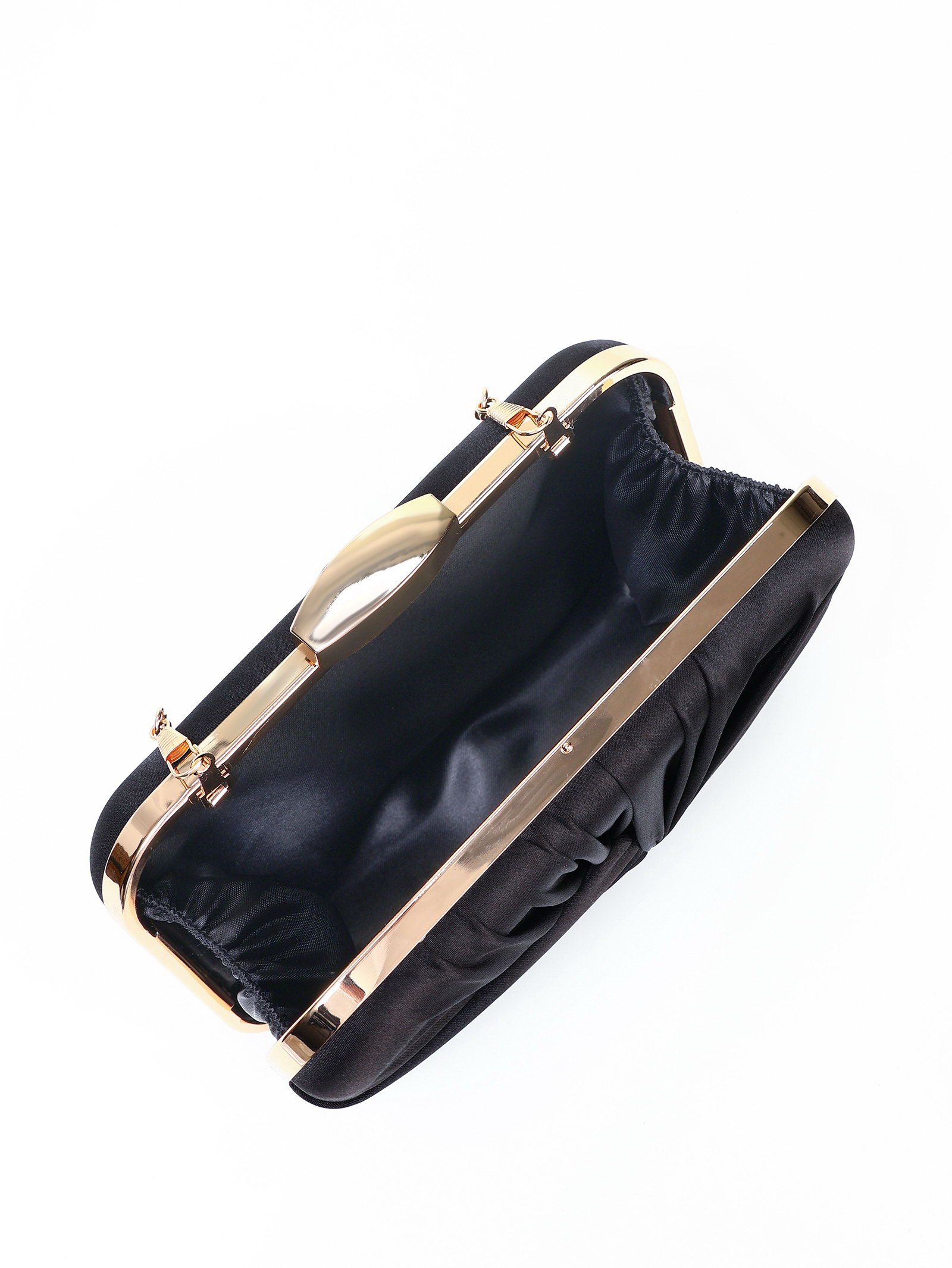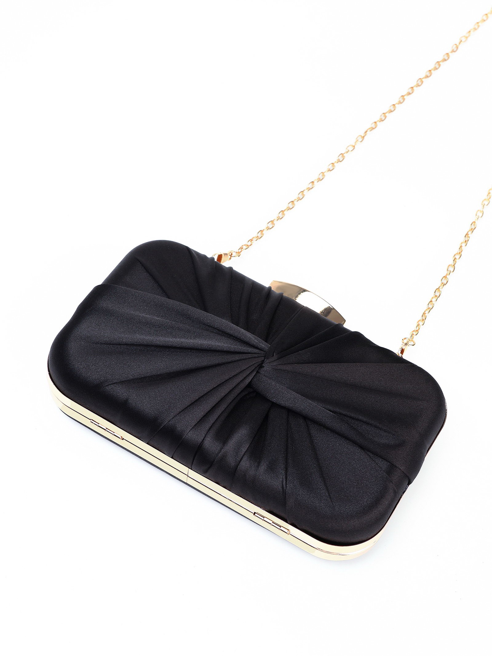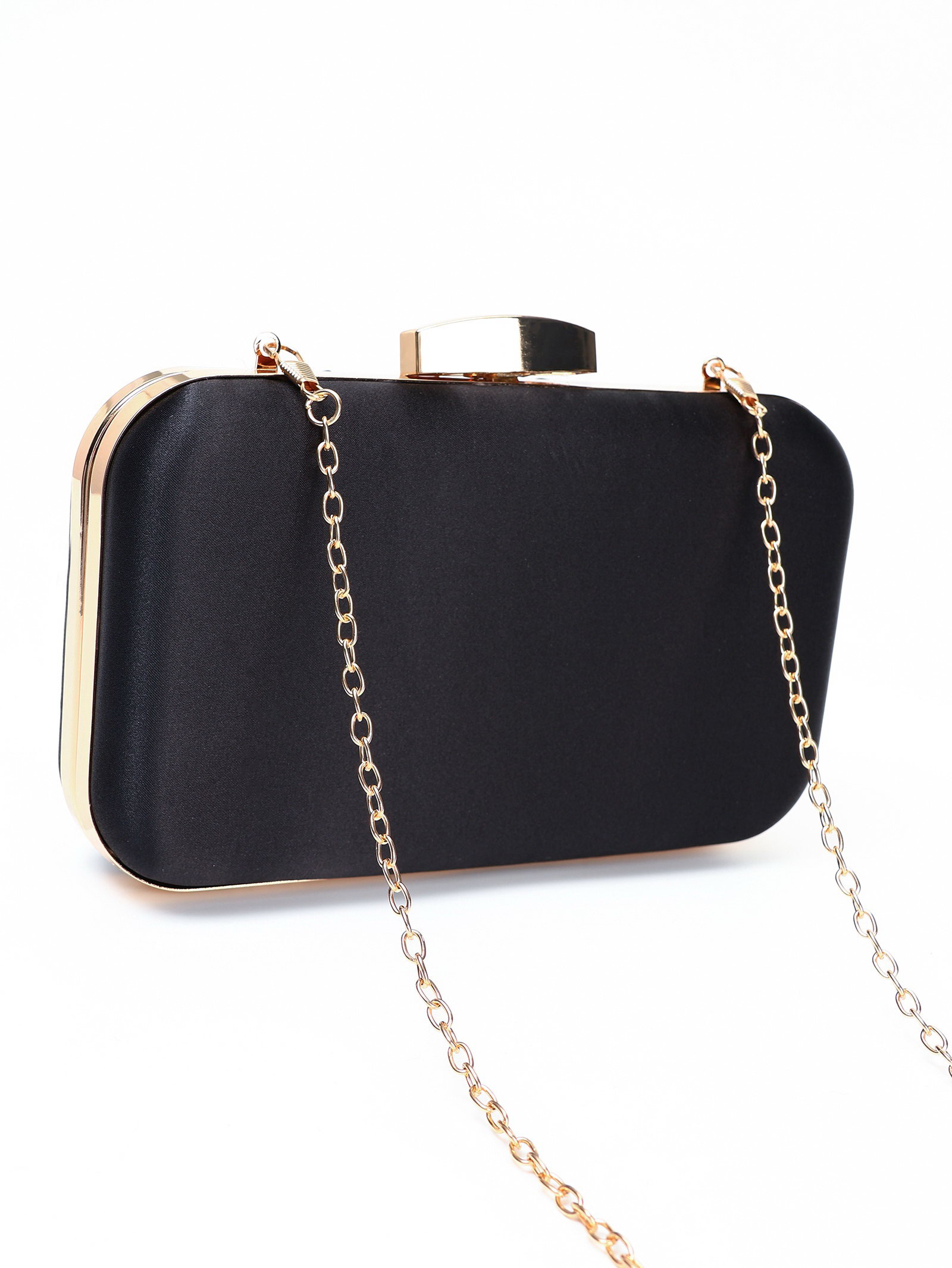 Сумка-клатч женская вечерняя на фермуаре, жёсткий корпус, на золотистой цепочке, чёрная, 6x20x13 см., Китай