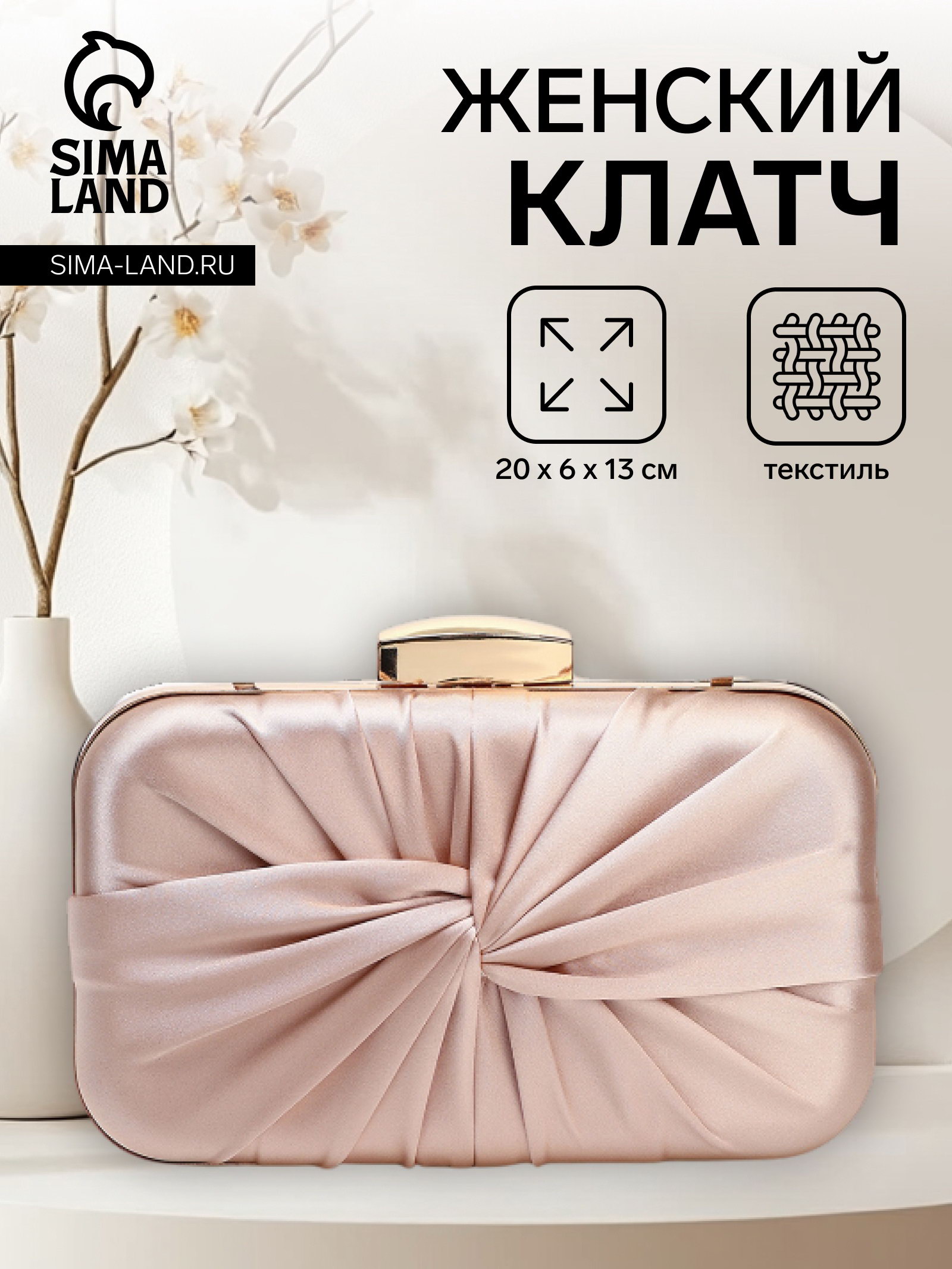 Сумка-клатч женская вечерняя на фермуаре, жёсткий корпус, на золотистой цепочке, бежевая, 6x20x13 см., Китай