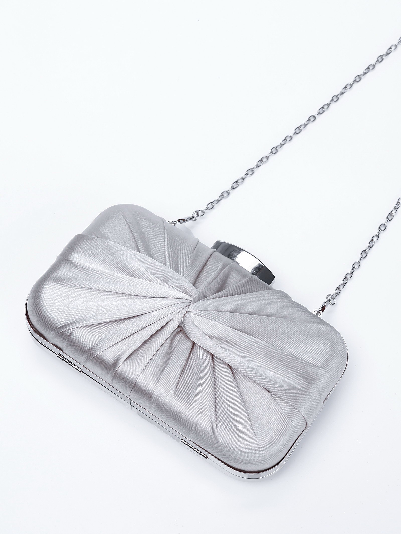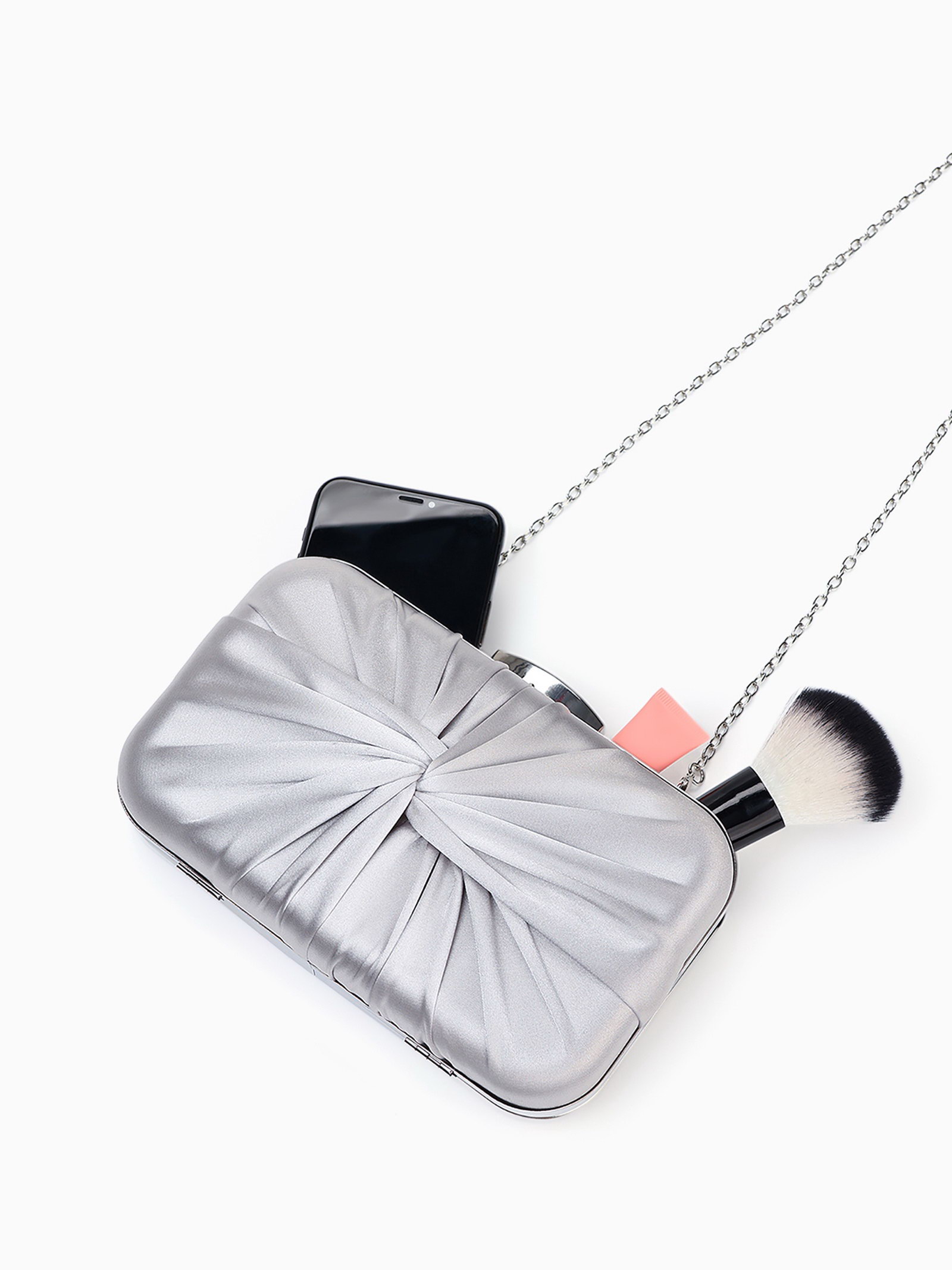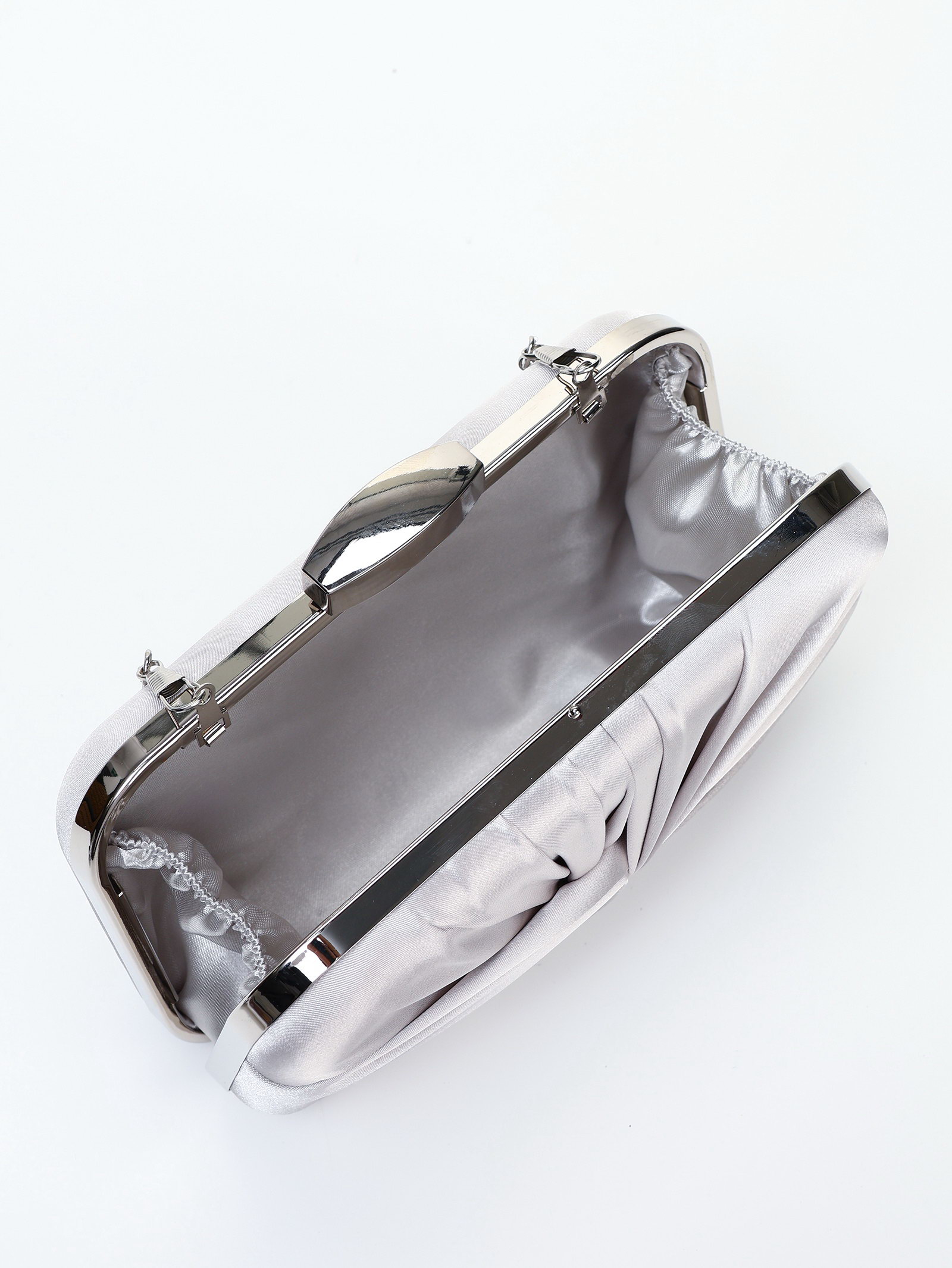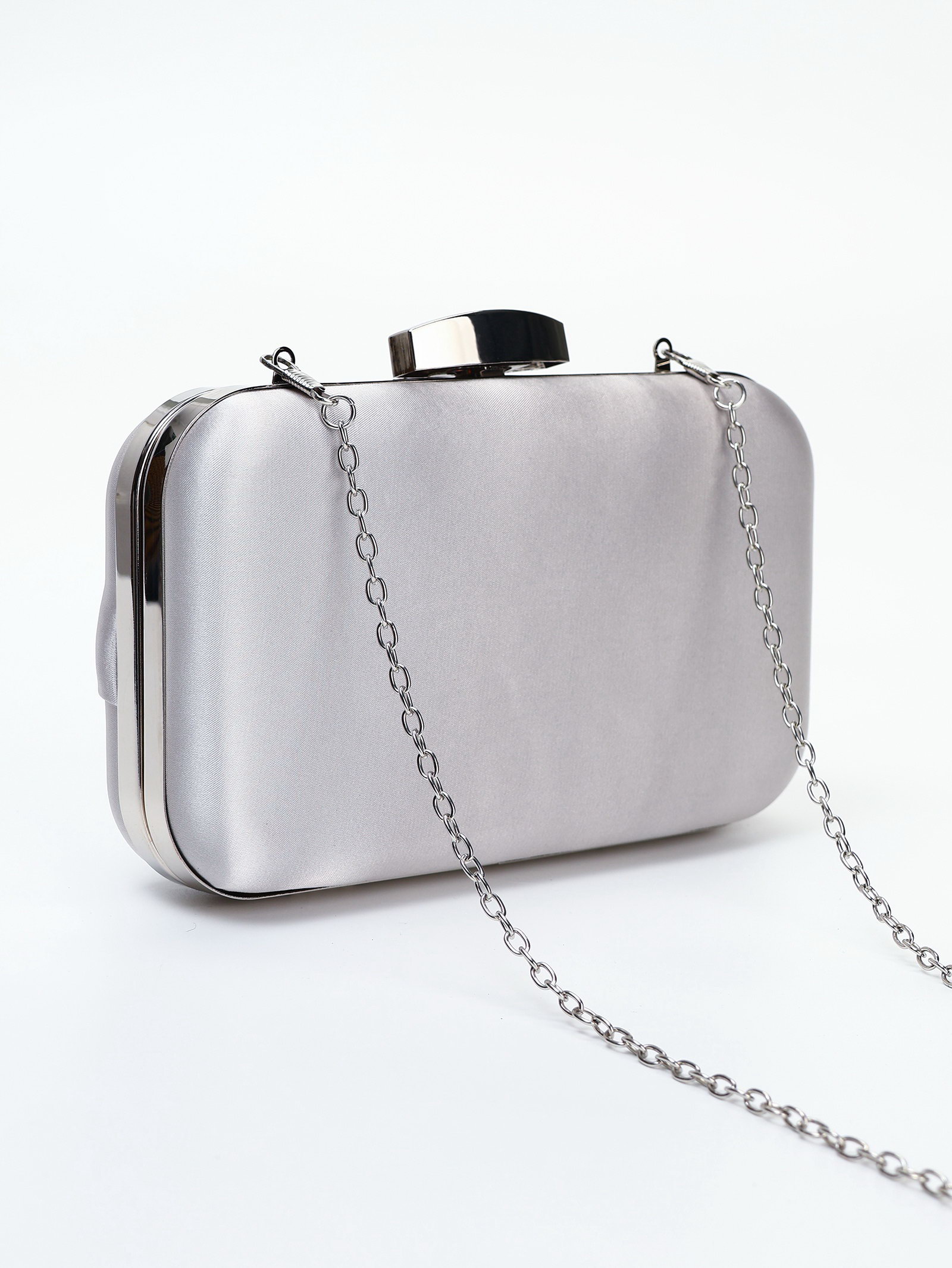 Сумка-клатч женская вечерняя на фермуаре, жёсткий корпус, на серебристой цепочке, серебристая, 6x20x13 см., Китай
