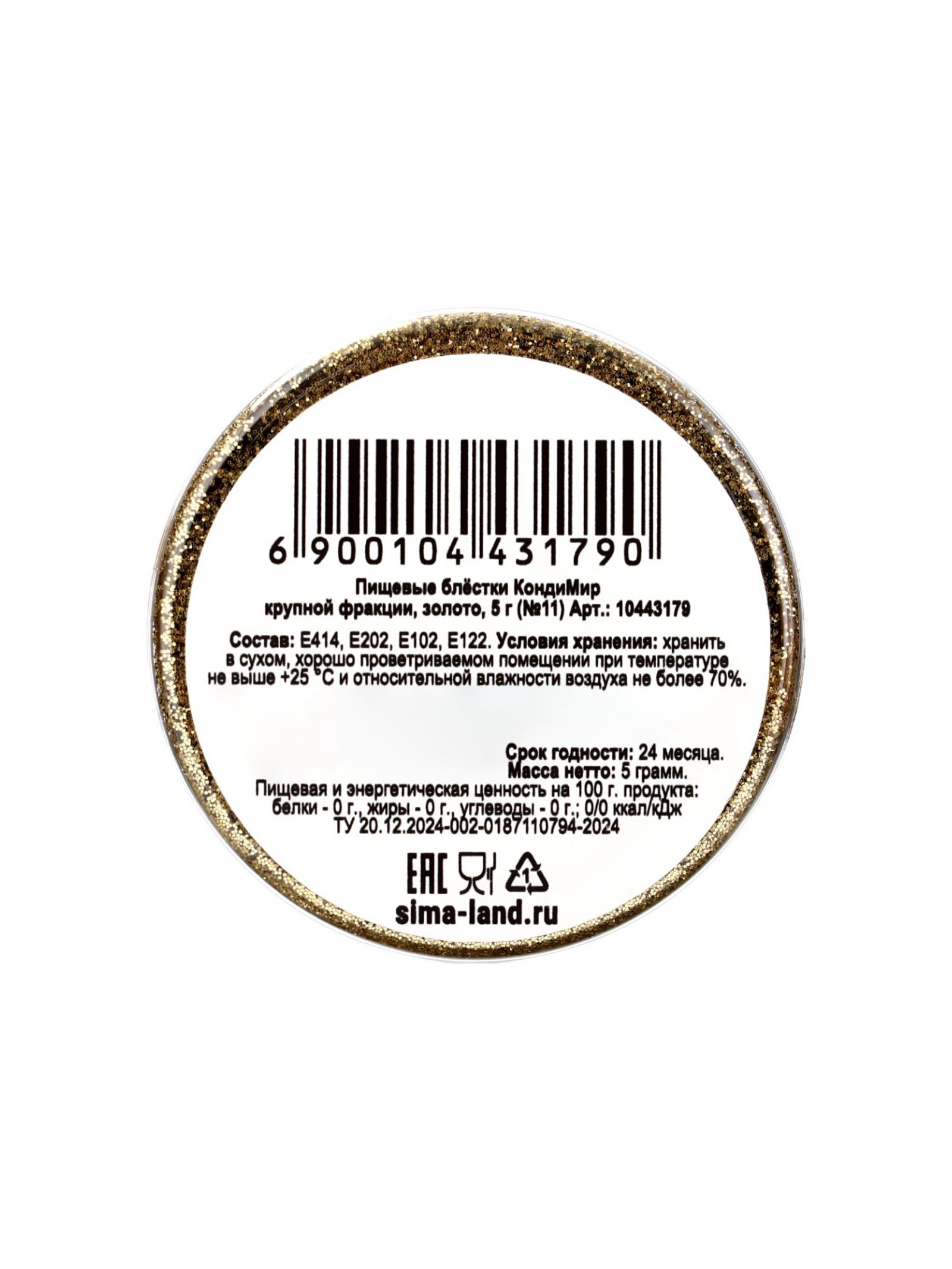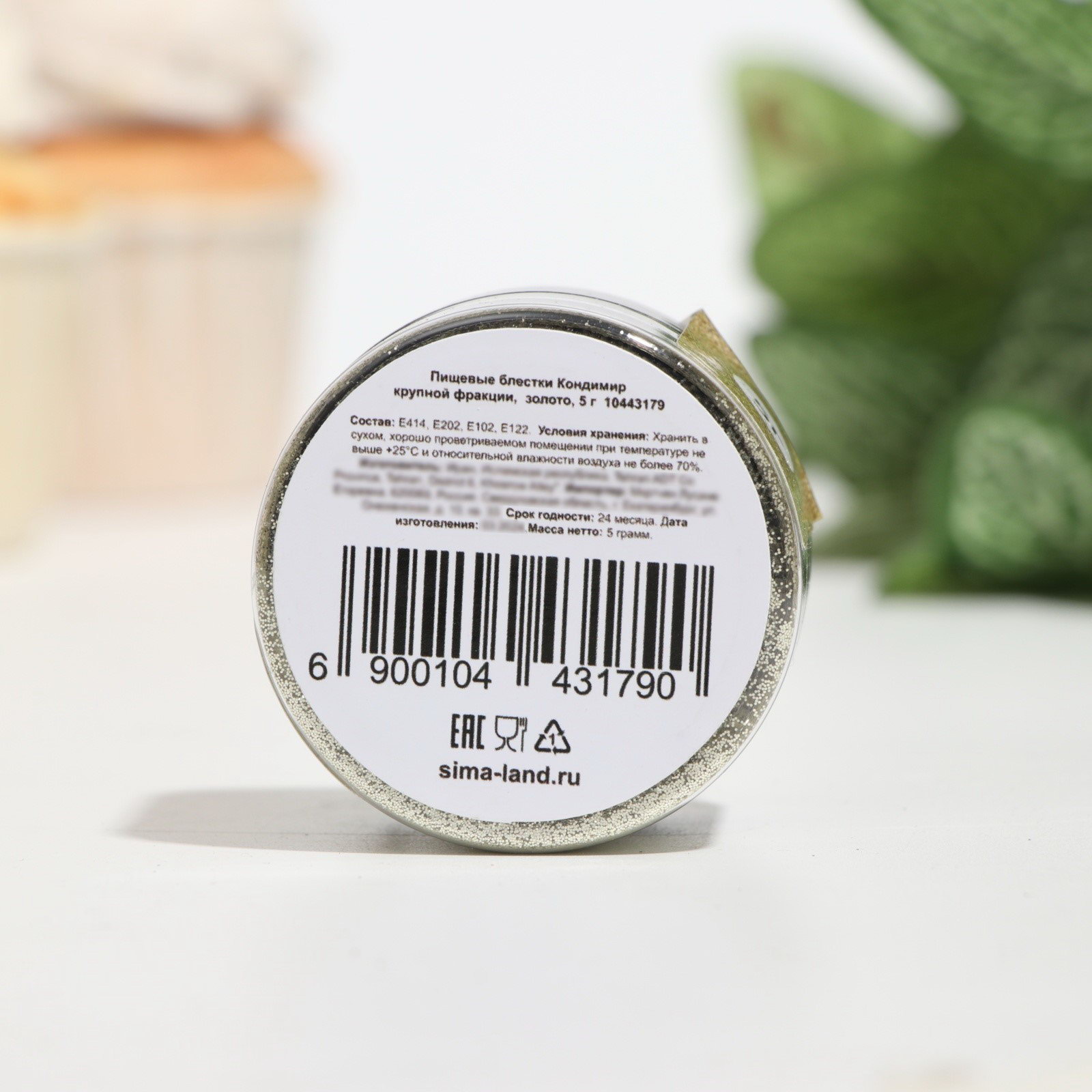 Блёстки пищевые крупной фракции, золото, 5 г, КондиМир, Россия