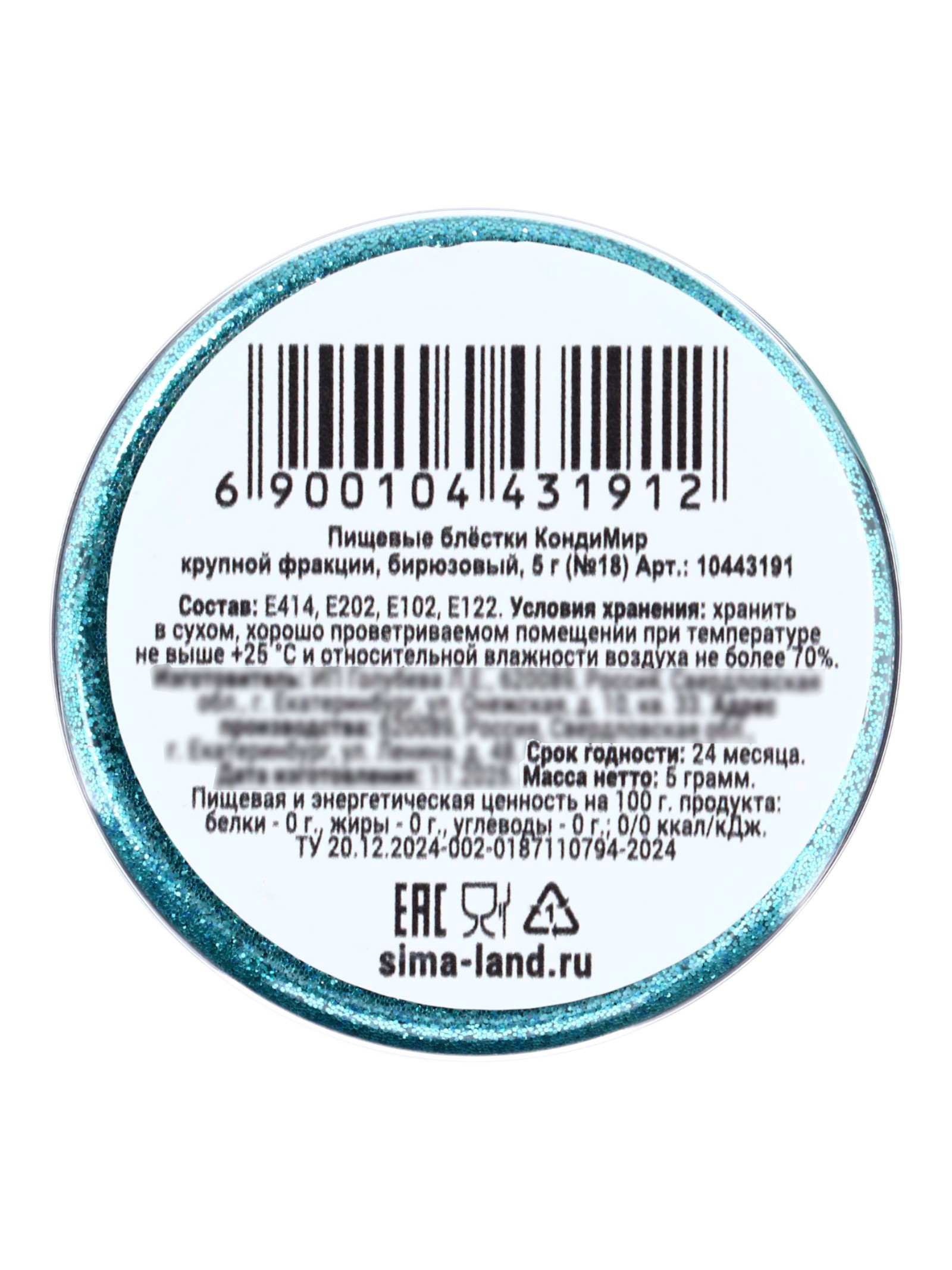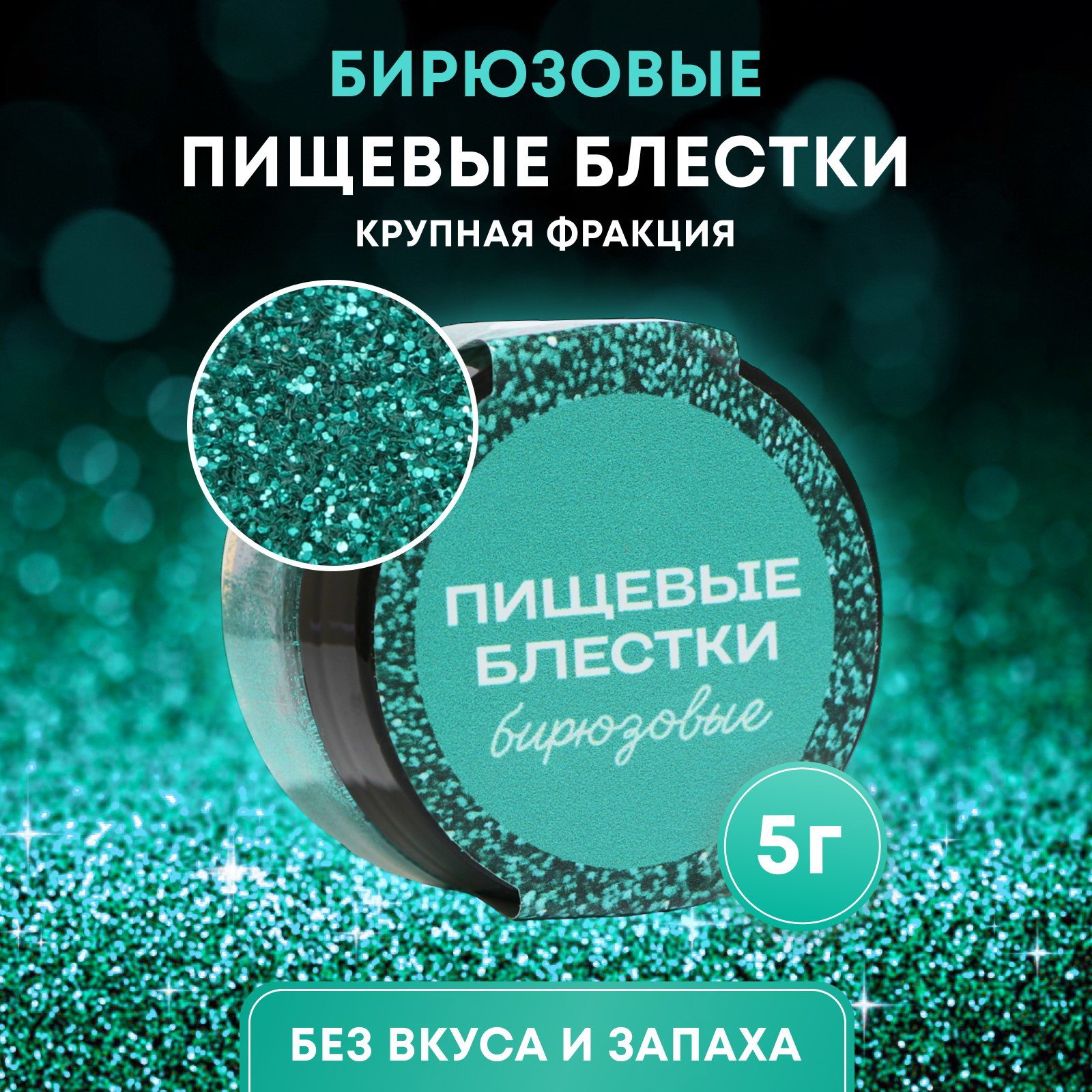 Блёстки пищевые крупной фракции, бирюзовые, 5 г, КондиМир, Россия