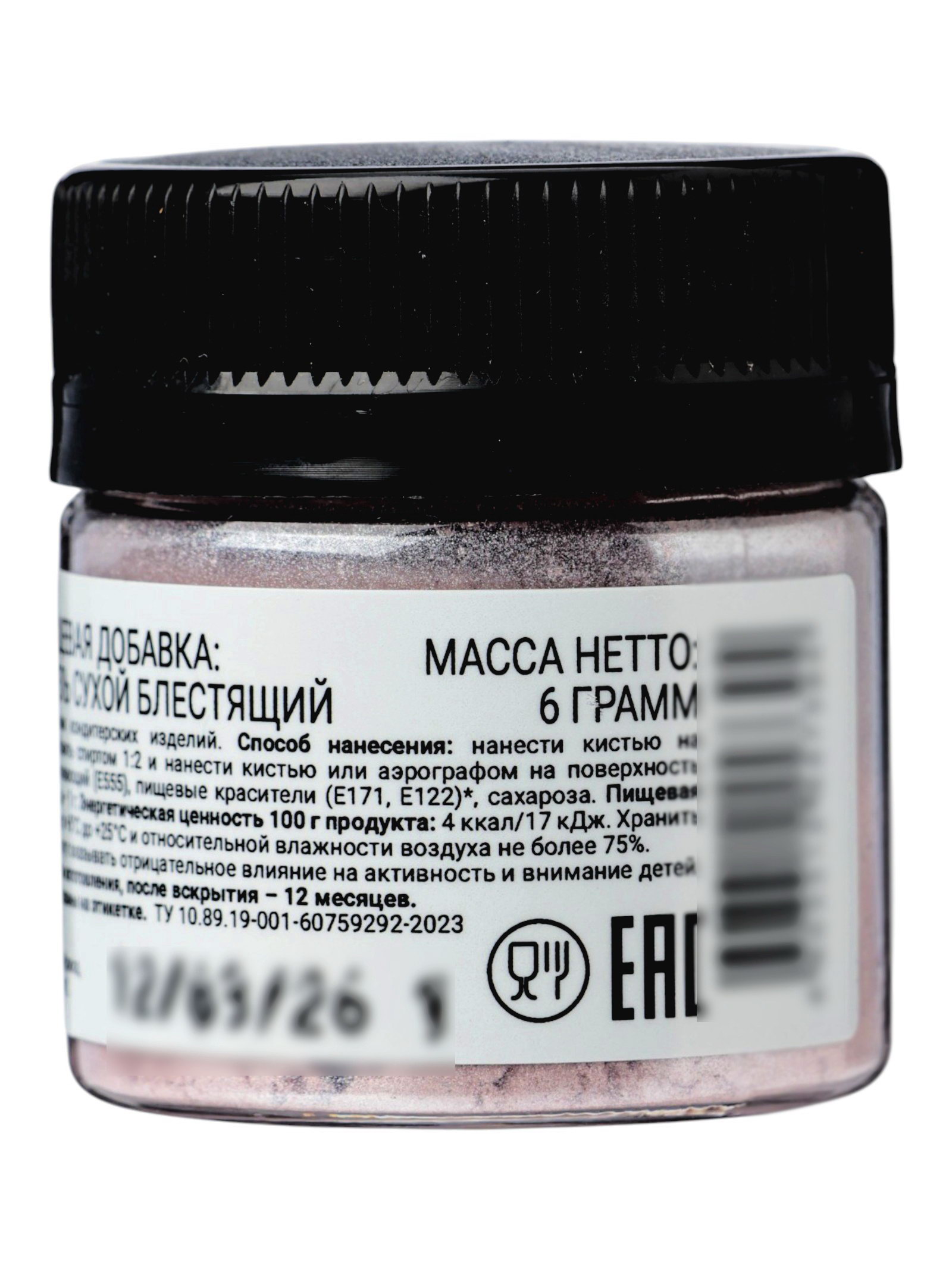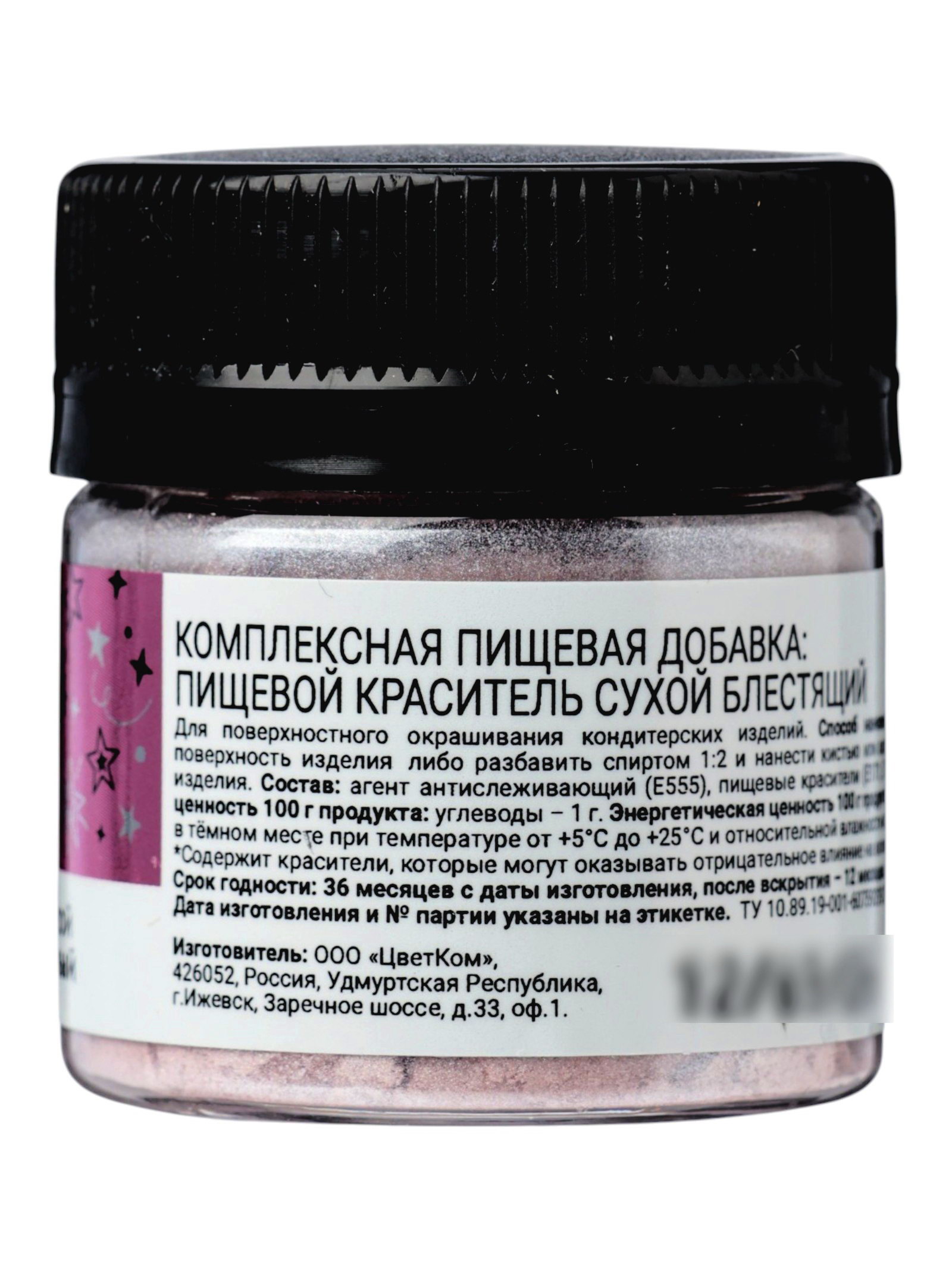 Размер упаковки: 4 x 4.5 x 4 см. tnved: 2106909800 Продукты: Да Температурное ограничение: Нет Цвет: Розовый Вид красителя: Универсальный Форма выпуска: Сухой Набор: Нет Искристый румянец для романтичных десертов Розовый блестящий порошок (6 г) – универсальный сухой пигмент для финишного декора. Придаёт мастике, шоколаду, глазурям и кремам мягкий перламутровый блеск с розовым подтоном без запаха и вкуса.