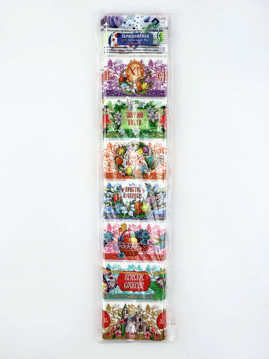 Размер упаковки: 7.5 x 40 x 0.1 см. Тематика праздника: Пасха Вид: Термоплёнка Назначение: Для яиц tnved: 4911990000 tnved: 4911990000 | ||