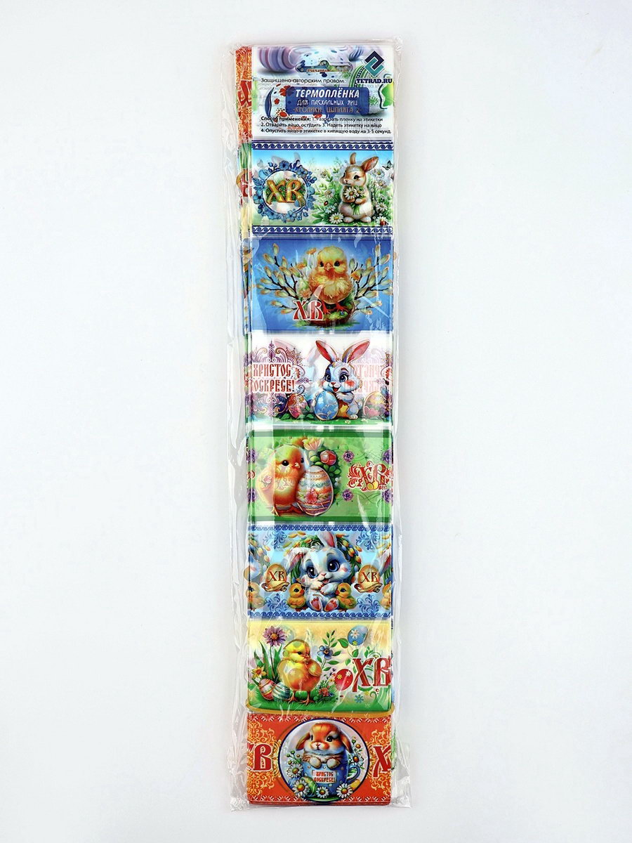 Размер упаковки: 7.5 x 40 x 0.1 см. Тематика праздника: Пасха Назначение: Для яиц Вид: Термоплёнка tnved: 4911990000 tnved: 4911990000 | ||