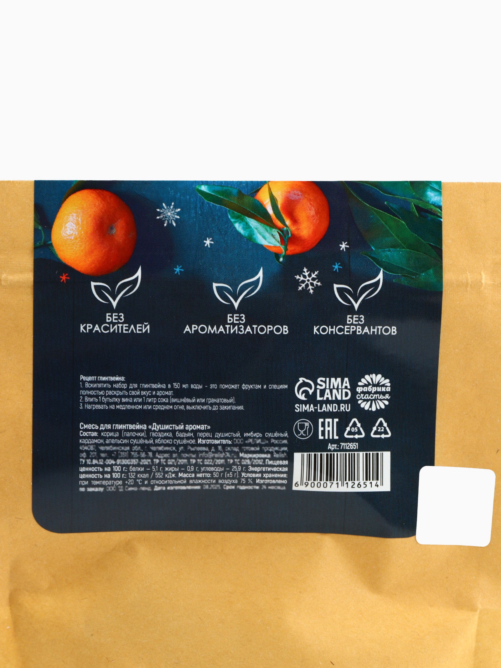 Запрет реализации по сегментам: 00000000266, 00000000593 Для кого: Для женщины, Для мужчины, Унисекс Размер упаковки: 12 x 3.5 x 18 см. Назначение: Для глинтвейна, пунша tnved: 2103909000 Набор: Да Температурное ограничение: Нет Составляющие набора: Специи Тематика праздника: Новый год Символ года: Нет Новогодняя коллекция: Фотоколлаж Тематика подарка: Продукты питания Возраст: Для взрослых Адресат: Без адресата Вид упаковки: Крафтовая упаковка В наборе, шт.: 1 Вкус: Глинтвейн Вес нетто, г: 50 Состав: целые дольки сушеных апельсина и яблока, цедра апельсина и мандарина, палочка корицы, гвоздика, кардамон, бадьян. Срок годности: 12 месяцев Масса нетто: 50 г | ||