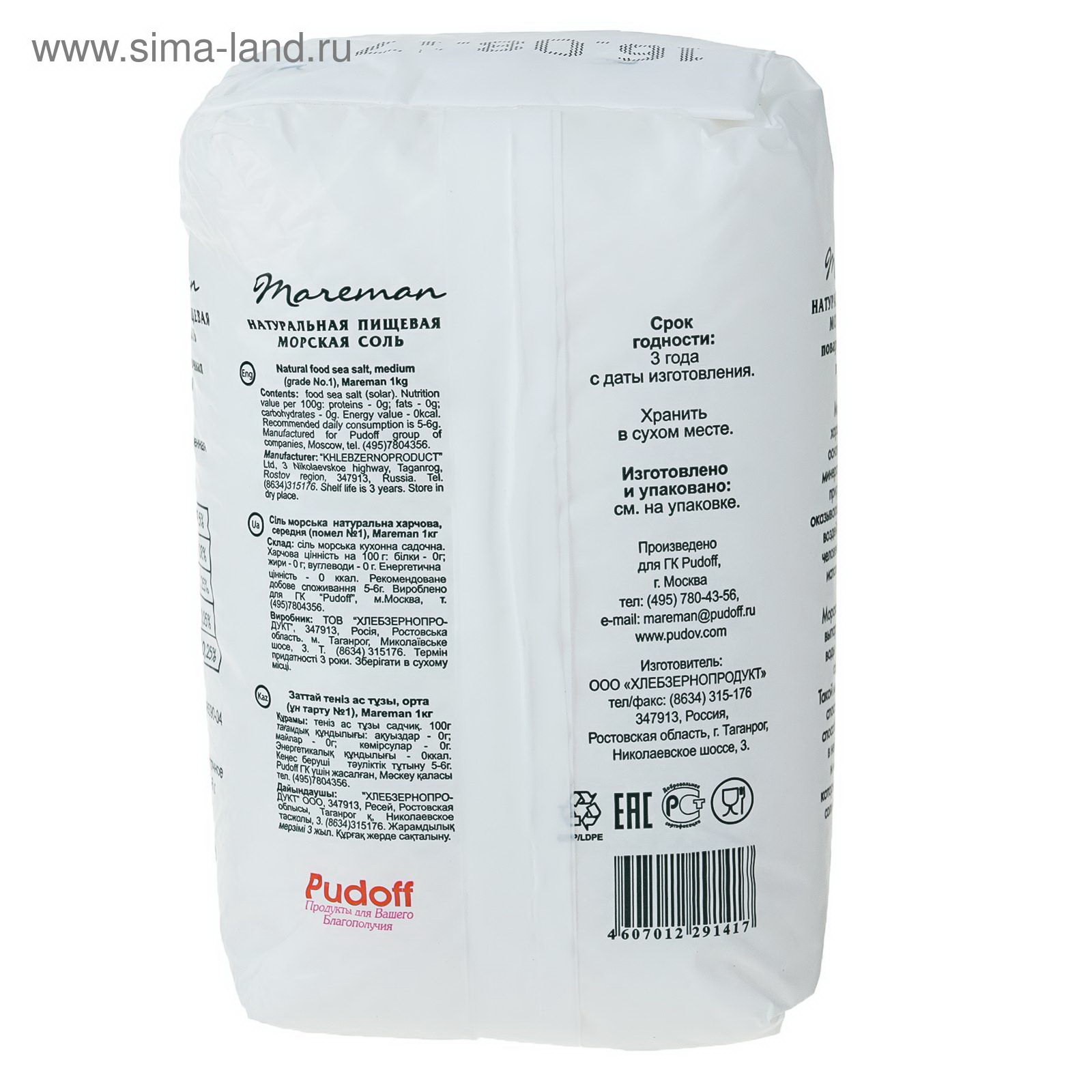 Размер упаковки: 6 x 15 x 8.5 см. Вид: Морская tnved: 3307300000 Срок годности, мес: 36 Продукты: Да Помолка: Средний Цвет: Белый Вес нетто, г: 1000 Вид упаковки: Пакет Для получения морской соли морскую воду направляют в соляные озера, где она испаряется под воздействием солнца, оставляя только кристаллы соли. Соль универсальна в использовании. Она усиливает вкус блюд, является консервантом и используется для производства сыра. | ||