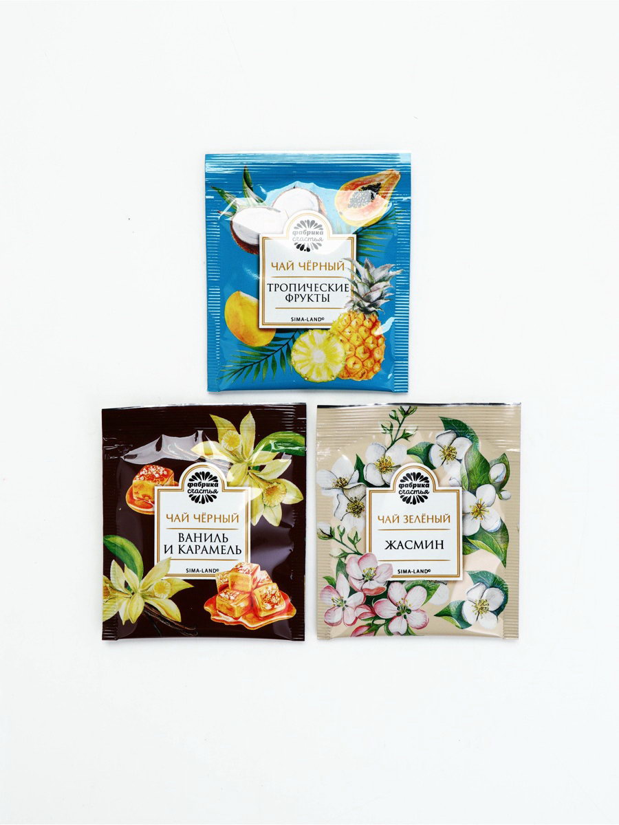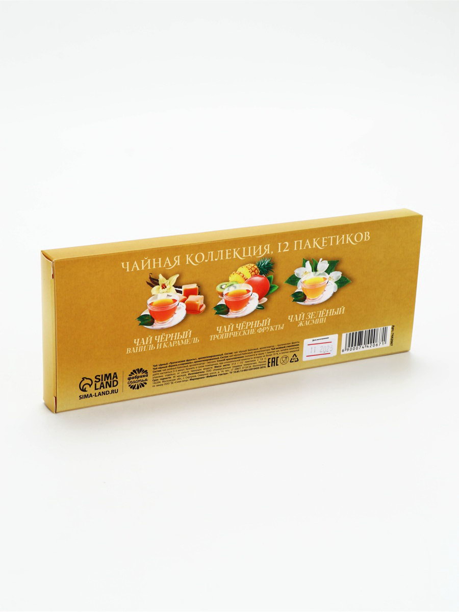 Чай подарочный "Золото" 3 вкуса, 12 пакетиков x 1.8 г, Фабрика счастья, Россия