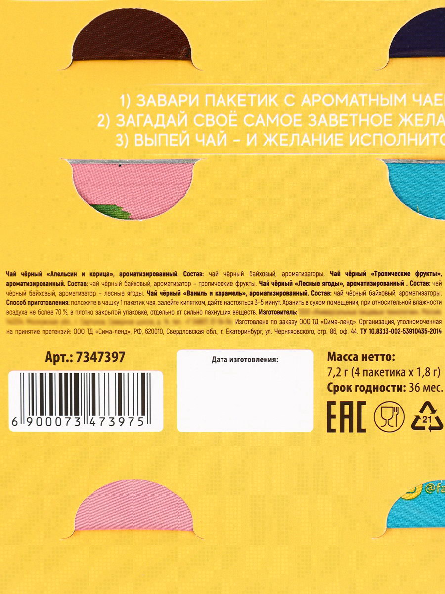 Чай подарочный "На счастье", 4 пакетика x 1.8 гр, Фабрика счастья, Россия