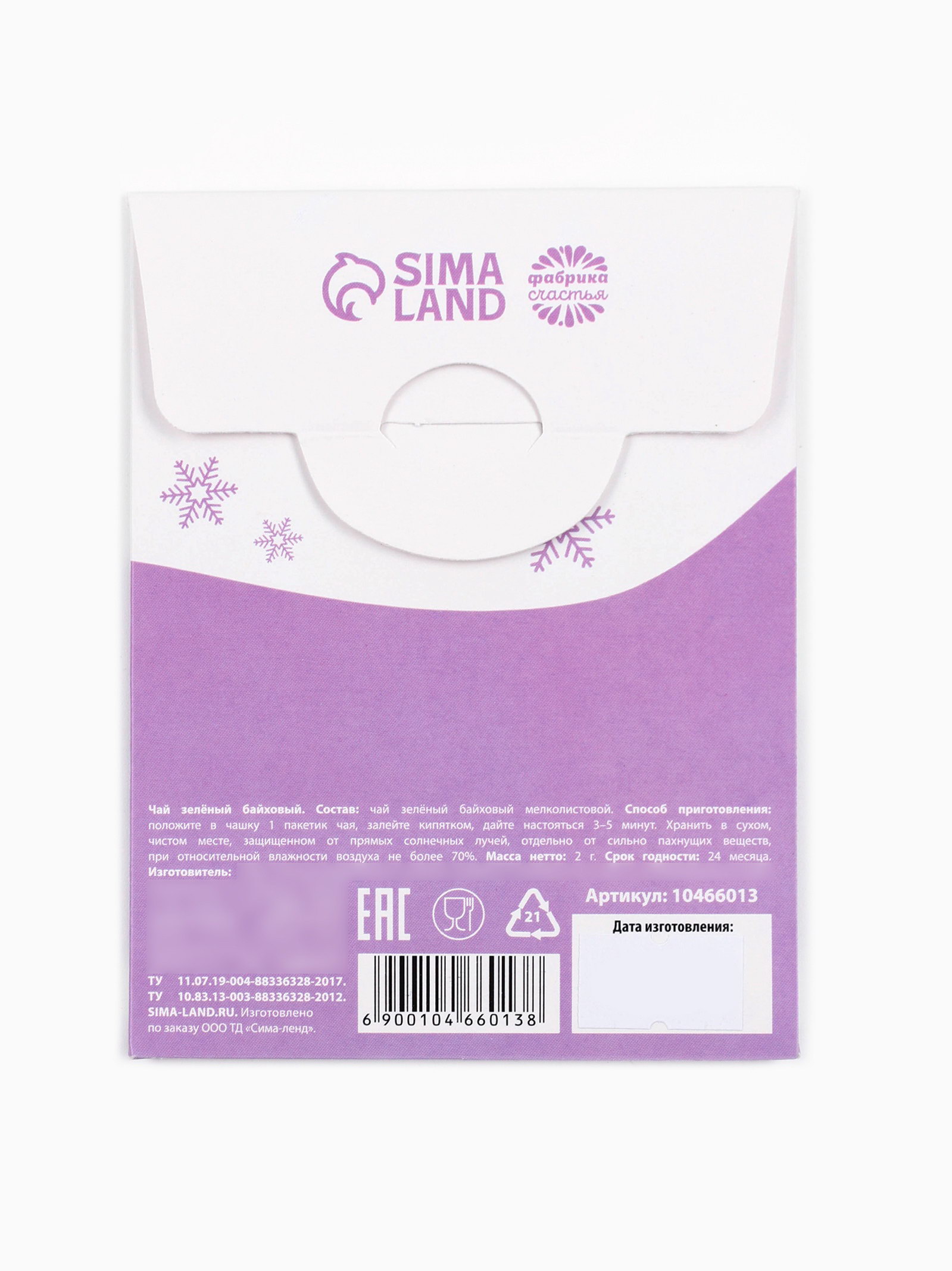 Запрет реализации по сегментам: 00000000266, 00000000593 Размер упаковки: 8.5 x 0.4 x 11 см. Вес нетто, г: 1.8 Вид чая: Зелёный Вид: В индивидуальных конвертах Фасовка: Пакетированный Тематика праздника: Новый год tnved: 902300000 Новогодняя коллекция: Новый год Набор: Нет Подарочный чай: Да Добавки чая: Без добавок Символ года: Нет ПРИ ОФОРМЛЕНИИ ЗАКАЗА, ПРОСИМ ЗАПРАШИВАТЬ АКТУАЛЬНЫЕ СРОКИ ГОДНОСТИ У МЕНЕДЖЕРА Чай зелёный байховый Состав: чай зелёный байховый мелколистовой. Способ приготовления: положите в чашку 1 пакетик чая, залейте кипятком, дайте настояться 3–5 минут. Хранить в сухом помещении, при относительной влажности воздуха не более 70 %, в плотно закрытой упаковке, отдельно от сильно пахнущих веществ. Масса нетто: 2 гр Срок годности: 24 месяцев. | ||