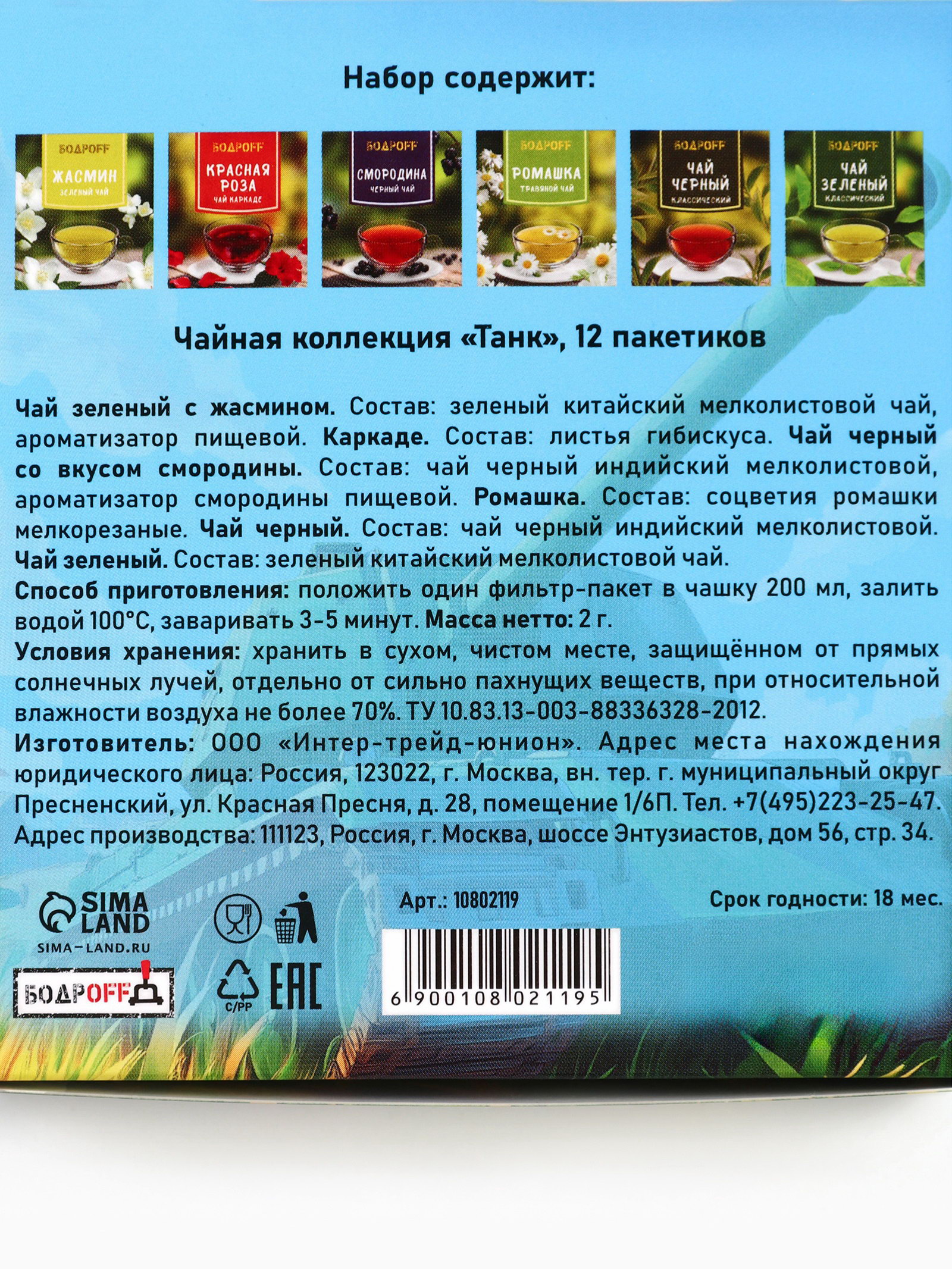 Адресат: Брату, Военному, Дедушке, Мужу/Жениху, Папе Возраст: Для взрослых, Для детей Для кого: Для мальчика, Для мужчины Добавки чая: Ассорти, Жасмин, Каркаде, Ромашка, Смородина Размер упаковки: 11.5 x 3.5 x 11.5 см. В наборе, шт.: 12 Вес нетто, г: 24 Вид чая: Ассорти Фасовка: Пакетированный Вид упаковки: Коробка картонная Тематика праздника: 23 Февраля Составляющие набора: Чай Тематика подарка: Продукты питания Вид: В индивидуальных конвертах tnved: 1806310000 tnved: 1806310000 Запрет реализации по сегментам: 00000000266 Набор: Да Подарочный чай: Да Чайная коллекция "Танк" это мощный и насыщенный набор, созданный для тех, кто ценит крепкие и выразительные вкусы. В упаковке содержится 12 пакетиков чая, каждый из которых предлагает уникальное сочетание ароматов, способных подарить вам заряд энергии и уверенности. Каждый пакетик наполнен качественными чайными листьями и натуральными добавками, которые создают гармоничные и сбалансированные вкусовые сочетания, идеально подходящие для активного дня или вечернего отдыха. Чай "Танк" станет отличным спутником для утреннего пробуждения или во время перерыва на работе. Удобная упаковка делает его замечательным подарком для друзей, коллег и близких, а также отличным дополнением к любому событию. Заварите пакетик в горячей воде и насладитесь богатым вкусом и ароматом, который окутывает вас теплом и энергией. Эта коллекция не только порадует вас, но и станет символом силы и стойкости, которые вы можете разделить с теми, кто вам дорог. Подарите себе и своим любимым моменты вдохновения и уверенности с чайной коллекцией "Танк" и наслаждайтесь каждым глотком, погружаясь в атмосферу динамики и гармонии. | ||