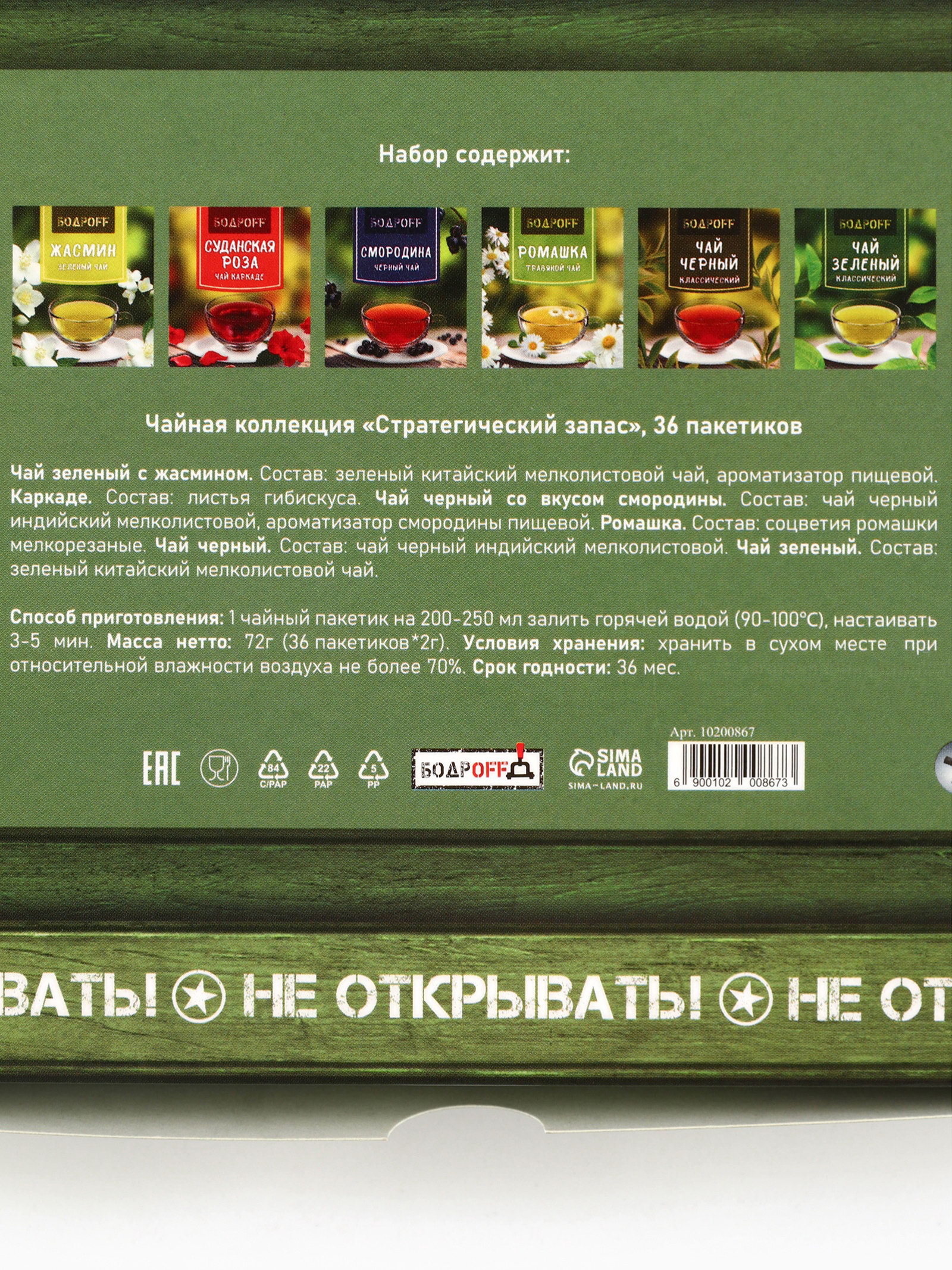 Чай подарочный "Стратегический запас", 36 пакетиков, БодрOFF, Россия
