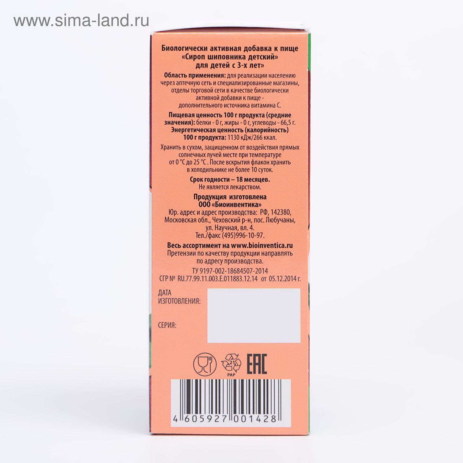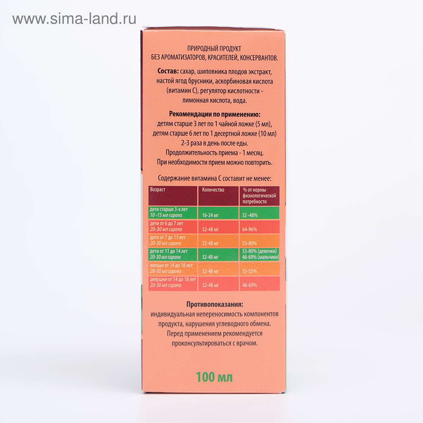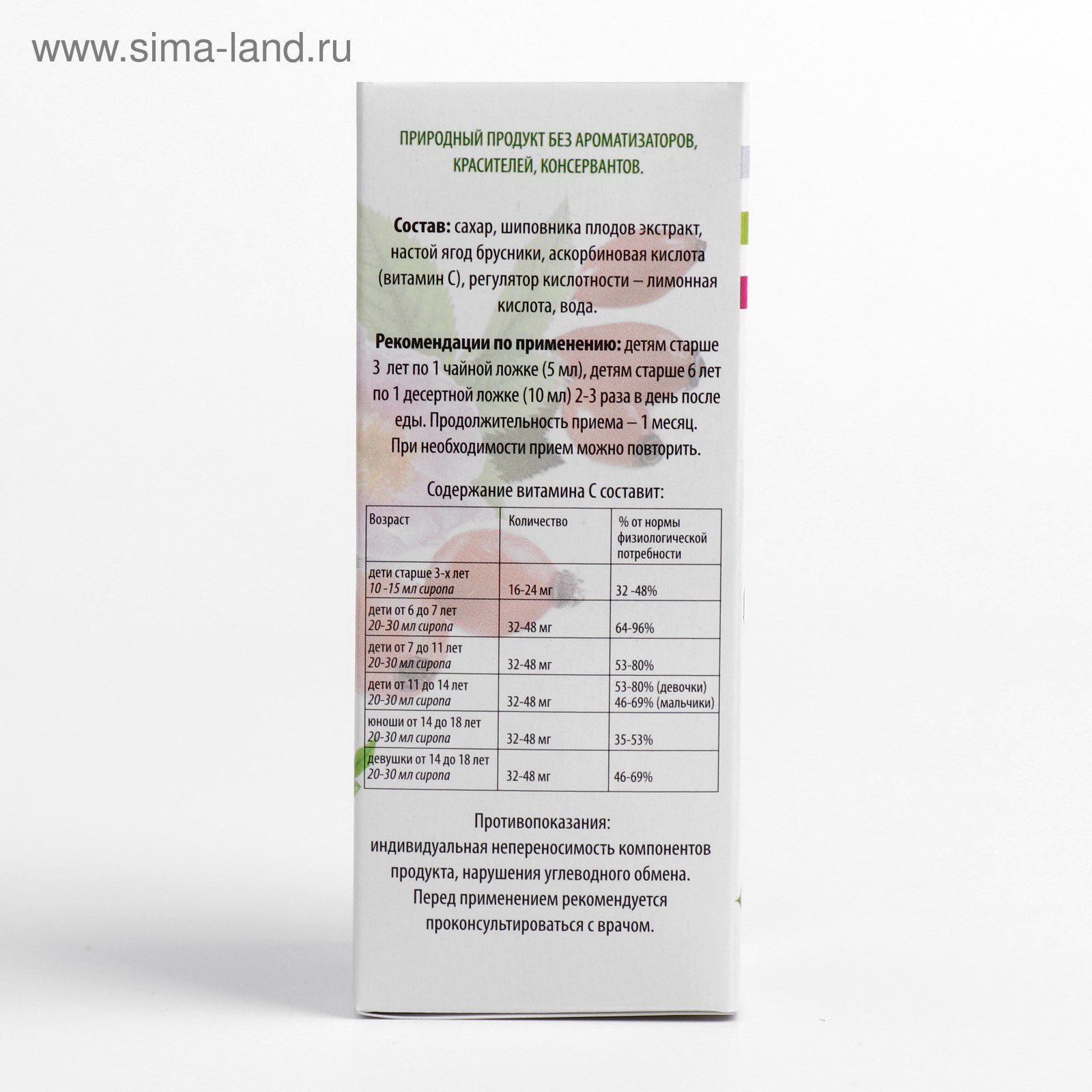 Размер упаковки: 5 x 5 x 11.5 см. Честный знак: Честный знак Действие: Общеукрепляющее Показания: Укрепление иммунитета Компоненты: Шиповник Группа витаминов: Витамины C Действующие вещества: Аскорбиновая кислота tnved: 2106909800 tnved: 2106909800 Для кого: Для детей Температурное ограничение: Нет Назначение: Для детей Необходимое количество флаконов на курс: 9 Форма выпуска: Сироп Вкус: Шиповник Срок годности, мес: 18 Вес, г/Объём, мл: 100 Вид: Сироп Набор: Нет Набор: Нет Продукт насыщен высоким содержанием высоковитаминных плодов шиповника, усилен ягодами брусники, которая содержит большое количество органических кислот, витаминов и микроэлементов. Способствует повышению защитных сил организма. Оказывает общеукрепляющее действие. Эффективен при профилактике ОРВИ, гриппа и простуд. Обладает приятным вкусом и цветом. Состав: сахар, шиповника плодов экстракт, настой ягод брусники, аскорбиновая кислота (витамин С), регулятор кислотности - лимонная кислота, вода. Полное отсутствие красителей, консервантов, ароматизаторов, имеет природный аромат и вкус. Показания к применению: рекомендован в качестве дополнительного источника витамина С. Рекомендации по применению: детям старше 3 лет по 1 чайной ложке (5 мл), детям старше 6 лет по 1 десертной ложке (10 мл) 2-3 раза в день после еды. Продолжительность приема – 1 месяц. Противопоказания: индивидуальная непереносимость компонентов продукта, нарушение углеводного обмена. Перед применением рекомендуется проконсультироваться с врачом. Срок годности – 1,5 года. Хранить в сухом, защищенном от воздействия прямых солнечных лучей месте при температуре от 0?С до 25?С После вскрытия хранить в холодильнике не более 10 суток. | ||