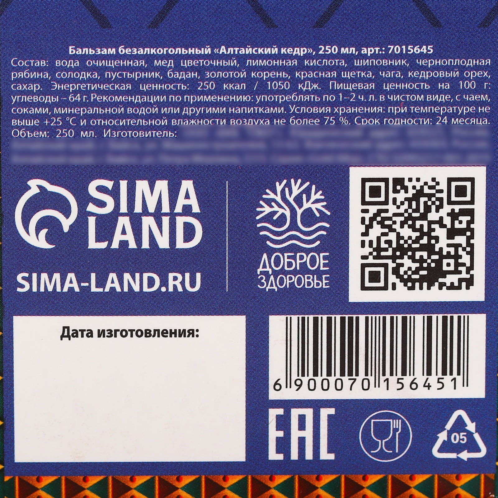 Бальзам безалкогольный на алтайском кедре "С Новым годом", 250 мл, 250 мл., Доброе здоровье, Россия