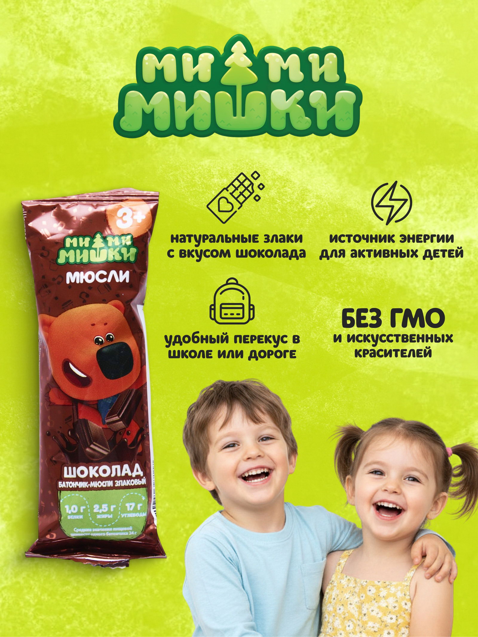 Батончик-мюсли злаковый Ми-Ми-Мишки шоколад, 24 г, МИ-МИ-МИШКИ, Россия