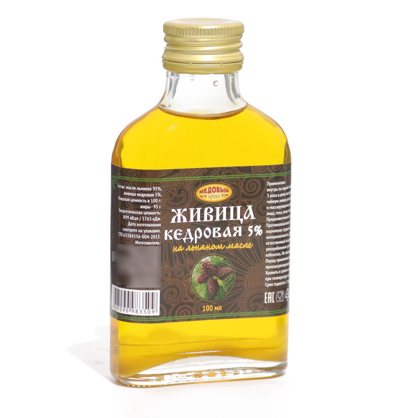Живица кедровая на льняном масле 5%, 100 мл, 100 мл., Медовый край, Россия