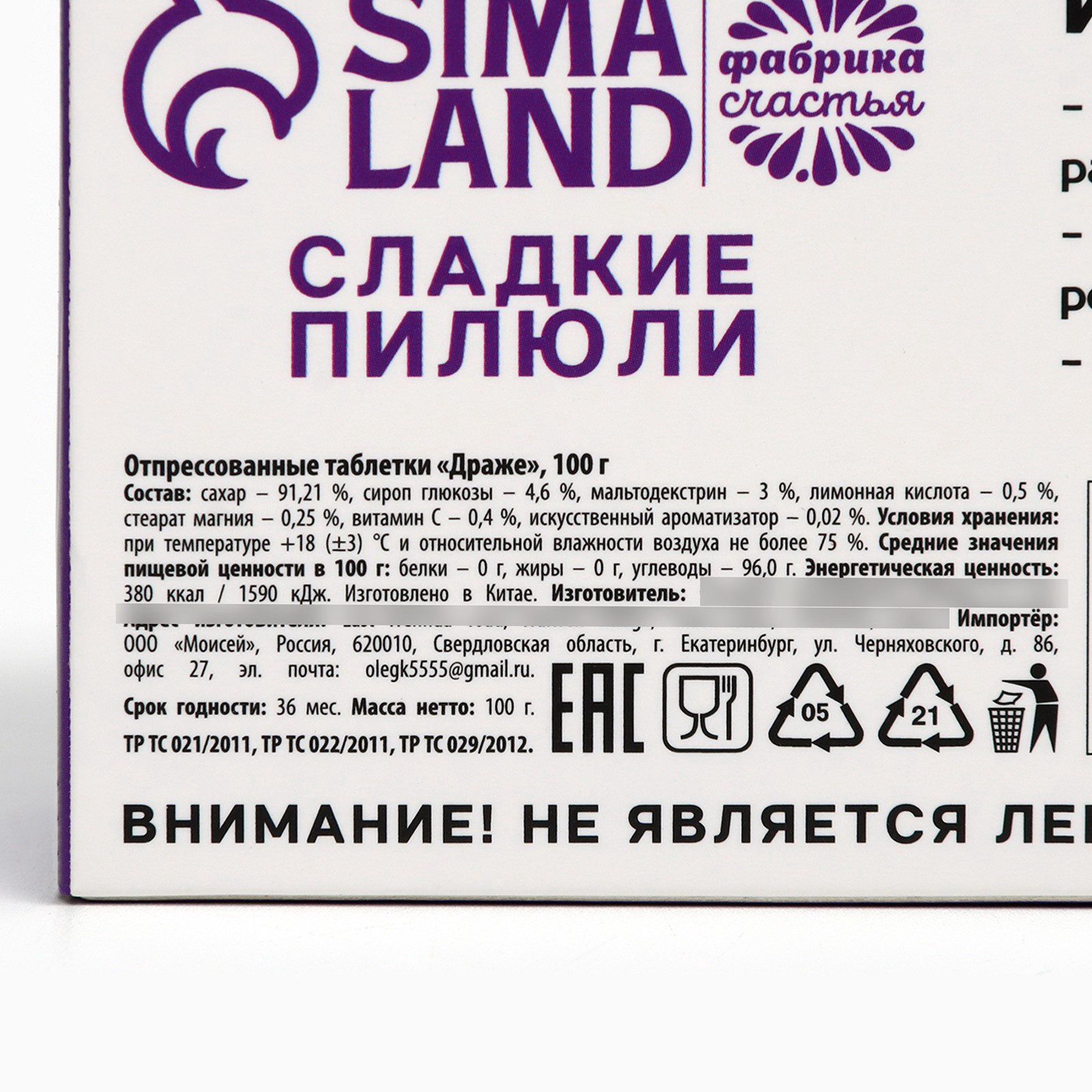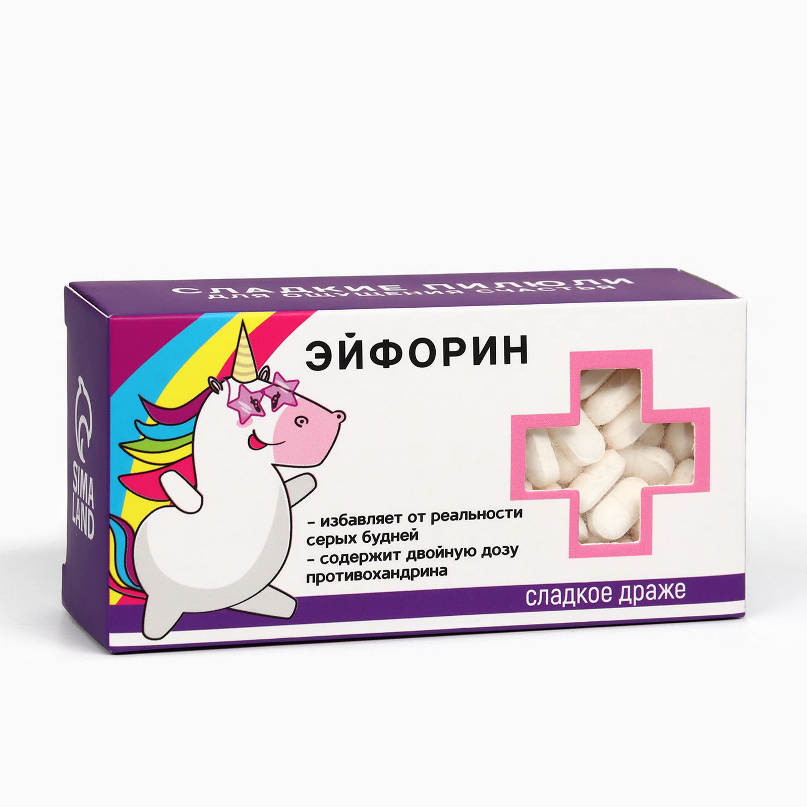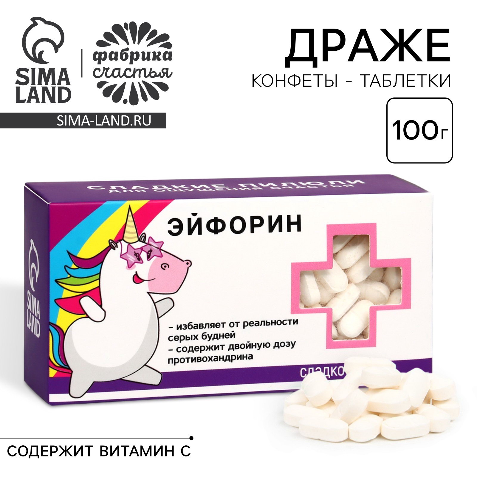 Конфеты драже - таблетки "Эйфорин": 100 гр, 7x13x2 см., Фабрика счастья, Китай
