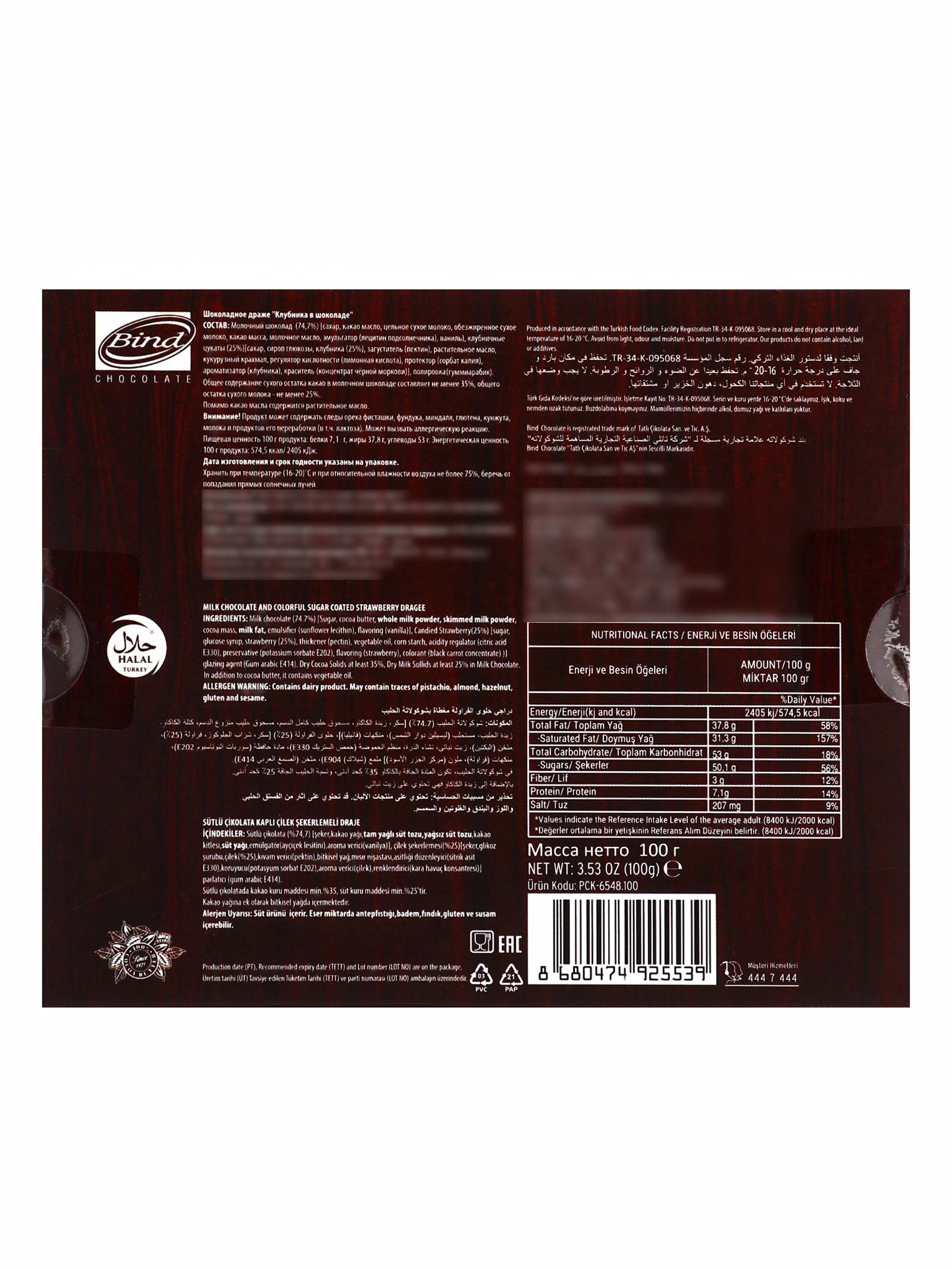 Шоколадное драже "Клубника в шоколаде", 100 г, Bind Chocolate, Турция