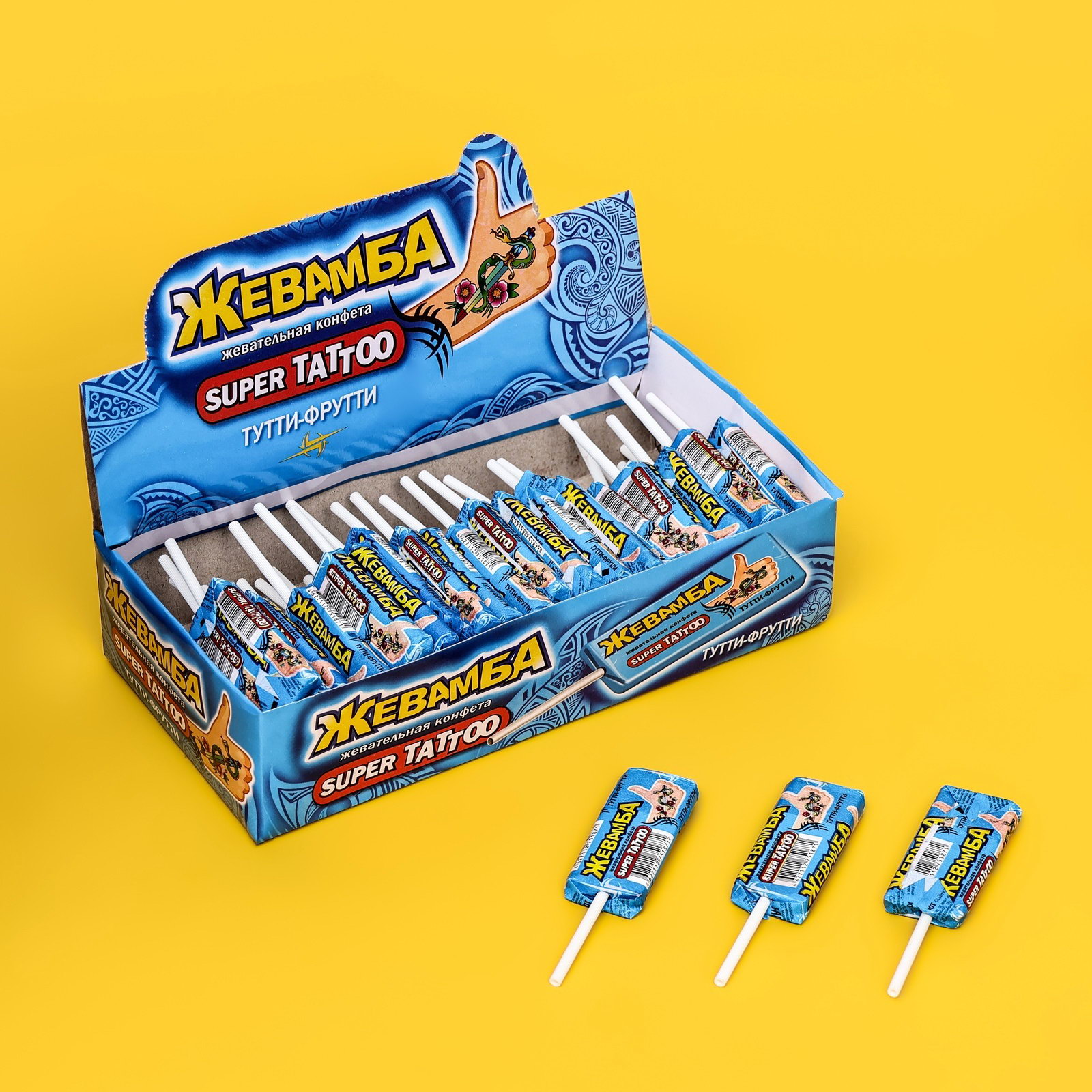 Конфета жевательная "Жевамба" Super tattoo тутти-фрутти, 10 г, Канди клаб, Пакистан
