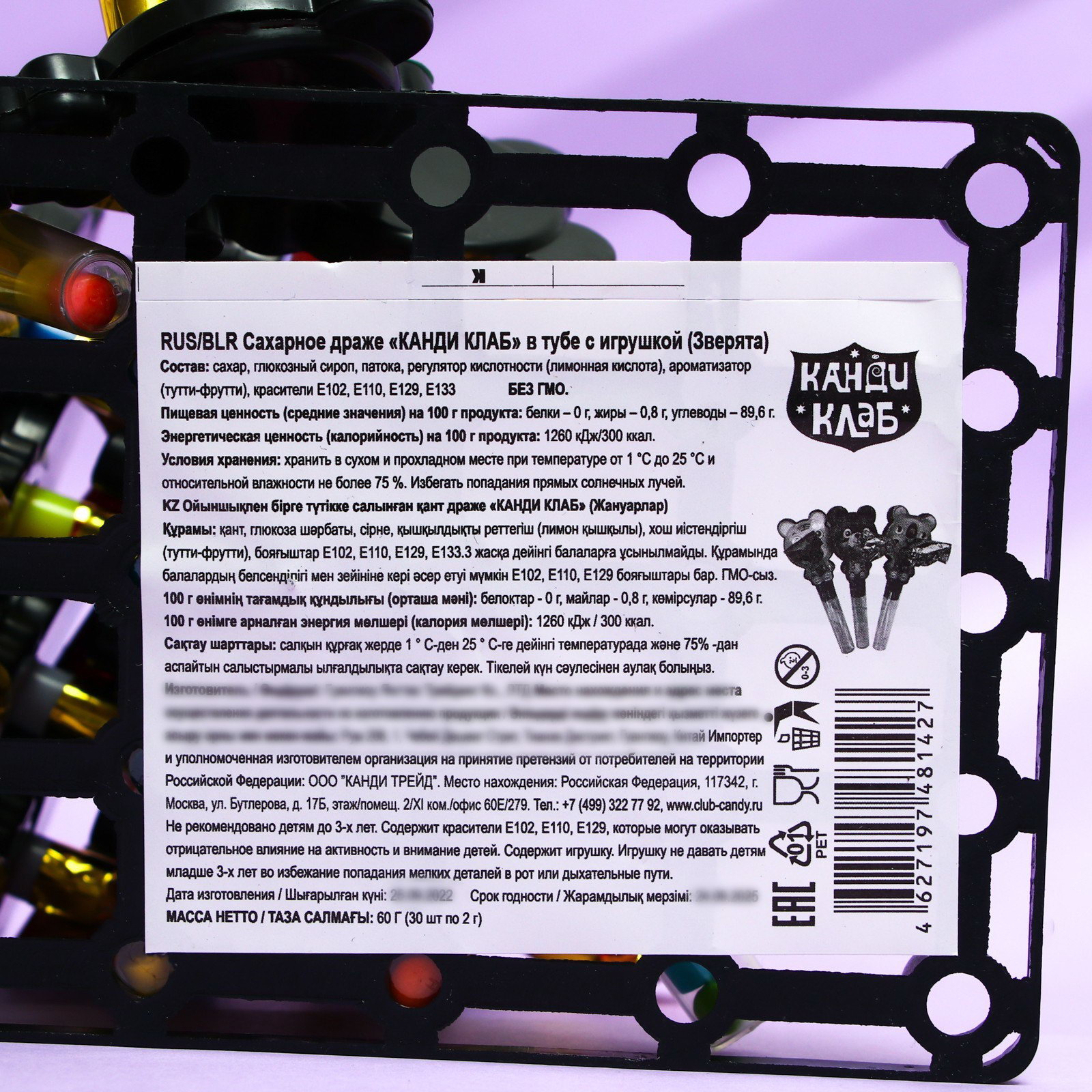 Драже сахарное "Зверята" в тубе с игрушкой, 2 г, Канди клаб, Китай