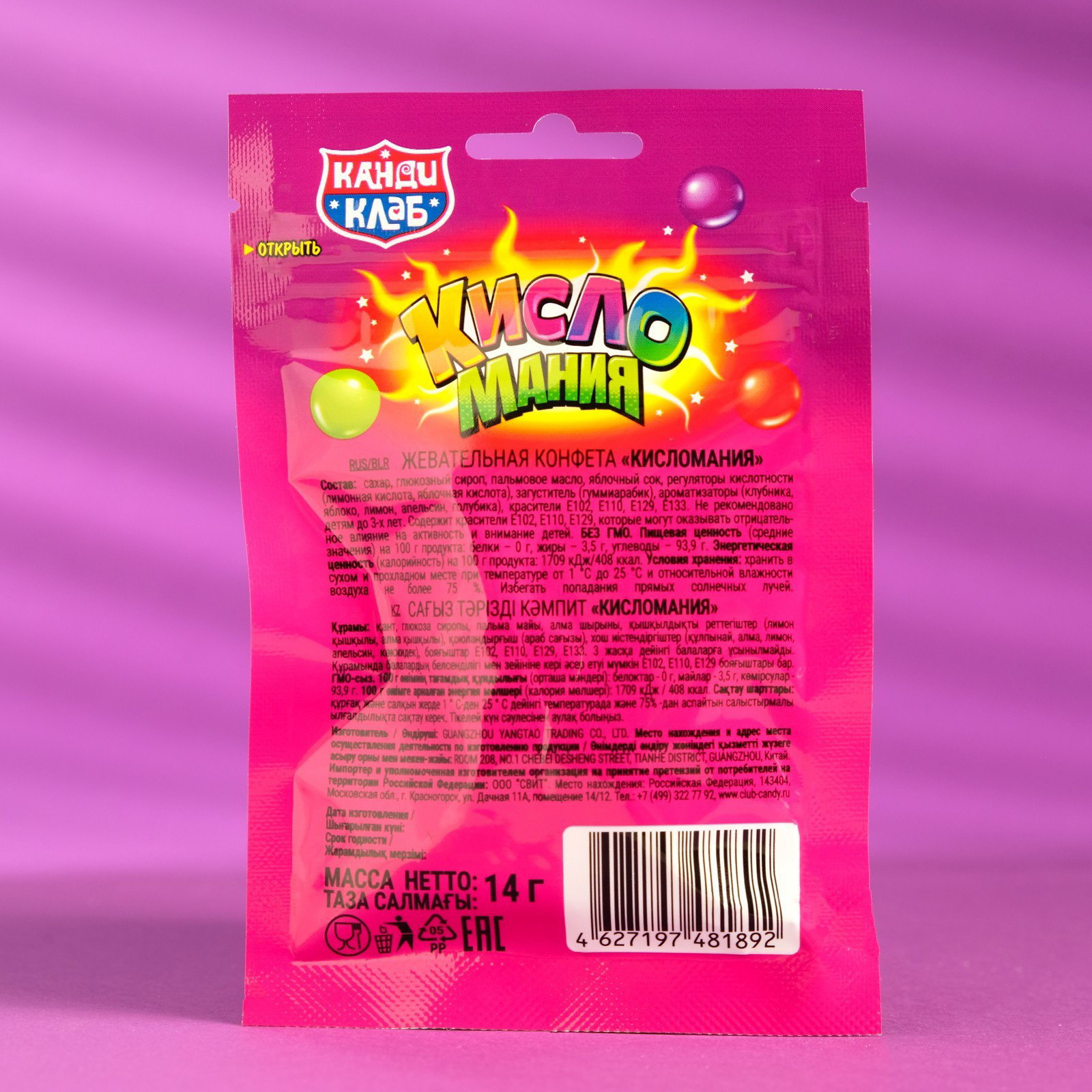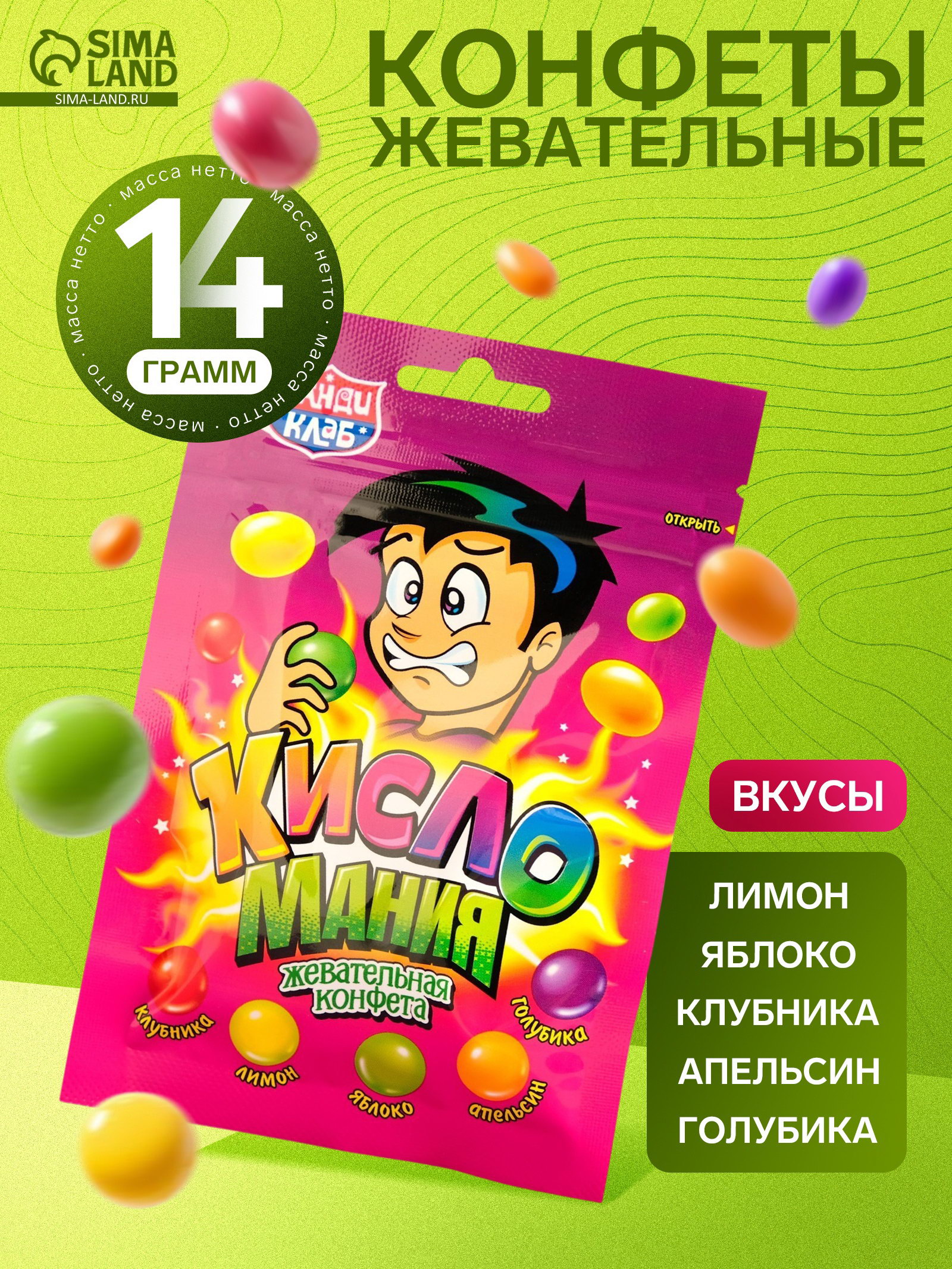 Конфеты жевательные "Кисломания", 14 г, Канди клаб, Китай