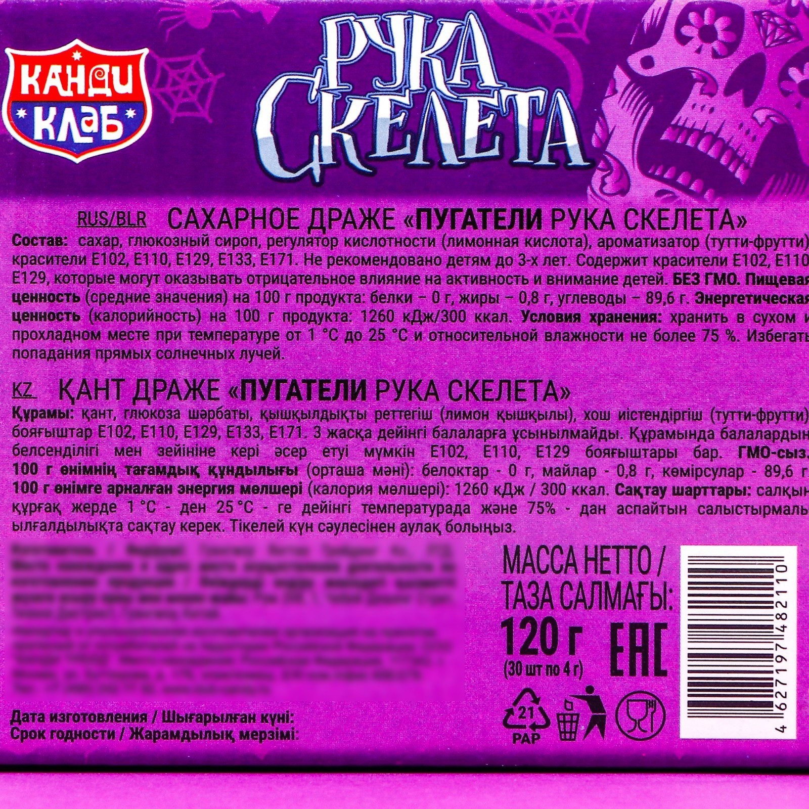 Сахарное драже "Пугатели рука скелета", 4 г, Канди клаб, Китай