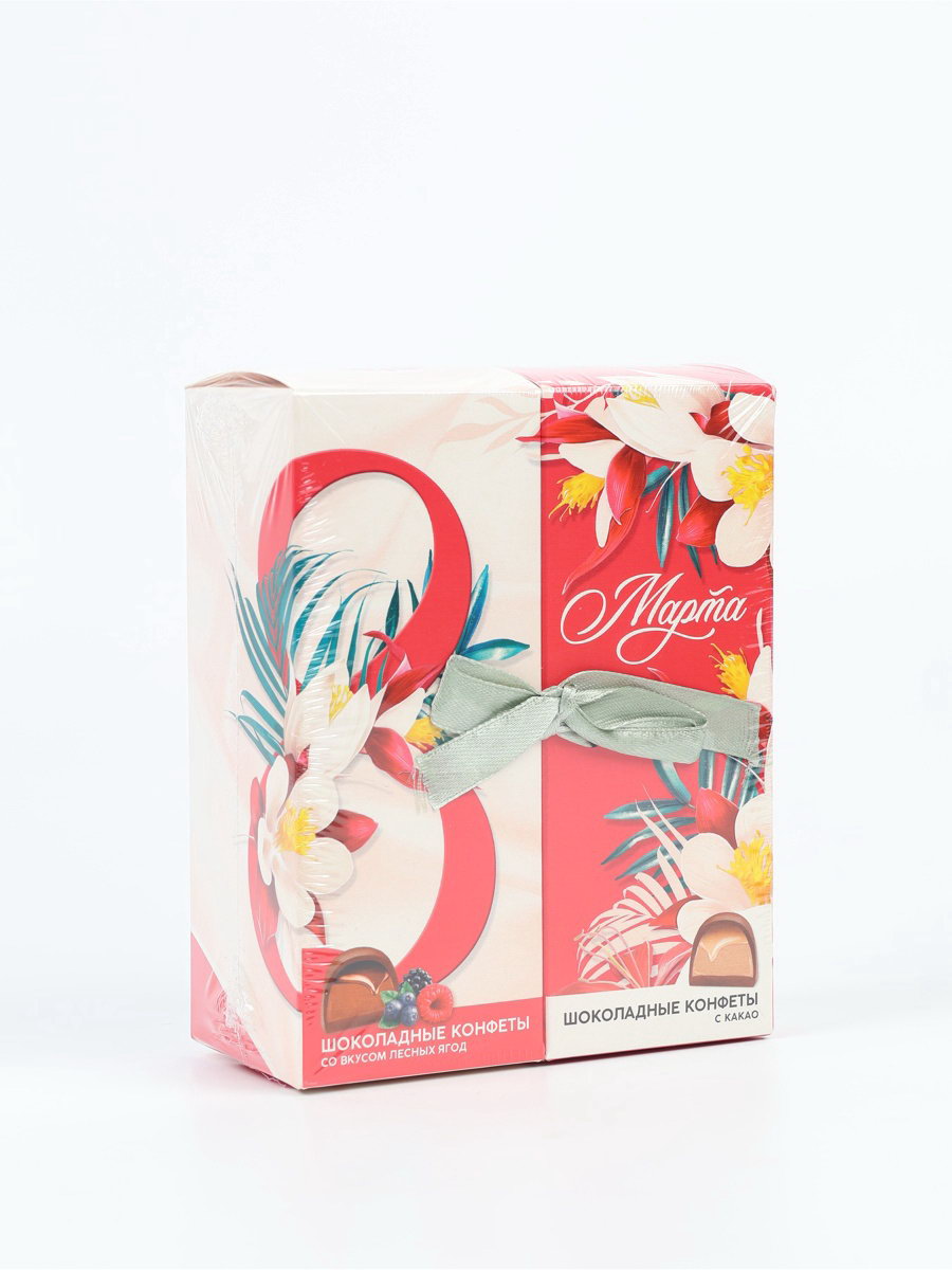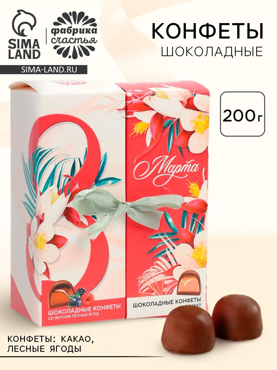 Конфеты шоколадные "8 марта", вкусы: арахисовая паста, какао, 200 гр, Фабрика счастья, РОССИЯ