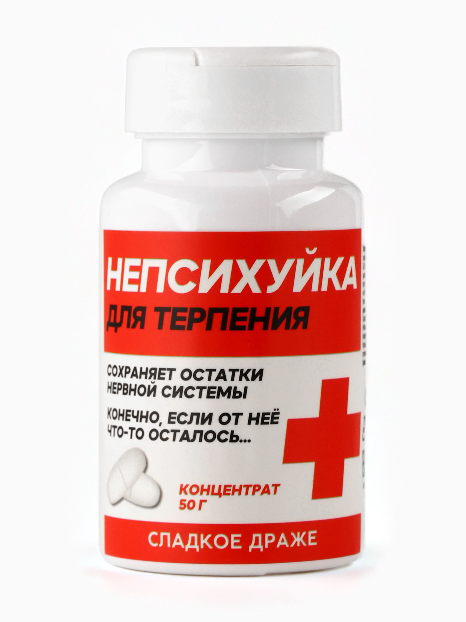 Конфеты драже - таблетки "Непсихуйка" в банке, 50 гр, 5x9.5x5 см., Фабрика счастья, Китай