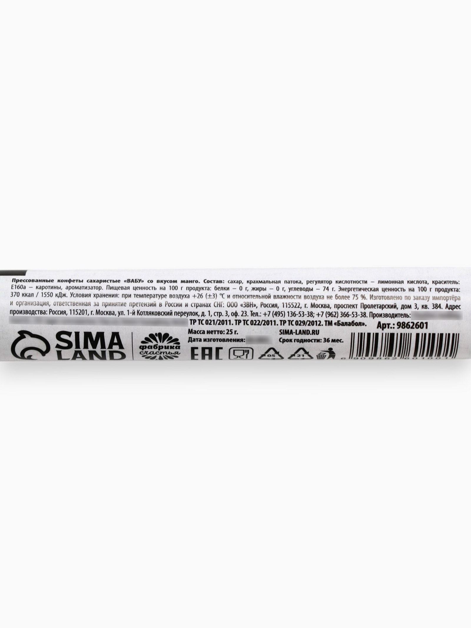 Запрет реализации по сегментам: 00000000266, 00000000593 Размер упаковки: 1.5 x 1.5 x 10.5 см. Темпер. ограничение НЕ ВЫШЕ ℃: +18 Срок годности, мес: 24 Вид упаковки: Туба Начинка: Без начинки Вкус: Манго Тематика праздника: Универсальная тематика Тематика праздника: Универсальная тематика tnved: 1704908200 Вес нетто, г: 25 Вид: Драже При оформление заказа, просим запрашивать актуальные сроки годности у менеджераСостав: сахар, крахмальная патока, регулятор кислотности - лимонная кислота, краситель: Е160а - каротины, ароматизатор. Срок годности: 36 месяцев Масса нетто: 25 гр | ||